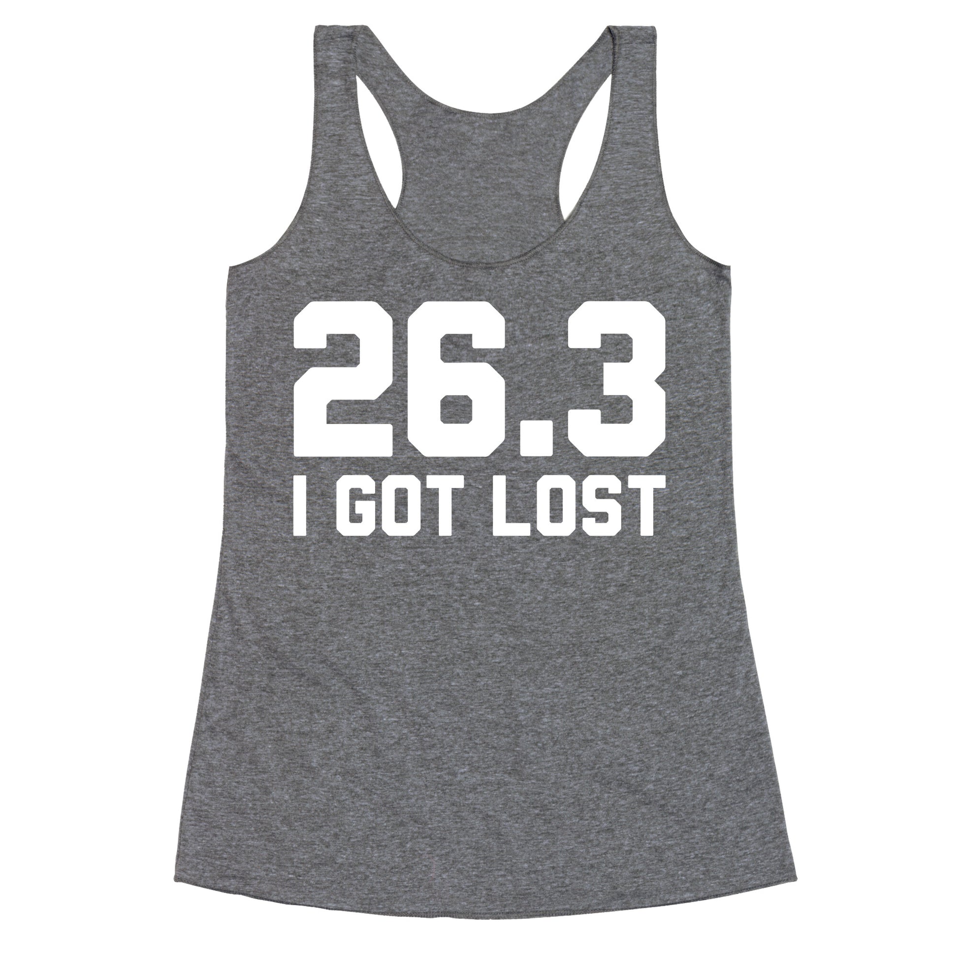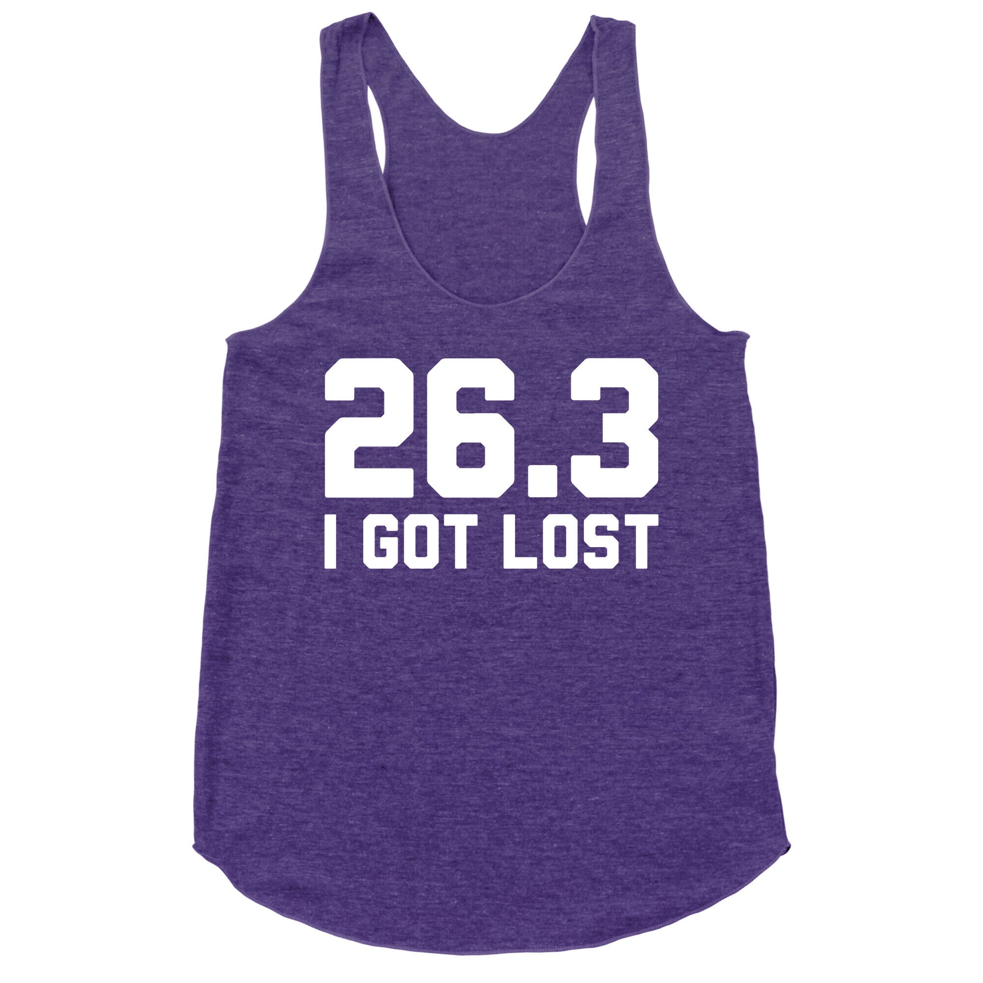 I ran 26.3 miles! I know a marathon is usually only 26.2 miles, but I got lost. If you love running, doing marathons, half marathons, jogging, track and field, cardio, fitness, and getting lost, then this shirt is for you! Ideal for the gym, workouts, and partying with friends after a marathon! Perfect for the athlete in your life!Our super comfortable Women’s Raw Edge Racerback features a soft tri-blend, unhemmed fabric, with a fashionable bell-like shape for the bottom. Preshrunk for your convenience! Printed in the USA. Made with 50% Polyester 25% Ring Spun Cotton, and 25% Rayon.