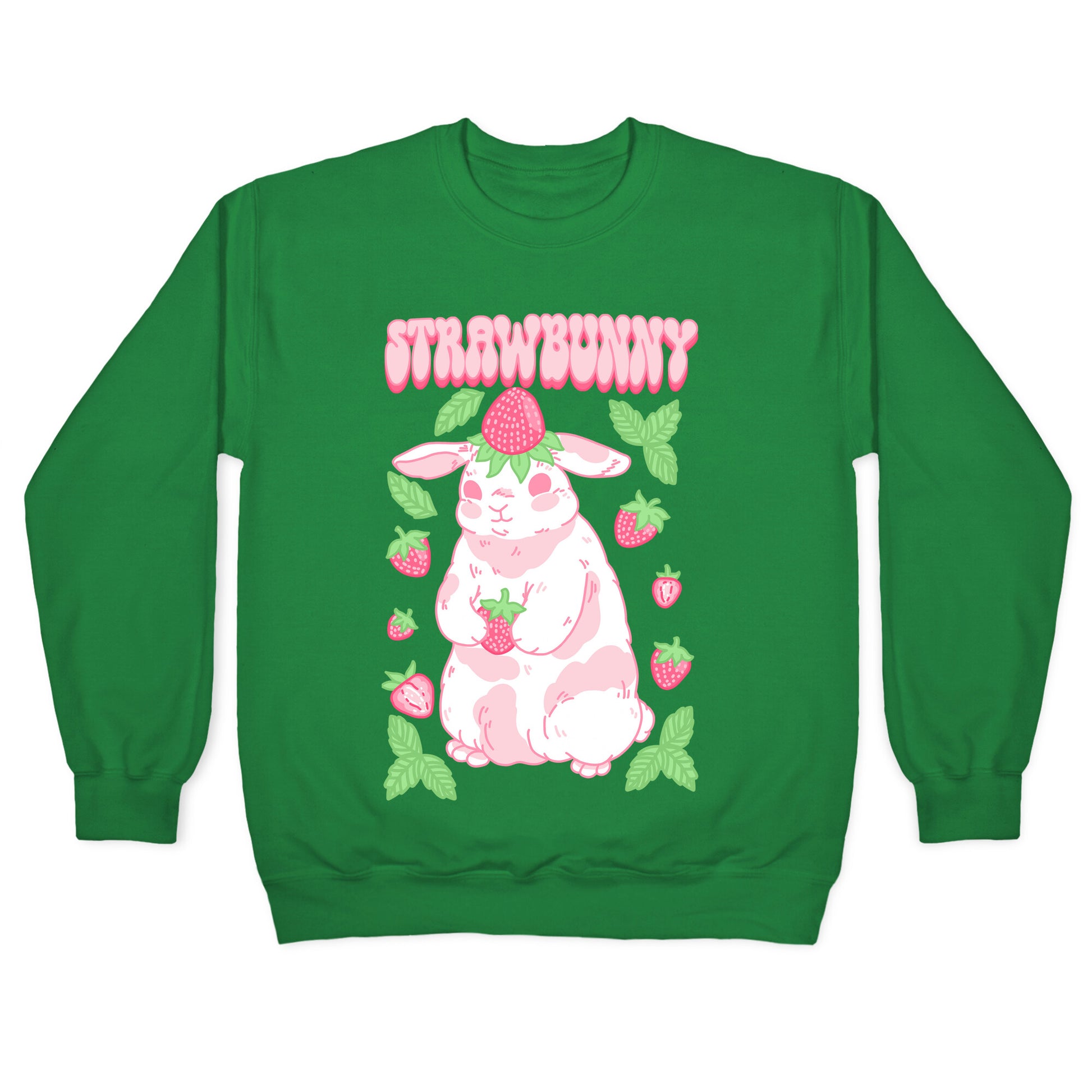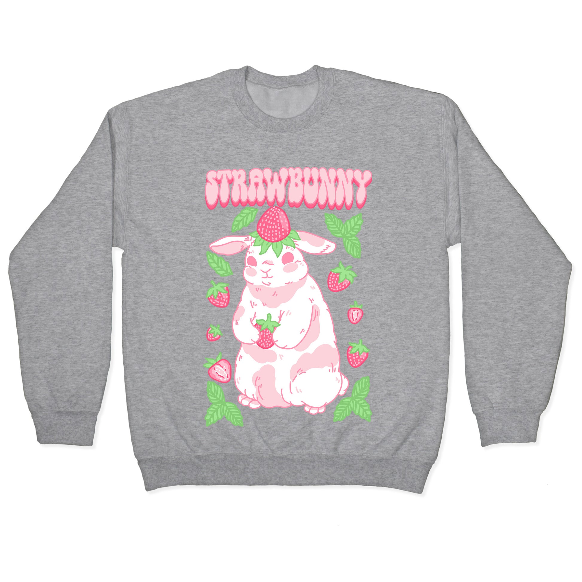 Strawberry bunny - strawbunny! This cute and cottage core bun is sweet as a strawberry! Our Unisex Crewneck Sweatshirt is made from a soft 8-ounce fabric, and they feature a crew neck, with sleeve and bottom hems for durability. Great for layering. Preshrunk for your convenience! Printed in the USA. Made with 50% Cotton and 50% Polyester.