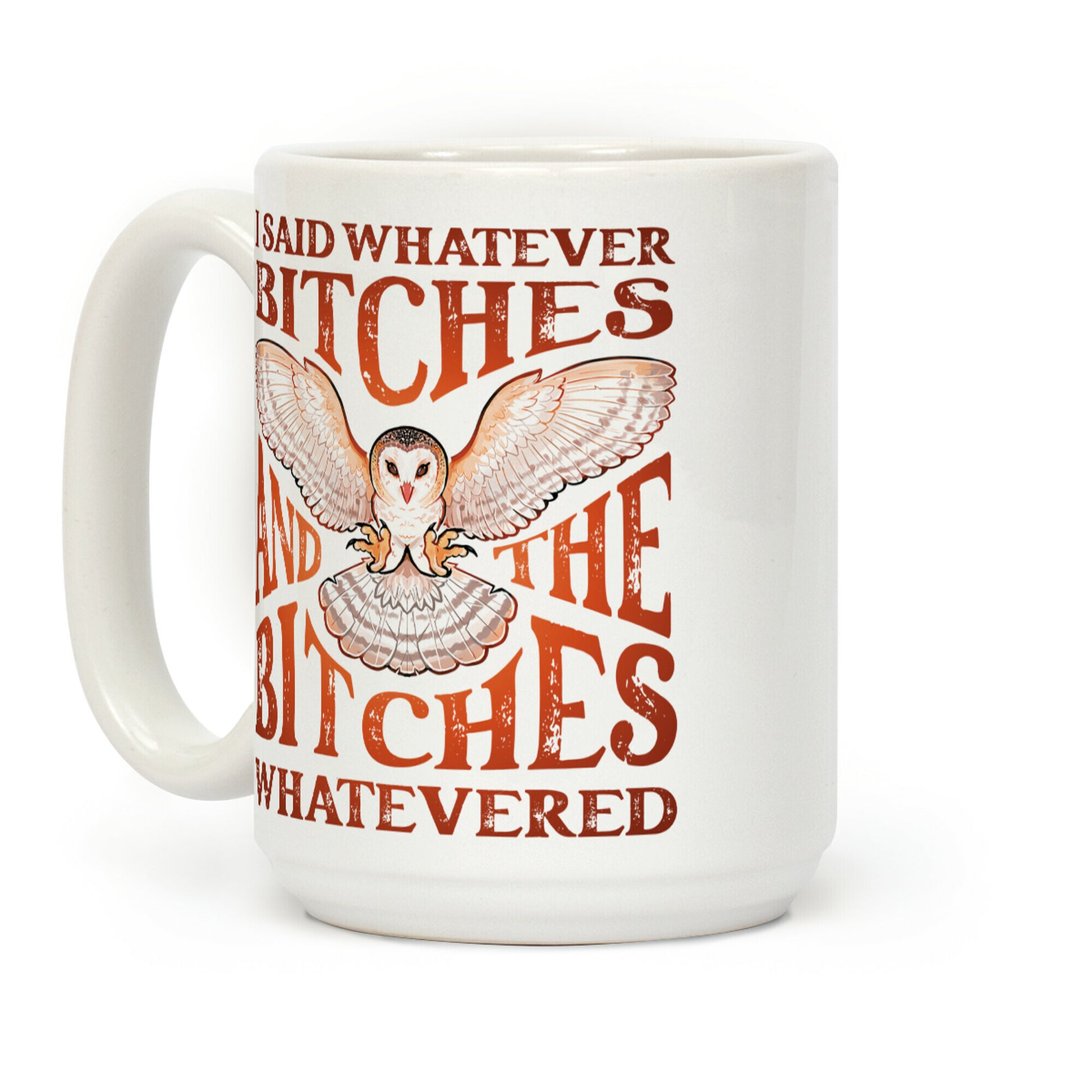 Bitches be bitchin', I said whatever, and whatevers were had all around. Honestly couldn't give a hoot. Our Mug features large handles for easy gripping and a wrap-around print. These heavy-duty Mugs are both dishwasher and microwave safe. Printed in the USA.