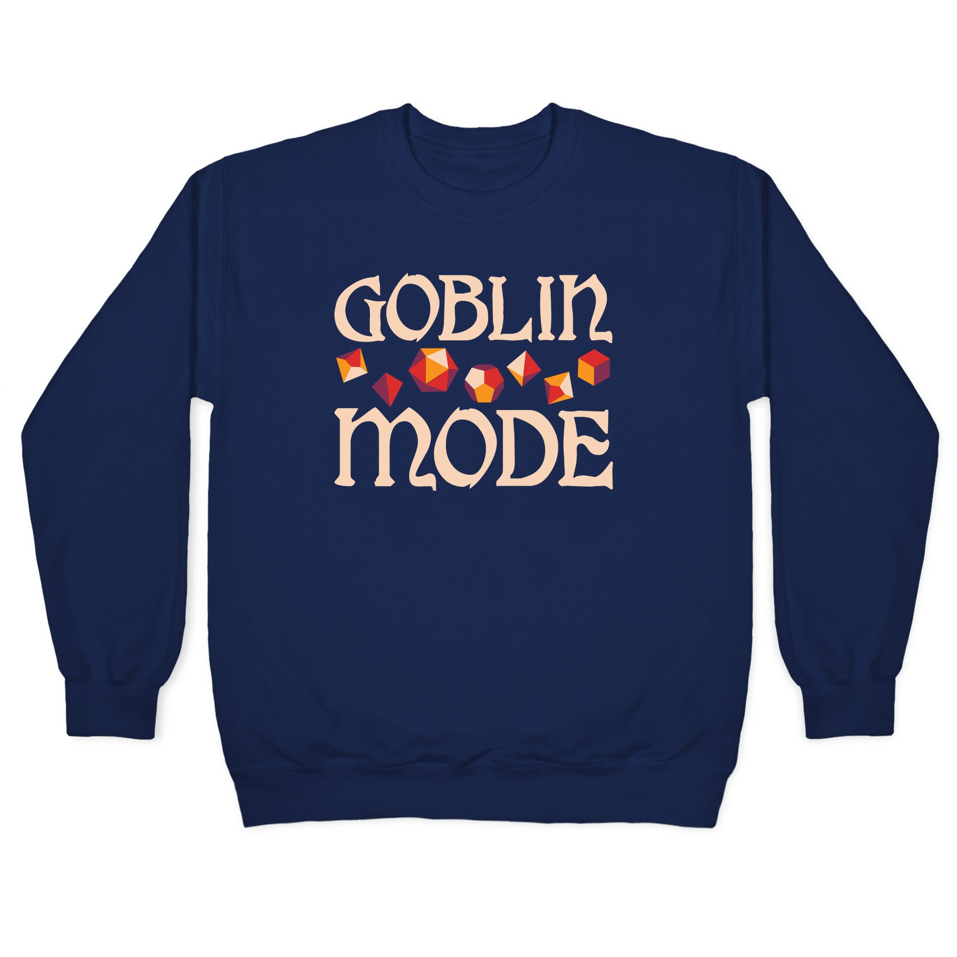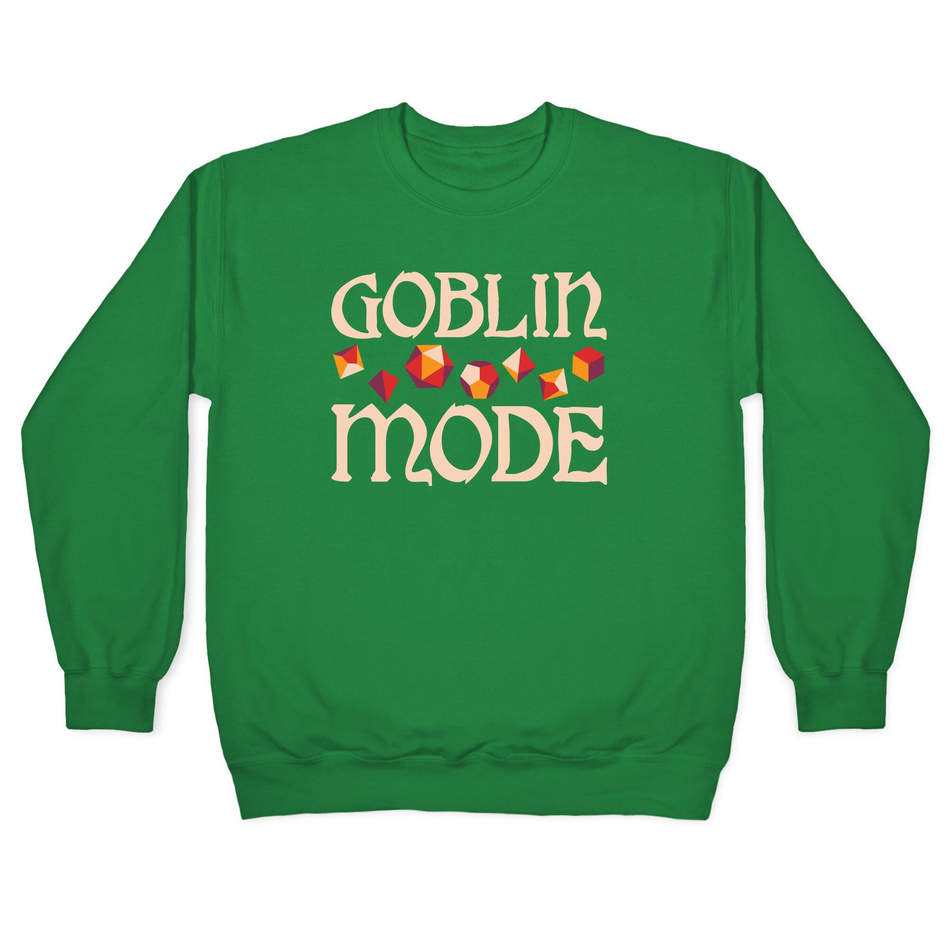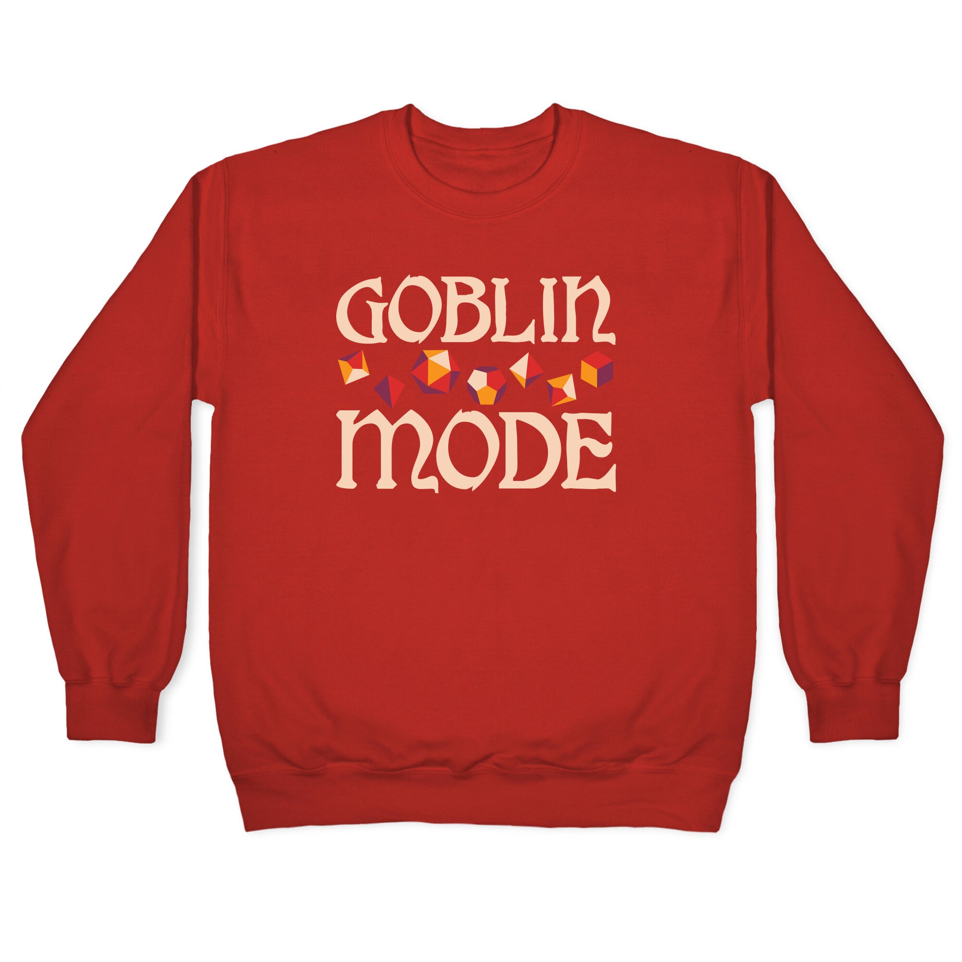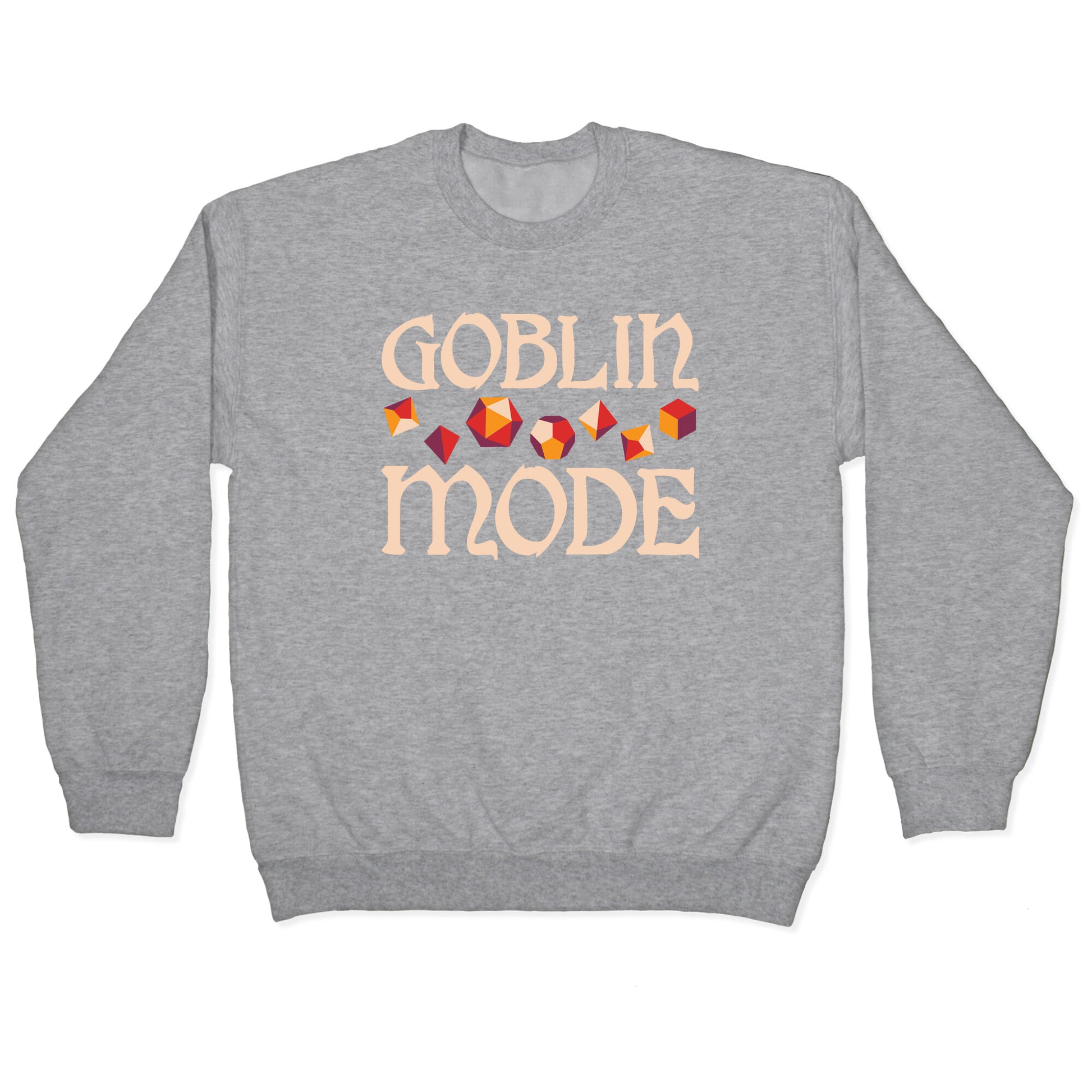 Goblin mode all day! Show your love of going full goblin mode, especially in a good session of Dungeons & Dragons, with this "Goblin Mode" dice set design. Perfect for being a trendy, tabletop gamer!Our Unisex Crewneck Sweatshirt is made from a soft 8-ounce fabric, and they feature a crew neck, with sleeve and bottom hems for durability. Great for layering. Preshrunk for your convenience! Printed in the USA. Made with 50% Cotton and 50% Polyester.