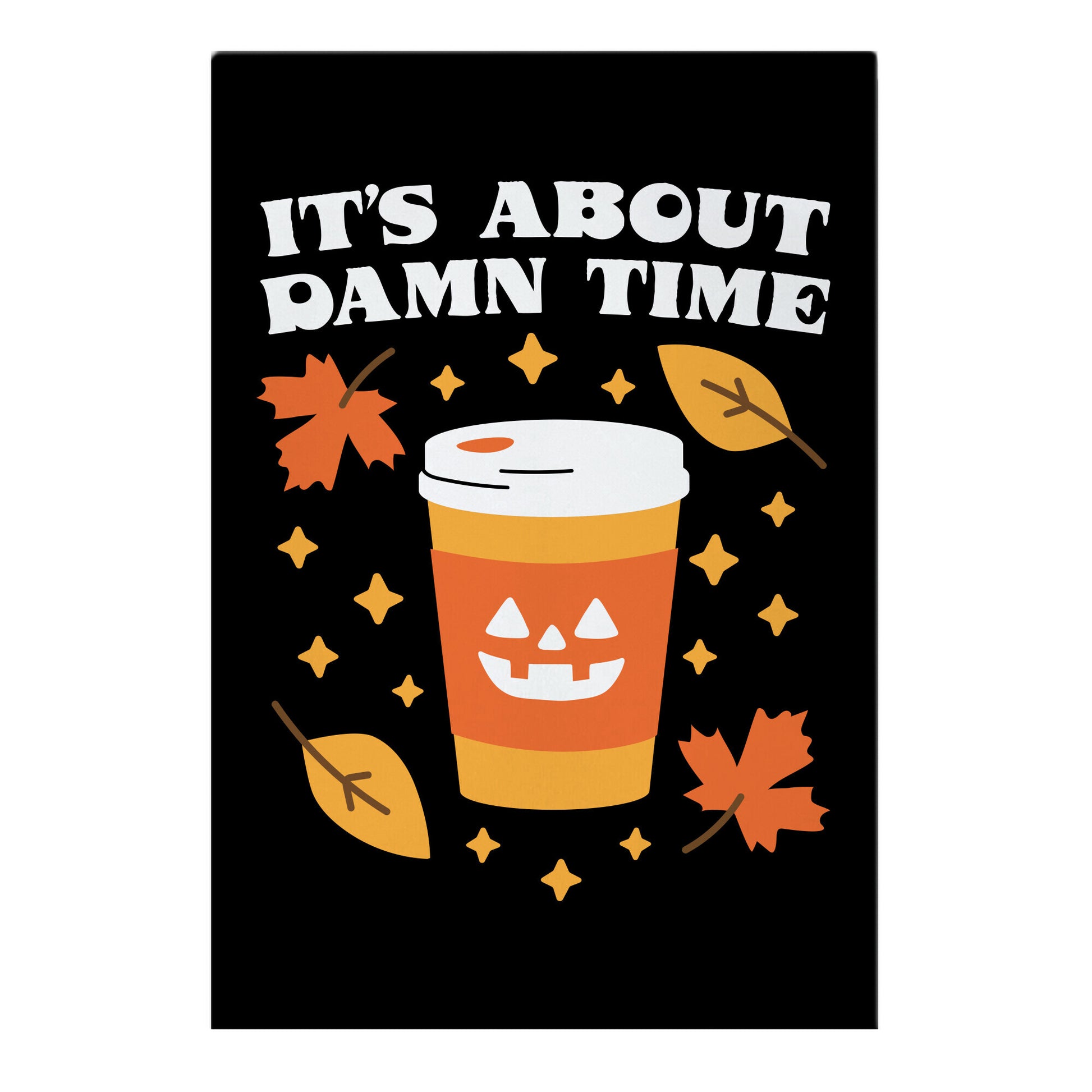 It's about damn time, for pumpkin spice! Show off your love of fall and lattes with this fun, "It's About Damn Time" seasonal, pumpkin spice design! Add a touch of personality to your outdoor spaces with our unique, weather-resistant garden flags! Stay up with seasonal trends (or the latest meme!) and share your passions by switching out your flag for every occasion and mood. Our yard flags are great for the front of your home, a garden space, backyard, or flower planter. Flag stand not included. Printed in the USA