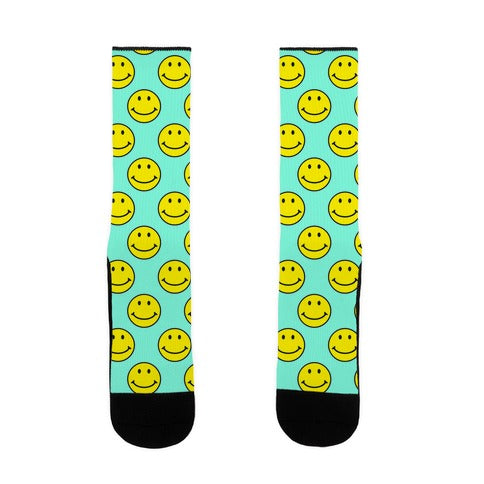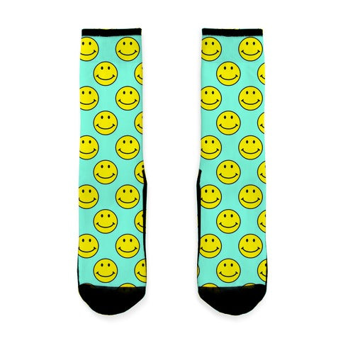 Teal Smiley Face Pattern Socks
