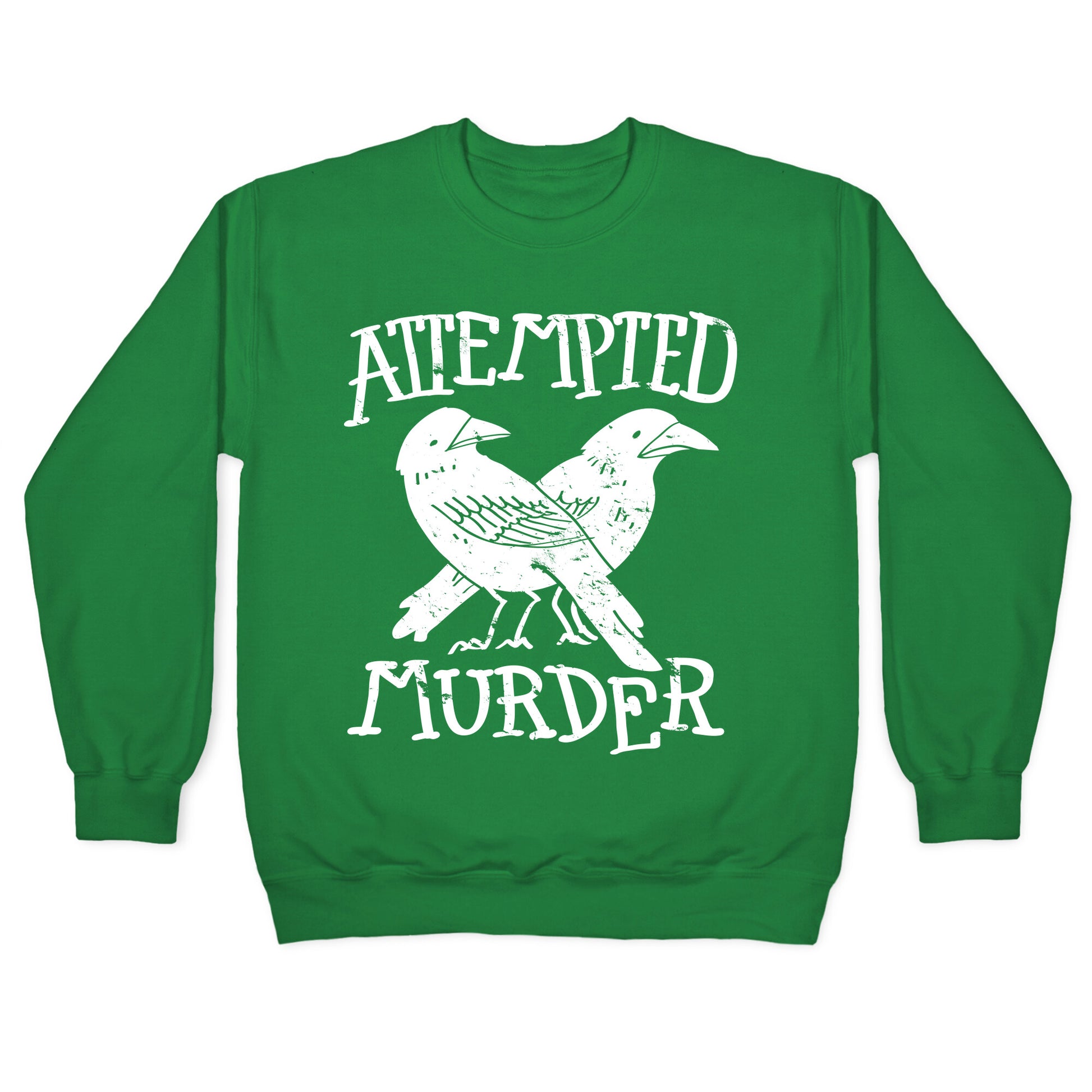 You are found guilty for attempted murder! That is, attempting to gather crows. Let others feast on your inner, criminally terrible, clinically insane, pun fueled mastermind with this humorous visual joke to get a couple judgmental stares.Our Unisex Crewneck Sweatshirt is made from a soft 8-ounce fabric, and they feature a crew neck, with sleeve and bottom hems for durability. Great for layering. Preshrunk for your convenience! Printed in the USA. Made with 50% Cotton and 50% Polyester.