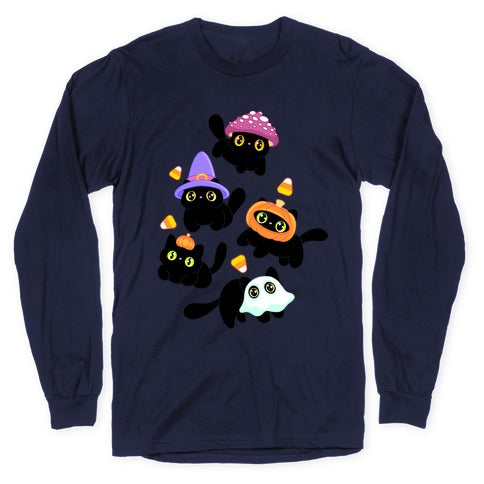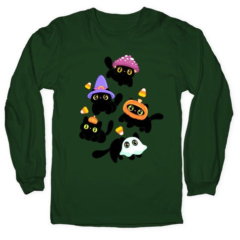 Spooky Black Cats Pattern Longsleeve Tee