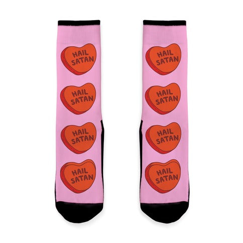 Hail Satan Conversation Heart Valentine's Parody Socks