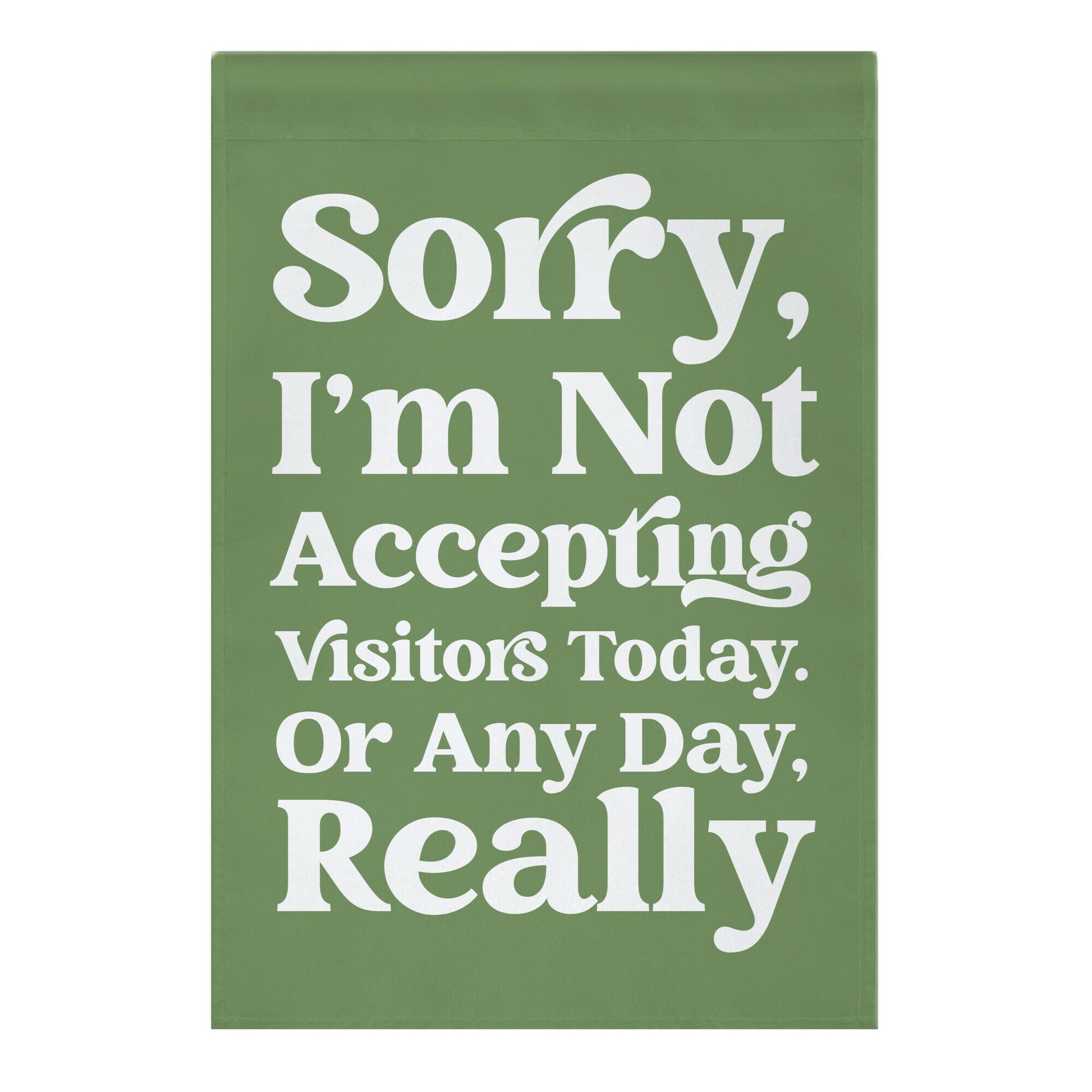 Are you the kind of person who loves to spend their time in the garden but doesn't want to be bothered by nosy neighbors or unwanted visitors? Our "Sorry, I'm Not Accepting Visitors Today. Or Any Day Really" garden flag is the perfect addition to your outdoor oasis. Made for those who value their privacy and solitude, this flag sends a clear message to anyone who may be contemplating a visit. It's a humorous way to keep intruders at bay while showcasing your playful personality. Crafted with the finest materials, this garden flag is built to withstand the outdoor elements while keeping its vibrant colors intact. Measuring x inches, it's compact enough to fit on any standard size garden flagpole, and its eye-catching print will make it easy to spot from afar. Whether you're into gardening, sunbathing, or just relaxing in your own company, this flag is a must-have for anyone who refuses to entertain unwelcome visitors. So go ahead and indulge in the serenity of your garden without worrying about interruptions - this flag has got you covered!