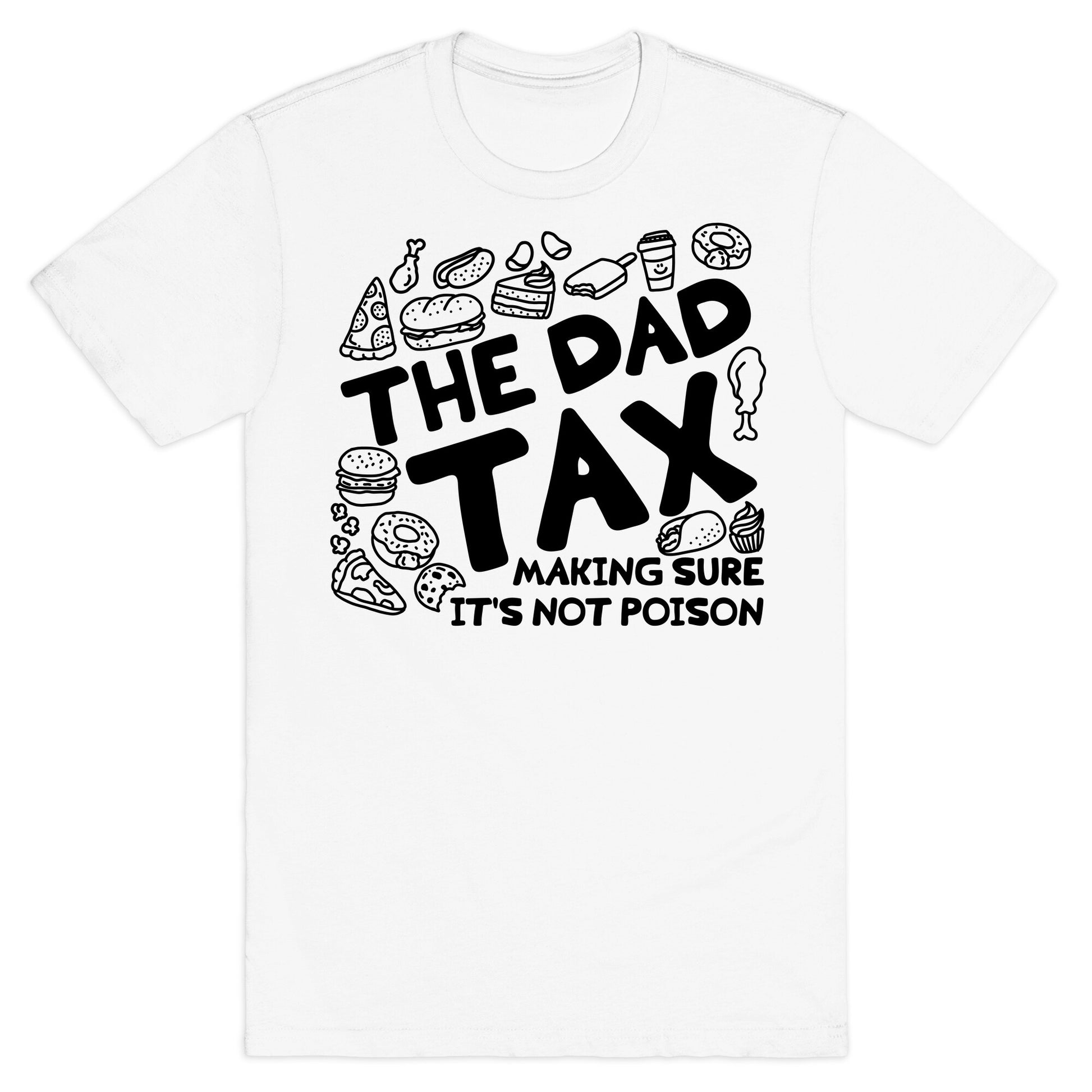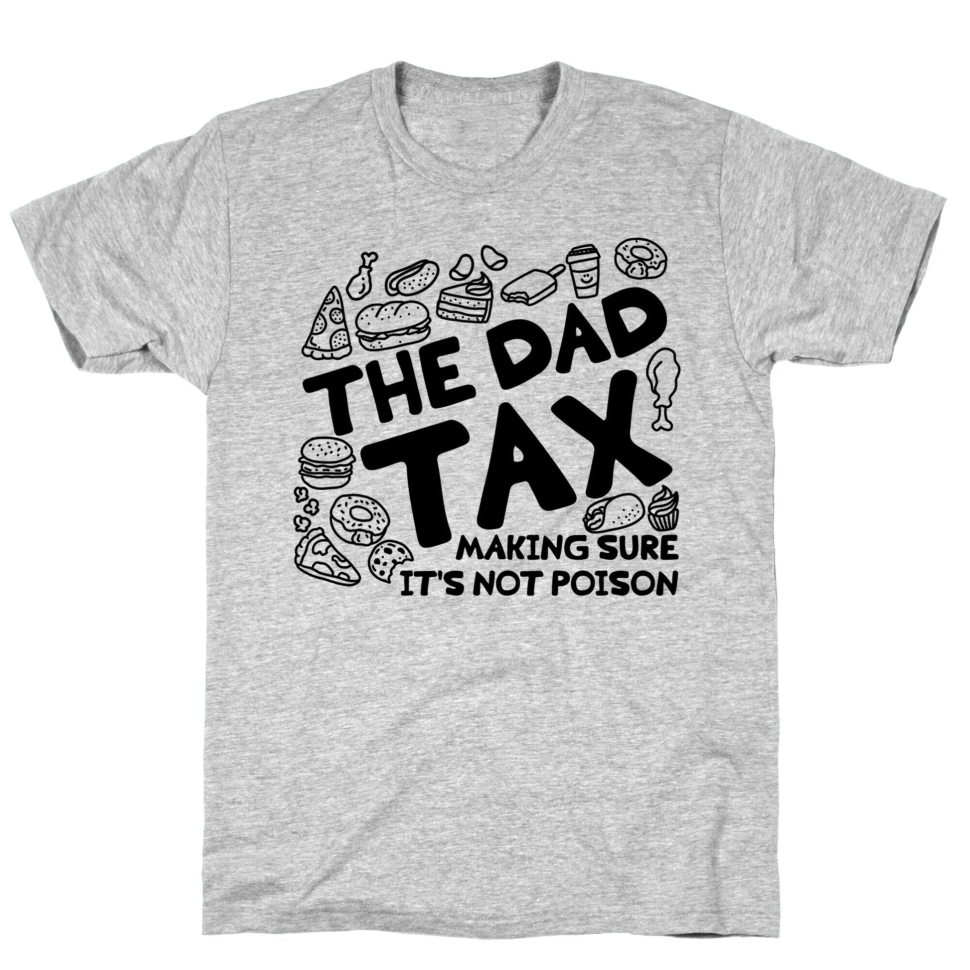 Introducing The Dad Tax—ensuring snacks are safe for consumption since forever. This design features playful doodles of tasty treats, reminding everyone who the real quality control expert is in the house! Perfect for the silly dads in your life or as a fun Fathers Day gift. Our fitted Unisex Cotton tee is made from an exceedingly soft 100% ring spun cotton. It features a crew neckline with hemmed sleeves and bottom for durability. Preshrunk for your convenience! Printed in the USA. Made with 100% Ring Spun Cotton. Athletic Gray is made up of 90% cotton and 10% polyester. Other heathered colors are made of 52% cotton and 48% polyester.