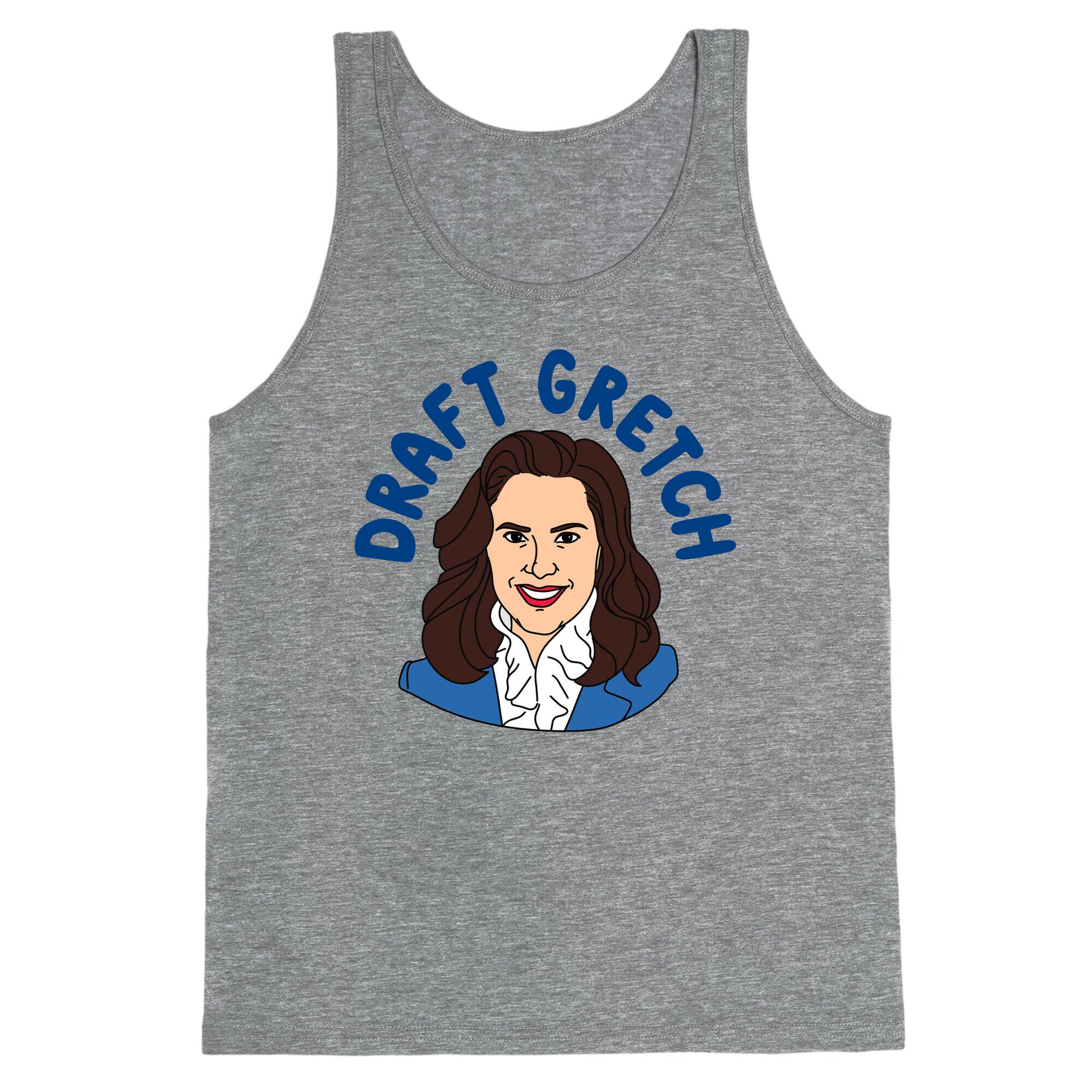 This design features the phrase "Draft Gretch" alongside Gretchen Whitmers face, capturing the growing sentiment for a fresh Democratic presidential nominee. Perfect for political enthusiasts and supporters of Whitmer, this design makes a bold statement about seeking new leadership. Show your support for change and your hope for a dynamic future with this impactful design. Our relaxed Unisex tanks, are made with exceedingly soft 100% ring spun cotton. They feature a rounded and hemmed neckline with wide comfortable straps. Preshrunk for your convenience! Printed in the USA. Made with 100% Ring Spun Cotton. Colors such as pink, grey, and blue are made with 50% poly 25% ring spun cotton and 25% Rayon.