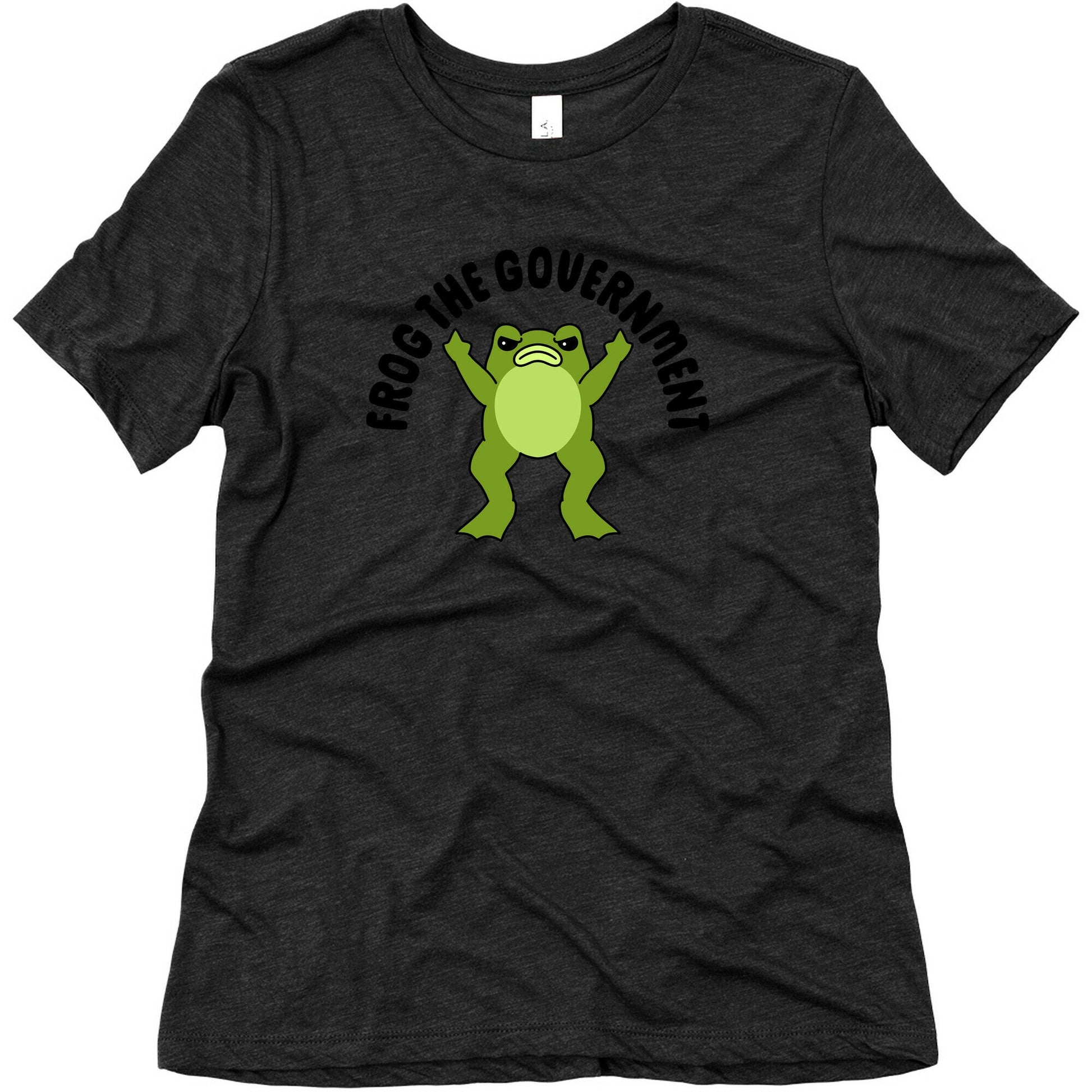 This design features the cheeky phrase "Frog the Government" alongside a humorous illustration of a frog flipping the middle finger. Its a playful yet bold statement perfect for those who want to express their frustration with the government in a lighthearted and humorous way. Ideal for anyone who enjoys a bit of rebellious humor. Our slim fit Women’s Tri-Blend Tees feature a soft tri-blend fabric, relaxed neckline with sleeve and bottom hems for durability. Preshrunk for your convenience! Printed in the USA. Made with 50% Polyester, 25% Ring Spun Cotton, and 25% Rayon.