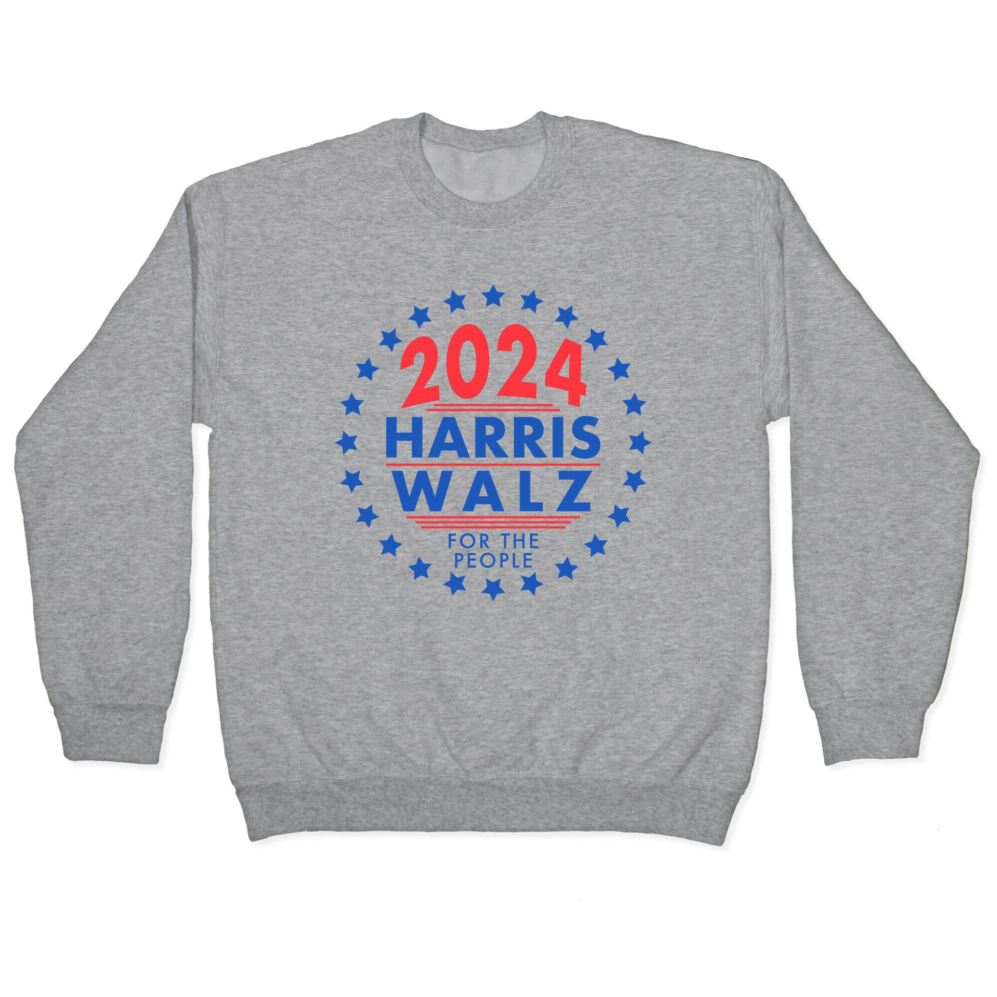 This classic and patriotic illustration features the text "Harris Walz 2024, FOR THE PEOPLE" in bold, timeless typography, complemented by clean, patriotic stripes. The design embodies the spirit of a traditional presidential campaign, showcasing strong support for Democratic candidates Kamala Harris and Tim Walz in the upcoming election. With its professional and iconic elements, this artwork is perfect for those wanting to show their enthusiasm and support for the Democratic ticket in 2024. Our Unisex Crewneck Sweatshirt is made from a soft 8-ounce fabric, and they feature a crew neck, with sleeve and bottom hems for durability. Great for layering. Preshrunk for your convenience! Printed in the USA. Made with 50% Cotton and 50% Polyester.