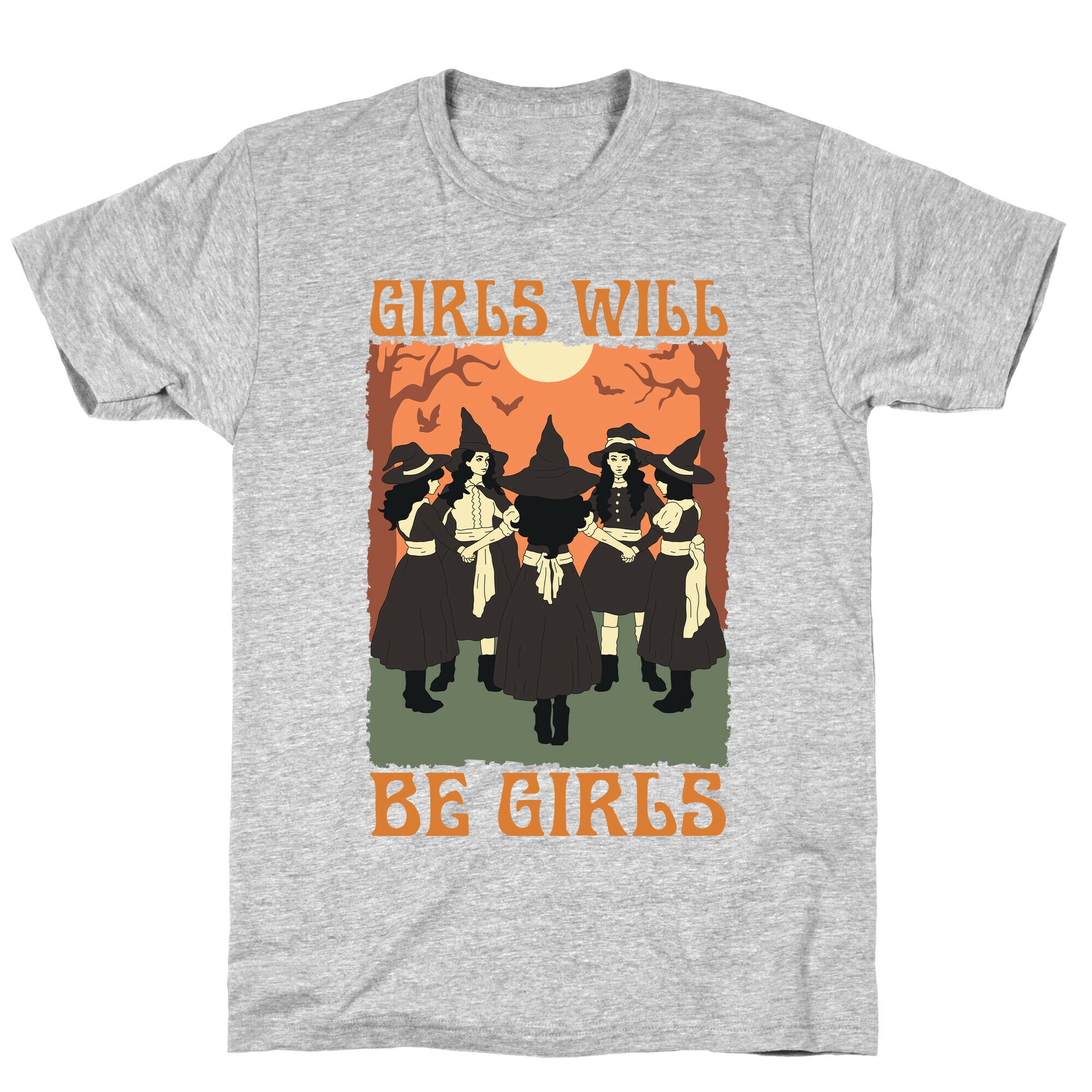 Unleash your inner magic with this playful and empowering shirt, featuring a spirited group of young witches embracing their strength and individuality. The bold "Girls Will Be Girls" slogan celebrates the powerful essence of being unapologetically yourself—fearless, fun, and a little mischievous. Whether youre casting spells or simply making your own rules, this shirt is a tribute to those who know that true magic comes from within. Perfect for anyone who believes in the power of girlhood and the freedom to be authentically wild and wonderful. Our fitted Unisex Cotton tee is made from an exceedingly soft 100% ring spun cotton. It features a crew neckline with hemmed sleeves and bottom for durability. Preshrunk for your convenience! Printed in the USA. Made with 100% Ring Spun Cotton. Athletic Gray is made up of 90% cotton and 10% polyester. Other heathered colors are made of 52% cotton and 48% polyester.