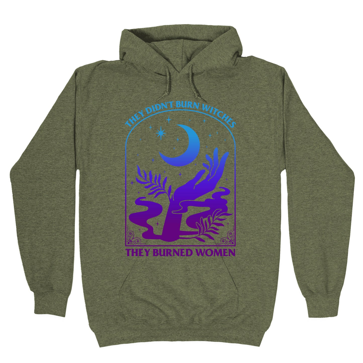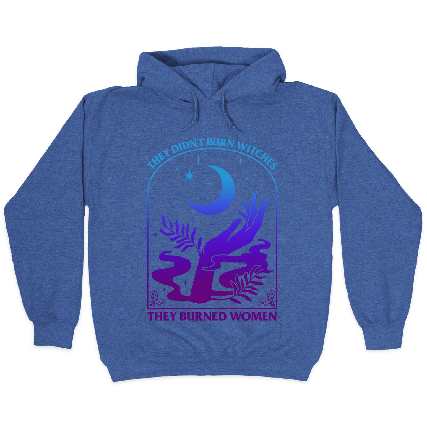 Make a bold statement with this thought-provoking design: "They Didnt Burn Witches, They Burned Women." This shirt challenges historical narratives, sparking conversations about injustice, power, and the strength of women through the ages. Whether youre passionate about history, womens rights, or advocating for truth, this shirt serves as a powerful reminder to rethink the past and inspire change for the future. Wear it to raise awareness and champion the voices that have been silenced. Our Unisex Pullover Hoodie is made from a soft 8-ounce fabric They feature a drawstring hood and front kangaroo pocket. Great for layering! Preshrunk for your convenience! Printed in the USA. Made with 50% Cotton and 50% Polyester.