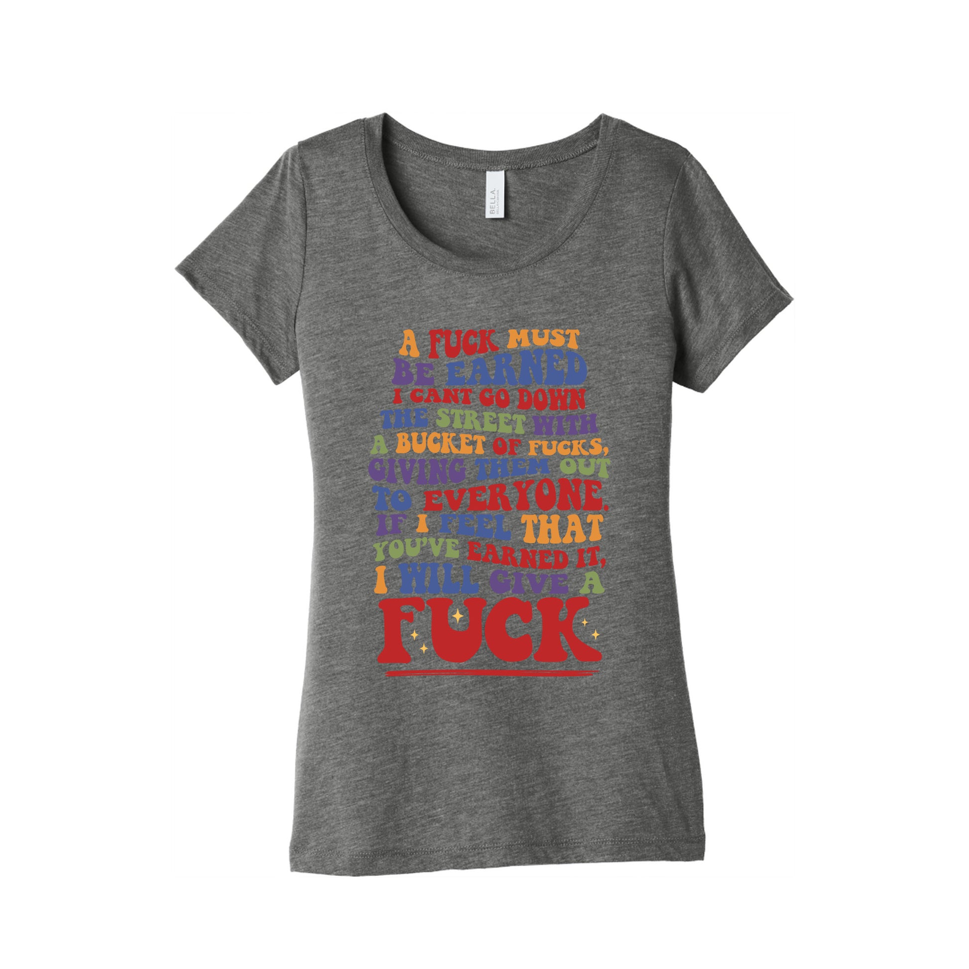 Make a bold statement with "A Fuck Must Be Earned" – a shirt designed for those who know that respect, effort, and attention arent given freely. This unapologetic phrase is a reminder that your energy is valuable, and only those who bring something real to the table deserve it. Wear this shirt as a declaration of confidence and boundaries, showing that youre not here for anything less than what you truly value. Its more than a shirt\; its a mindset – ready to turn heads and make an impact wherever you go. Our slim fit Women’s Tri-Blend Tees feature a soft tri-blend fabric, relaxed neckline with sleeve and bottom hems for durability. Preshrunk for your convenience! Printed in the USA. Made with 50% Polyester, 25% Ring Spun Cotton, and 25% Rayon.