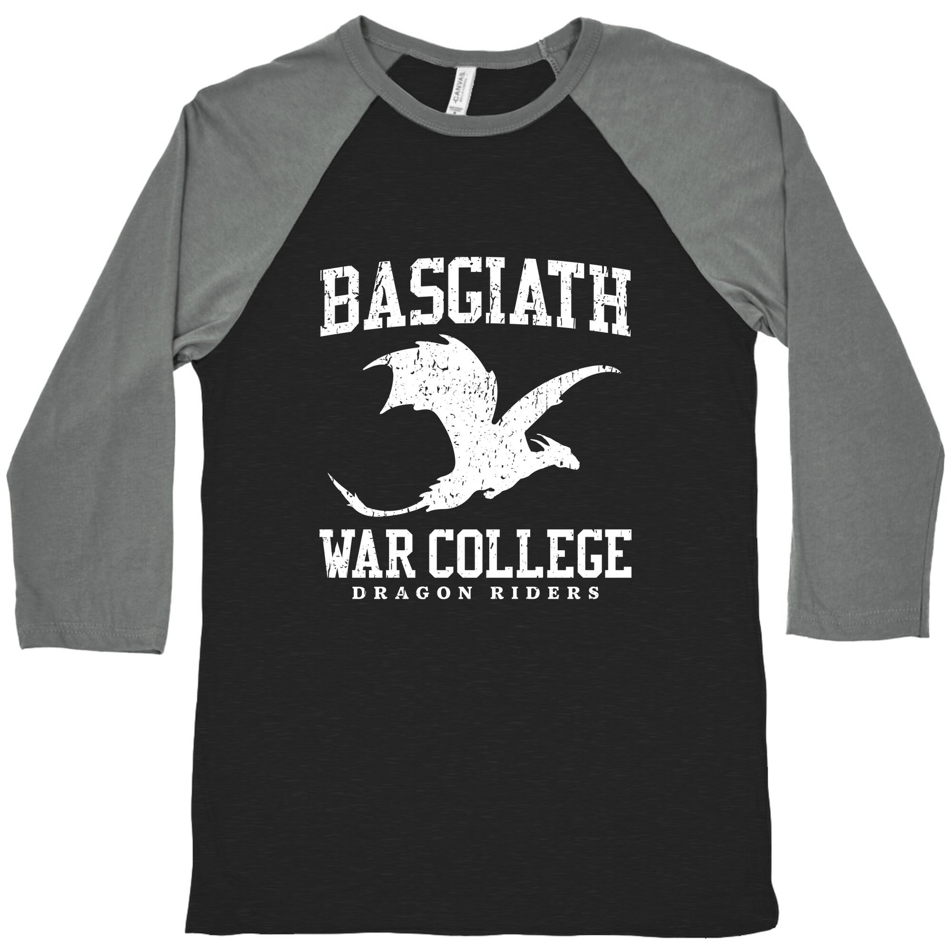 Embrace the fierce spirit of Basgiath War College with this Fourth Wing design, perfect for readers who live for dragons, danger, and destiny. Whether youre dodging daggers or just dodging responsibilities, this shirt lets everyone know where your allegiance lies! Our exceedingly soft and relaxed fit Tri-Blend Baseball Tee features a three-quarter length sleeve, crew neck, fun contrasting color sleeves and neck trim. Preshrunk for your convenience! Printed in the USA. Made with 50% Polyester, 25% Cotton and 25% Rayon