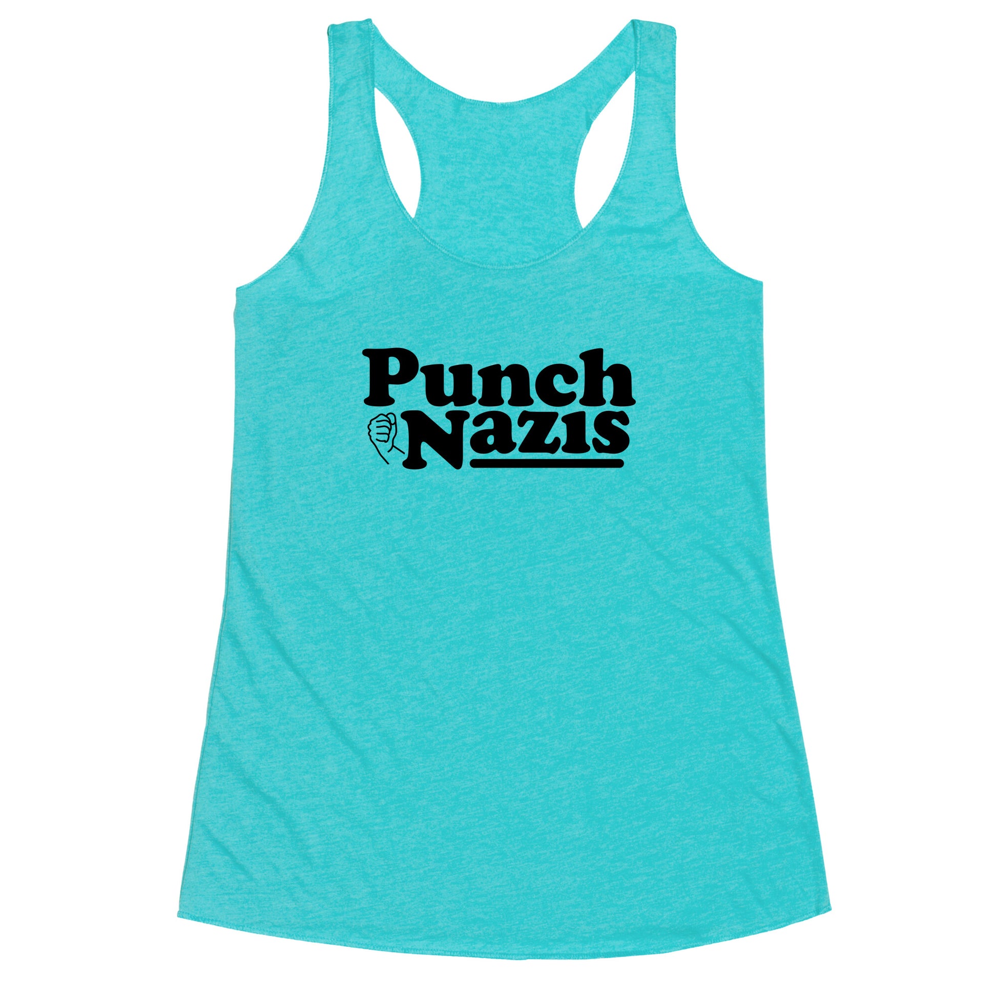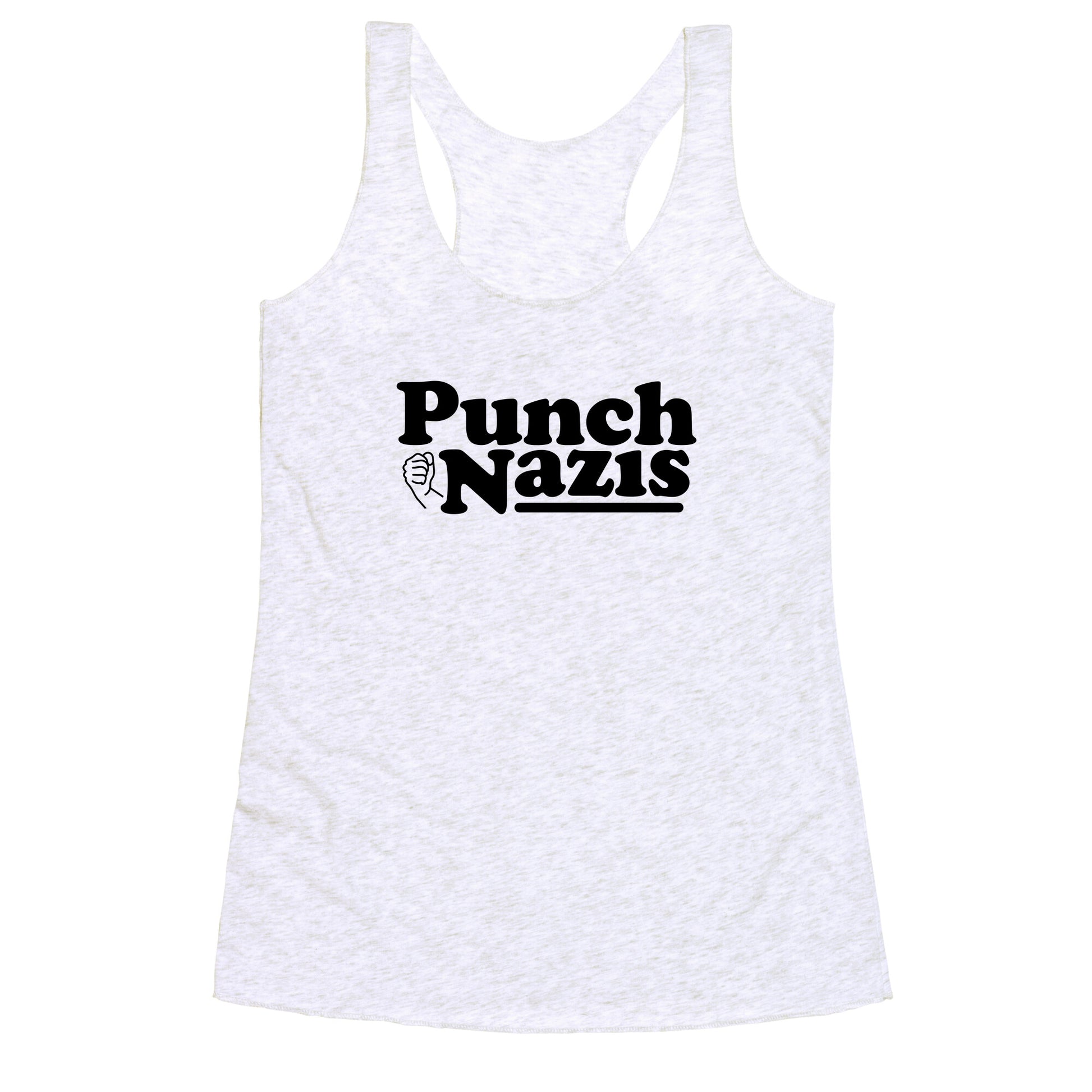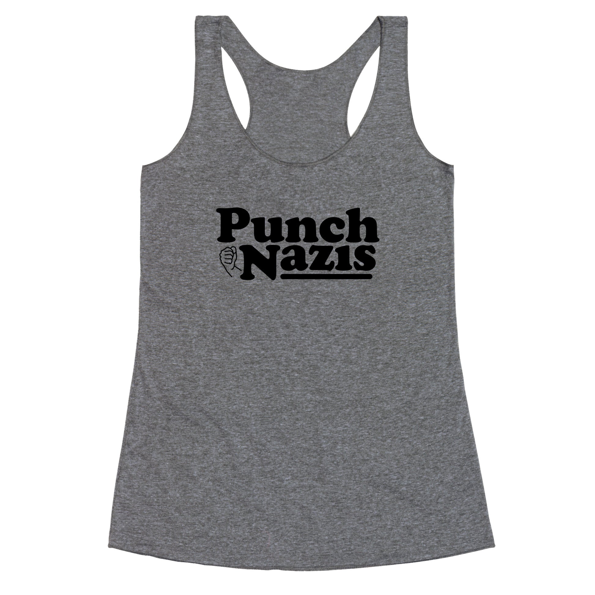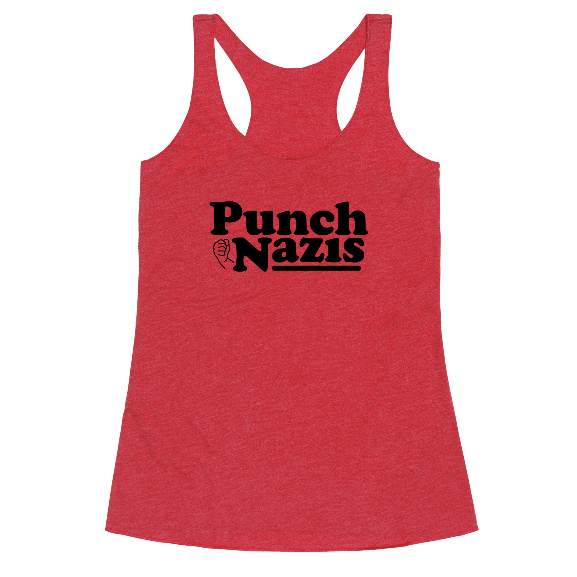 Punch Nazis Black Text Racerback Tank