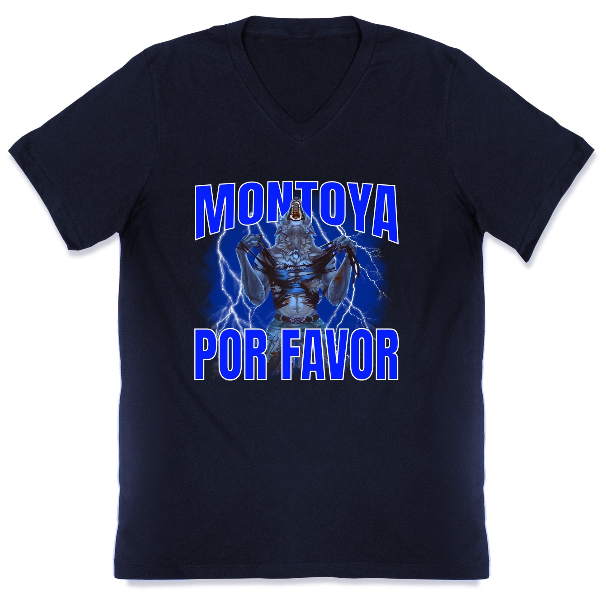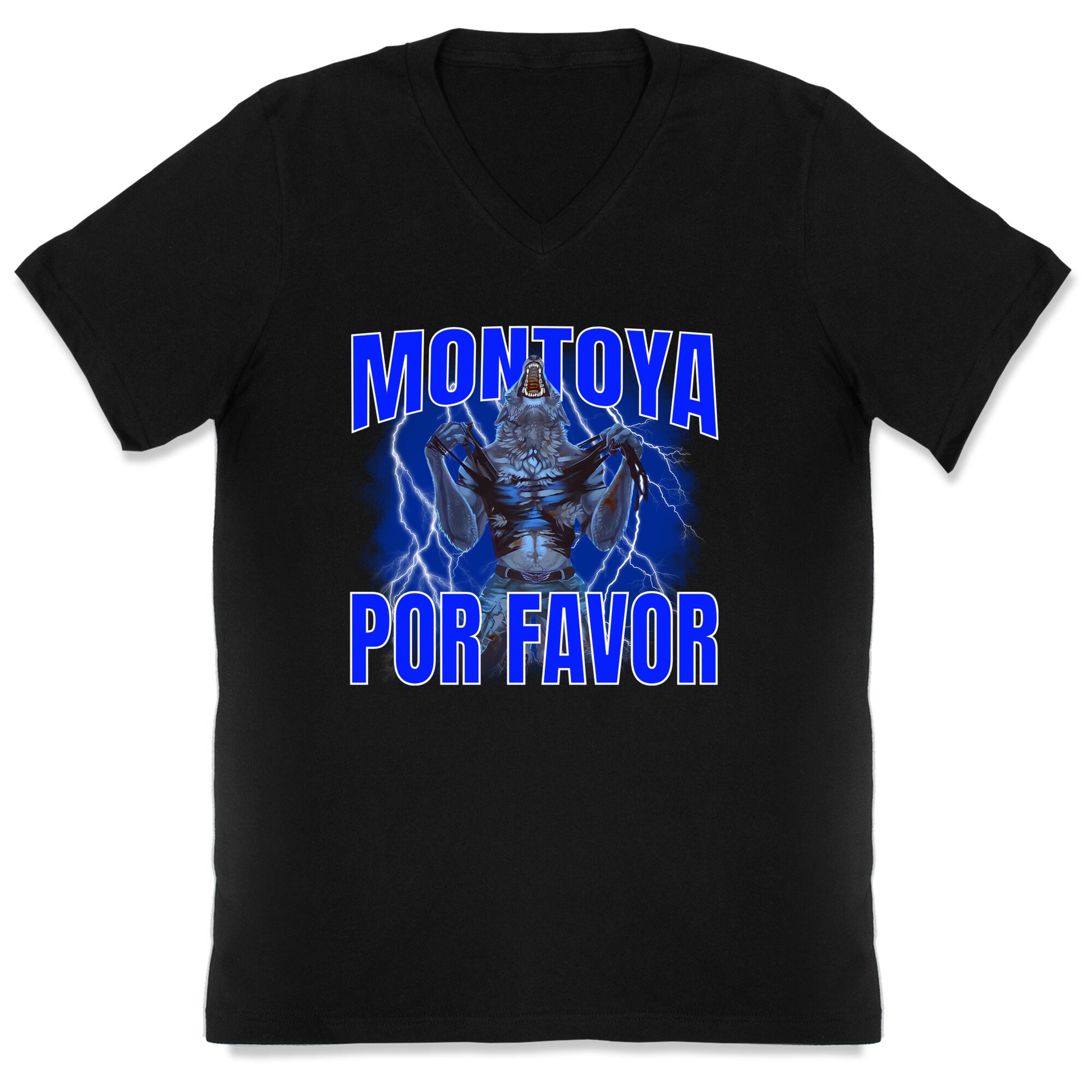 When life gets way too dramatic, channel the chaos with this "Montoya, Por Favor" teeperfect for those moments when youre sprinting headfirst into bad decisions. Inspired by the viral reality TV meltdown, this shirt lets everyone know youre embracing the drama with style. Our fitted Mens V-Neck tees are made with a soft jersey fabric. They feature a v-neckline, with sleeve and bottom hems for durability. Preshrunk for your convenience! Printed in the USA. Solid colors made with 100% Cotton and otherwise 90% Cotton and 10% Polyester.