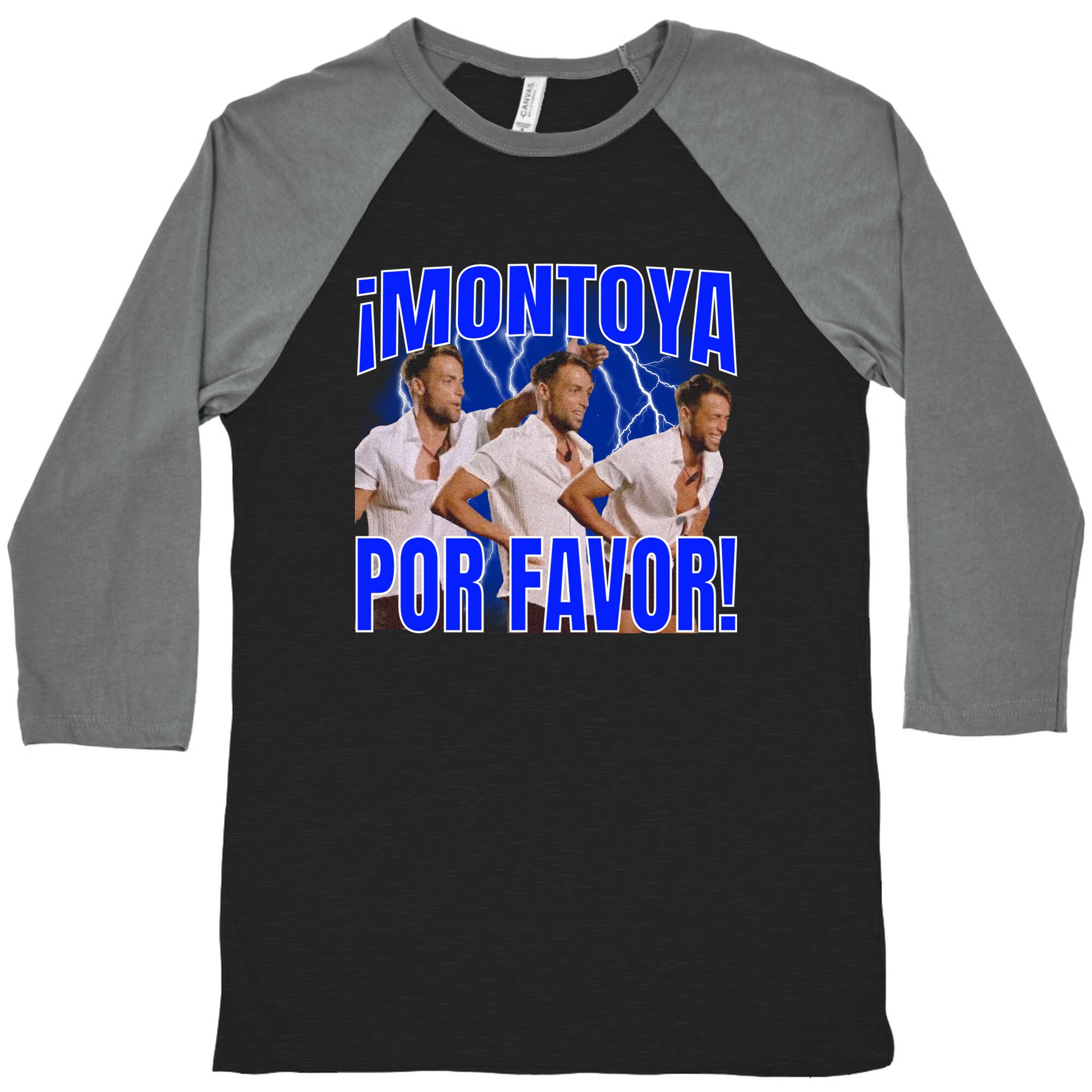 When life gets way too dramatic, channel the chaos with this "Montoya, Por Favor" teeperfect for those moments when youre sprinting headfirst into bad decisions. Inspired by the viral reality TV meltdown, this shirt lets everyone know youre embracing the drama with style. Our exceedingly soft and relaxed fit Tri-Blend Baseball Tee features a three-quarter length sleeve, crew neck, fun contrasting color sleeves and neck trim. Preshrunk for your convenience! Printed in the USA. Made with 50% Polyester, 25% Cotton and 25% Rayon