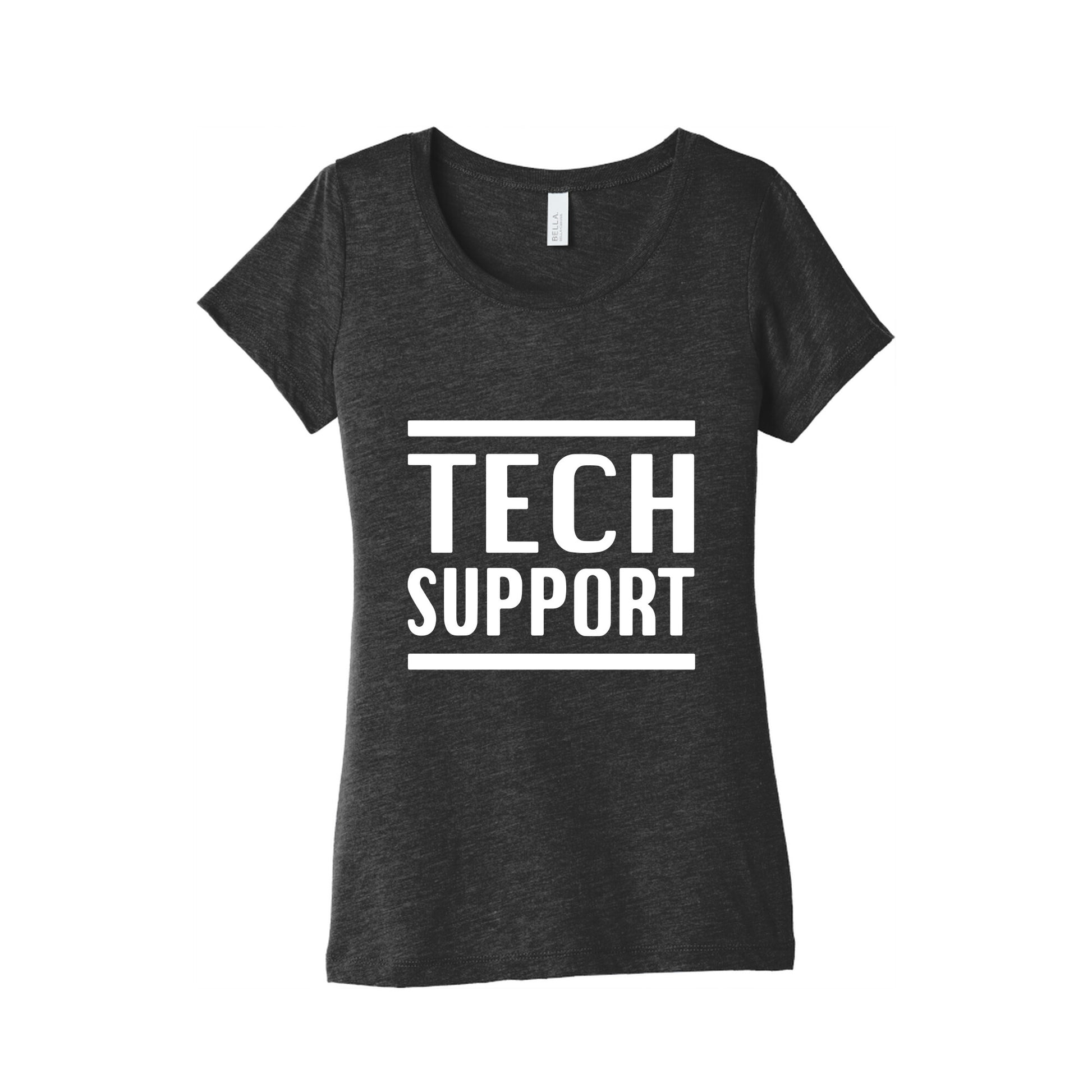 Level up your problem-solving game with this bold "TECH SUPPORT" tee featuring a dynamic tribute to Elon Musk, the ultimate innovator. Whether youre troubleshooting code or launching big ideas, this shirt lets everyone know youre ready to disrupt the status quo. Our slim fit Womens Tri-Blend Tees feature a soft tri-blend fabric, relaxed neckline with sleeve and bottom hems for durability. Preshrunk for your convenience! Printed in the USA. Made with 50% Polyester, 25% Ring Spun Cotton, and 25% Rayon.