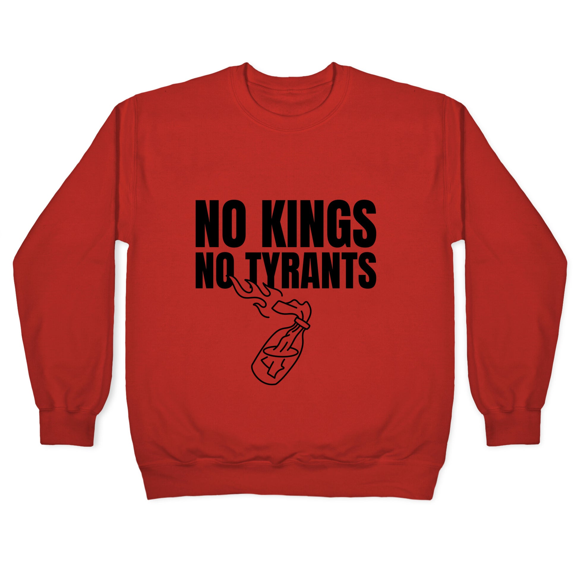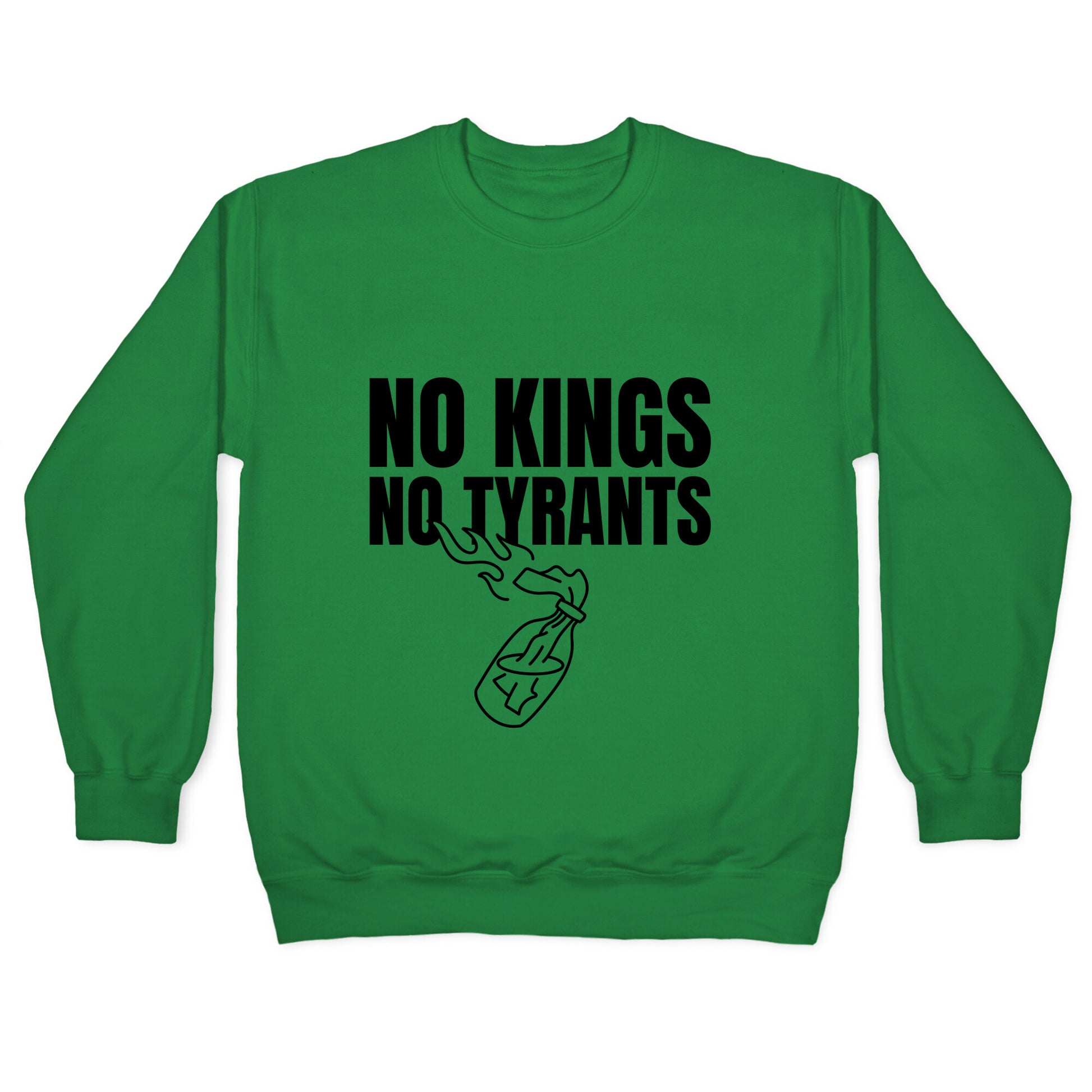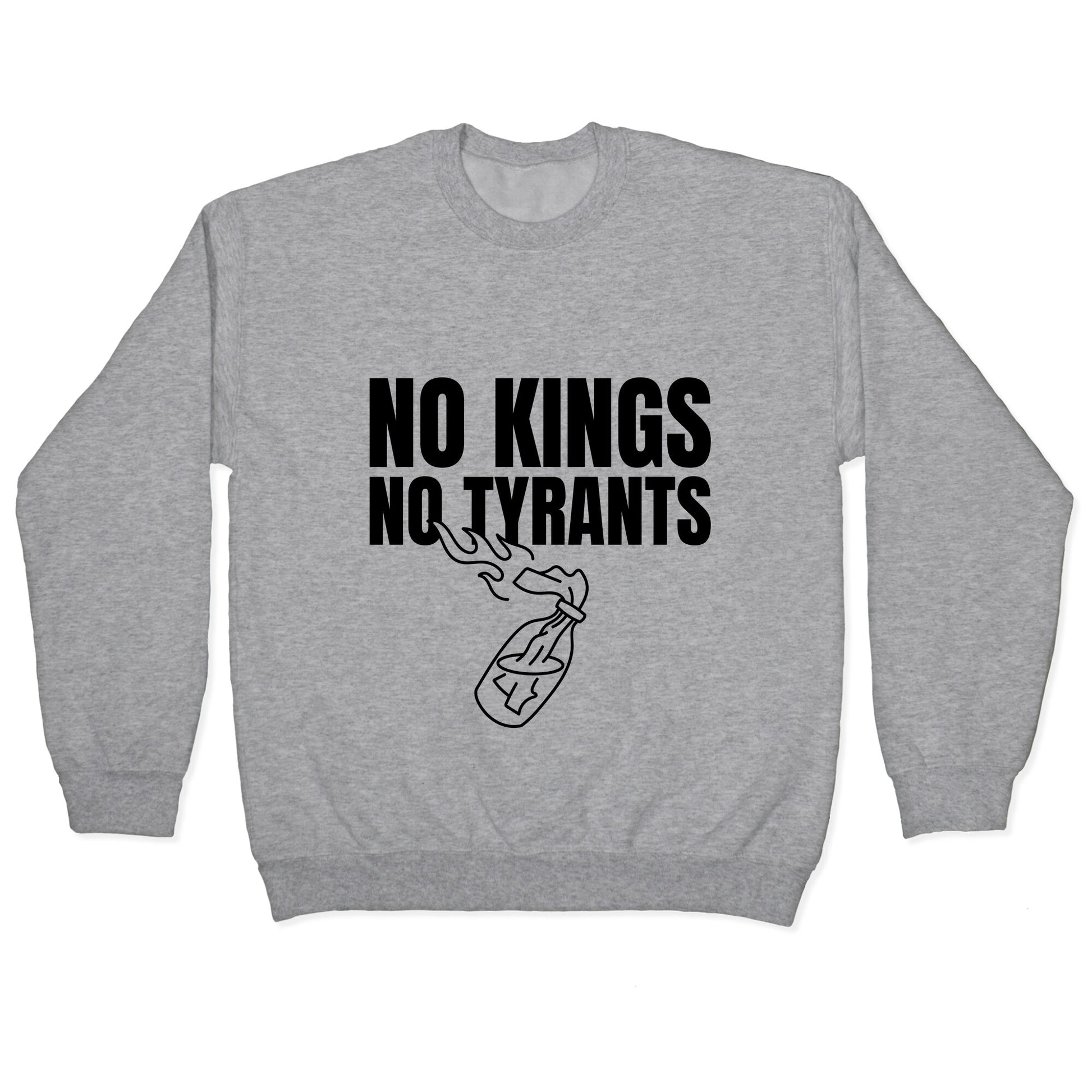 Make a bold statement with the "No Kings No Tyrants" design, a rallying cry for freedom and defiance against oppression. Wear it as a symbol of unwavering independence and the refusal to bow to authority. Our Unisex Crewneck Sweatshirt is made from a soft 8-ounce fabric, and they feature a crew neck, with sleeve and bottom hems for durability. Great for layering. Preshrunk for your convenience! Printed in the USA. Made with 50% Cotton and 50% Polyester.