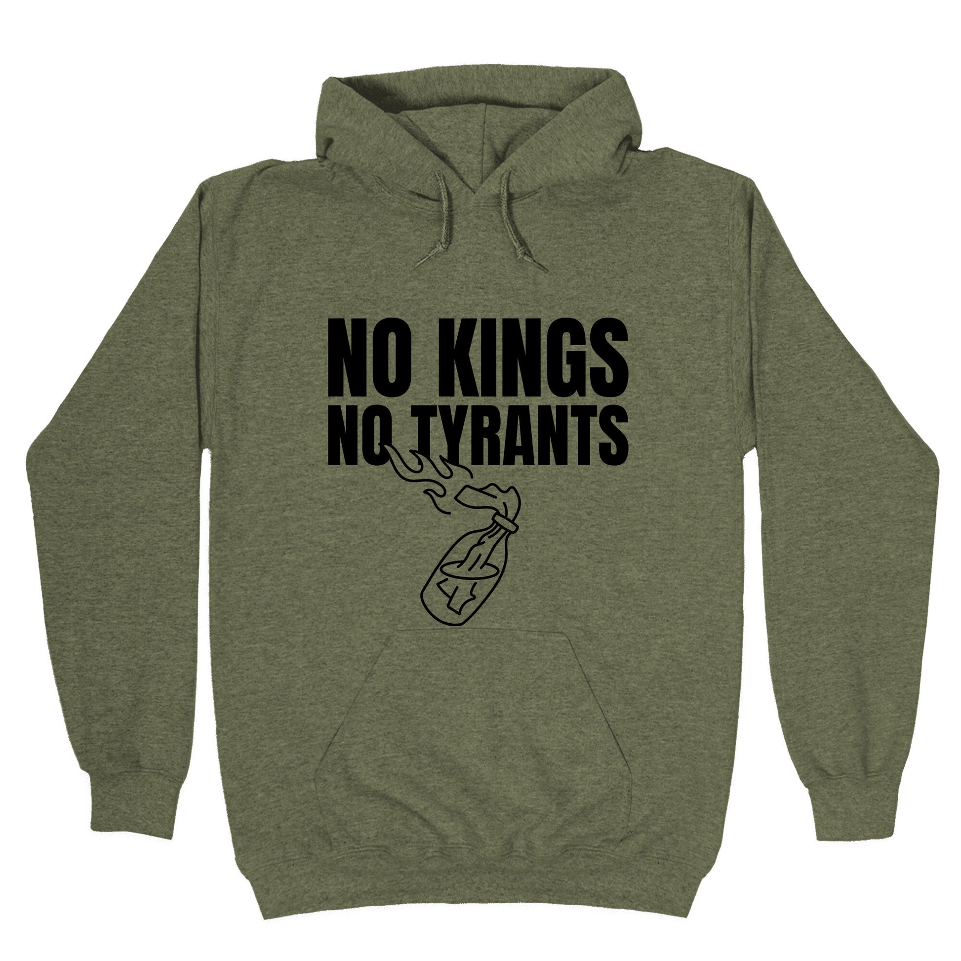 Make a bold statement with the "No Kings No Tyrants" design, a rallying cry for freedom and defiance against oppression. Wear it as a symbol of unwavering independence and the refusal to bow to authority. Our Unisex Pullover Hoodie is made from a soft 8-ounce fabric They feature a drawstring hood and front kangaroo pocket. Great for layering! Preshrunk for your convenience! Printed in the USA. Made with 50% Cotton and 50% Polyester.