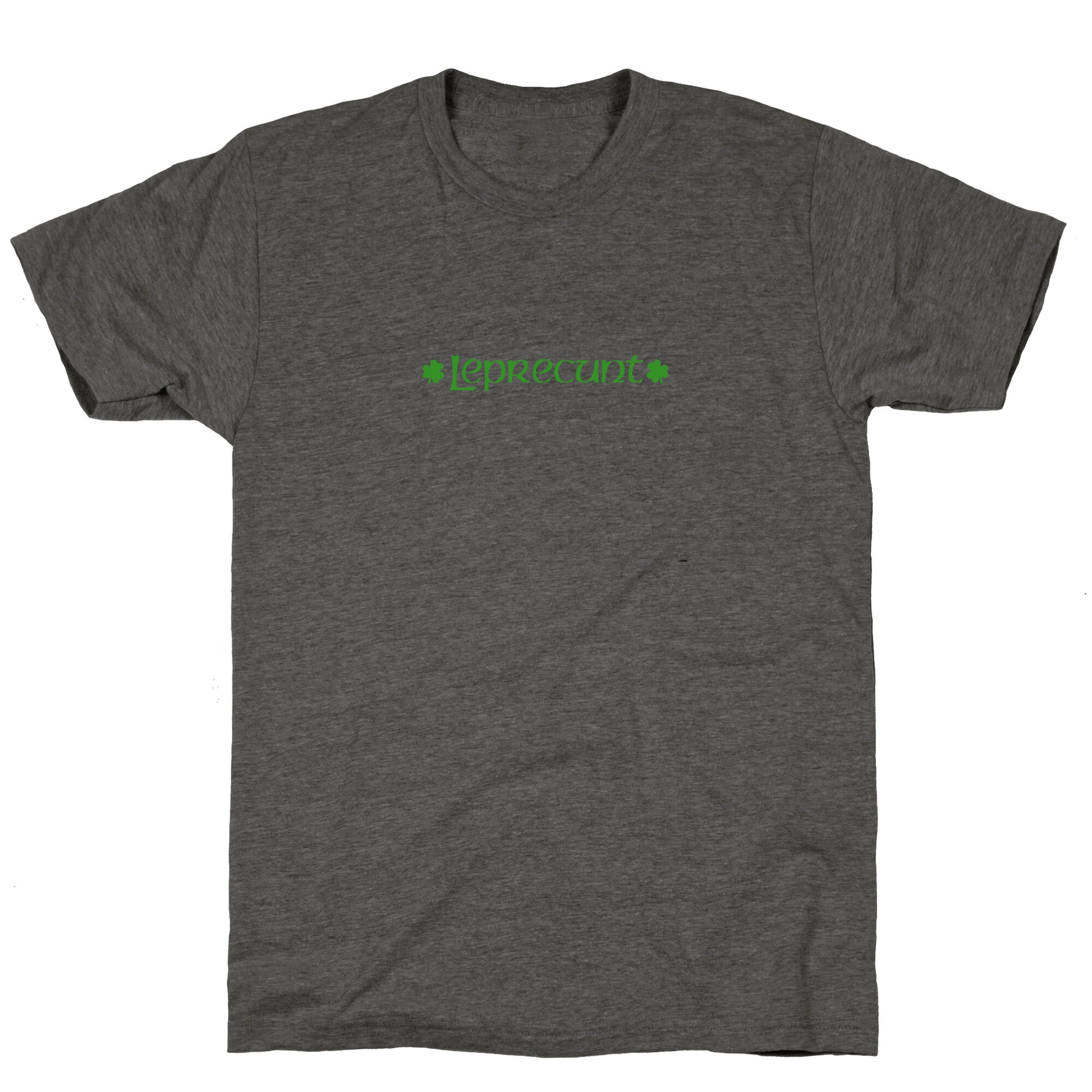 Unleash your mischievous side with the bold and cheeky Leprecunt design, perfect for those who love a little luck with a lot of attitude. Whether youre stirring up St. Paddys shenanigans or just making a statement, this eye-catching piece guarantees double takes and laughter. Our fitted Unisex Tri-Blend Tees are made with a soft tri-blend fabric. Featuring a crew neckline with sleeve and bottom hems for durability, these Tees look and feel great. Preshrunk for your convenience! Printed in the USA. Made with 50% Polyester, 25% Ring Spun Cotton, and 25% Rayon.