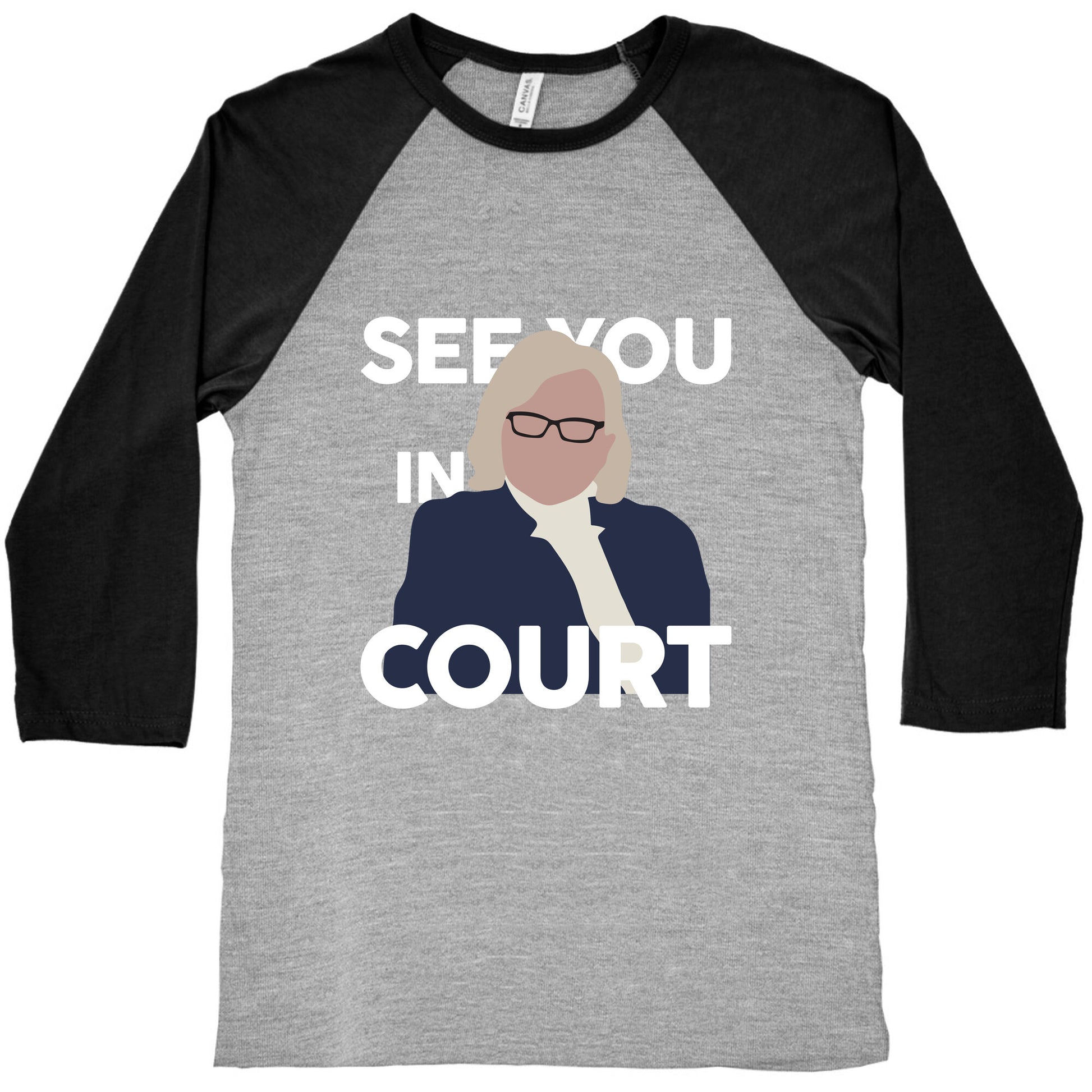 Make a bold statement with this eye-catching design featuring See You In Court by Governor Janet Mills, embodying resilience and unwavering determination. Perfect for those who stand their ground, this piece lets you wear your convictions with confidence. Our exceedingly soft and relaxed fit Tri-Blend Baseball Tee features a three-quarter length sleeve, crew neck, fun contrasting color sleeves and neck trim. Preshrunk for your convenience! Printed in the USA. Made with 50% Polyester, 25% Cotton and 25% Rayon