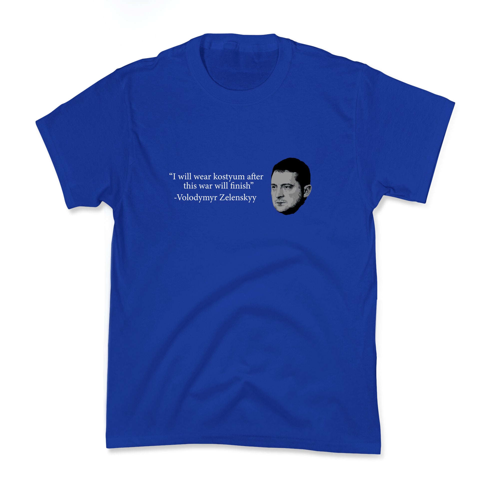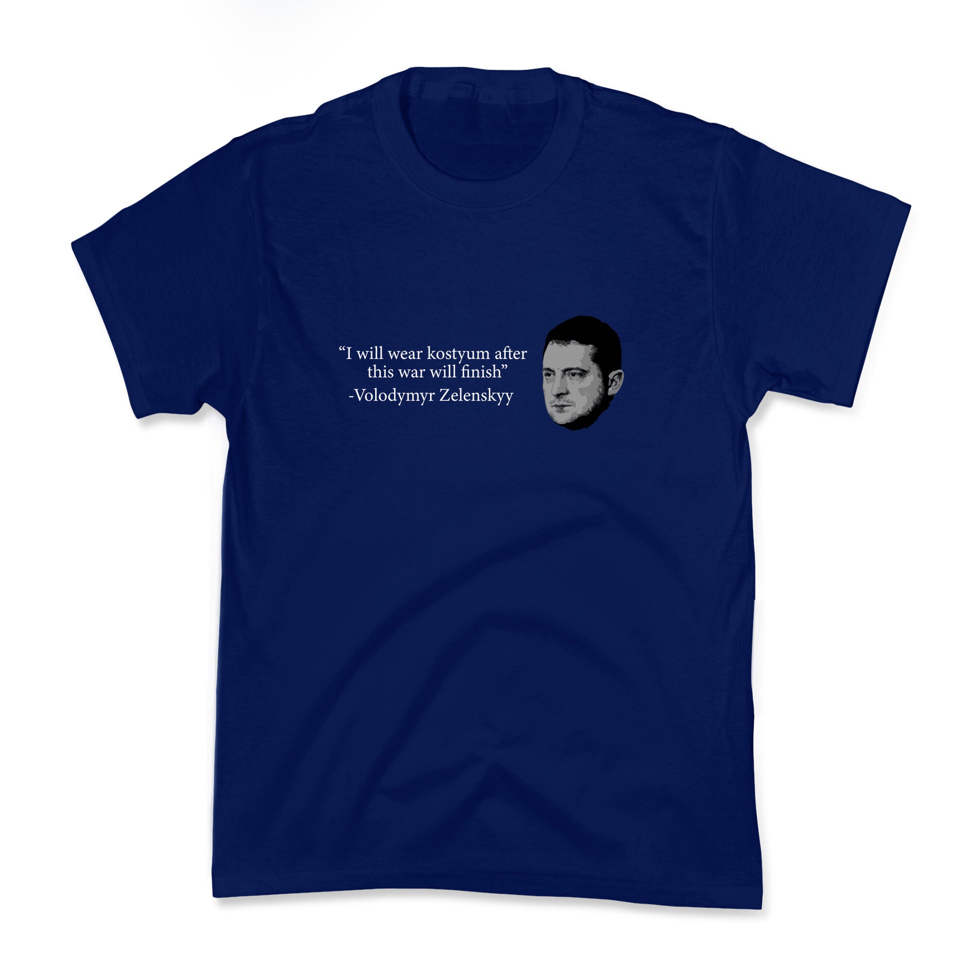 Show your support with this bold Zelenskyy-inspired design, capturing the resilience and leadership of a modern hero. A statement piece for those who stand with courage, unity, and unwavering determination. Our cool Kids Tees are made with exceedingly soft 100% ring spun cotton with hemmed sleeves and bottoms for durability. Preshrunk for your convenience! Printed in the USA. Made with 100% Cotton.