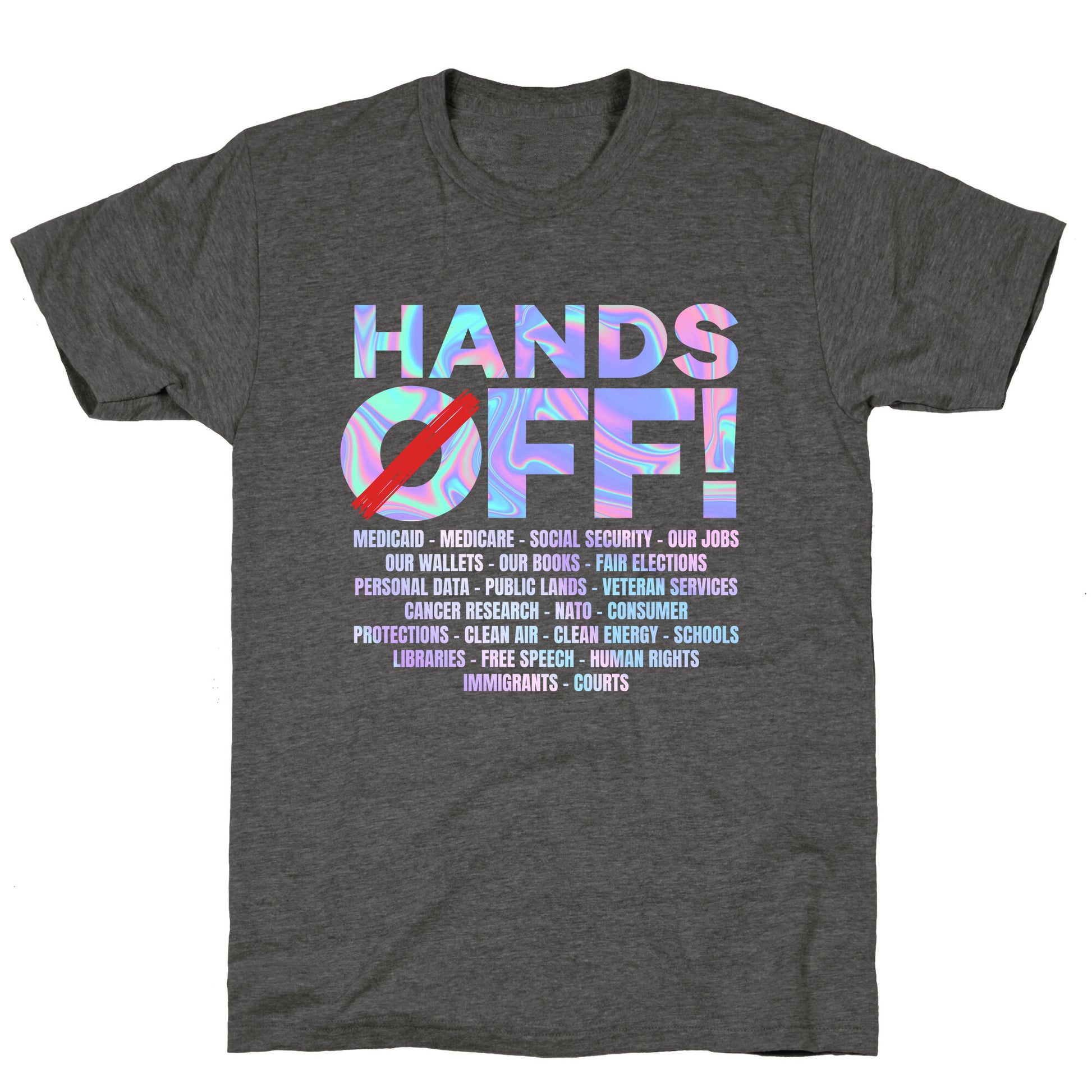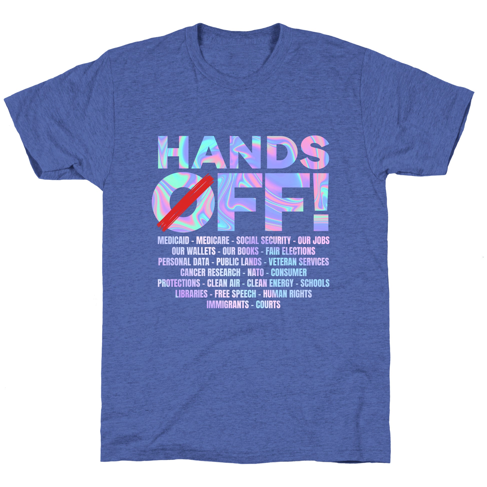 Make a bold statement with our "HANDS OFF!" shirtwhere personal freedom meets unapologetic resistance. Perfect for anyone who believes boundaries arent up for debate. Our fitted Unisex Tri-Blend Tees are made with a soft tri-blend fabric. Featuring a crew neckline with sleeve and bottom hems for durability, these Tees look and feel great. Preshrunk for your convenience! Printed in the USA. Made with 50% Polyester, 25% Ring Spun Cotton, and 25% Rayon.