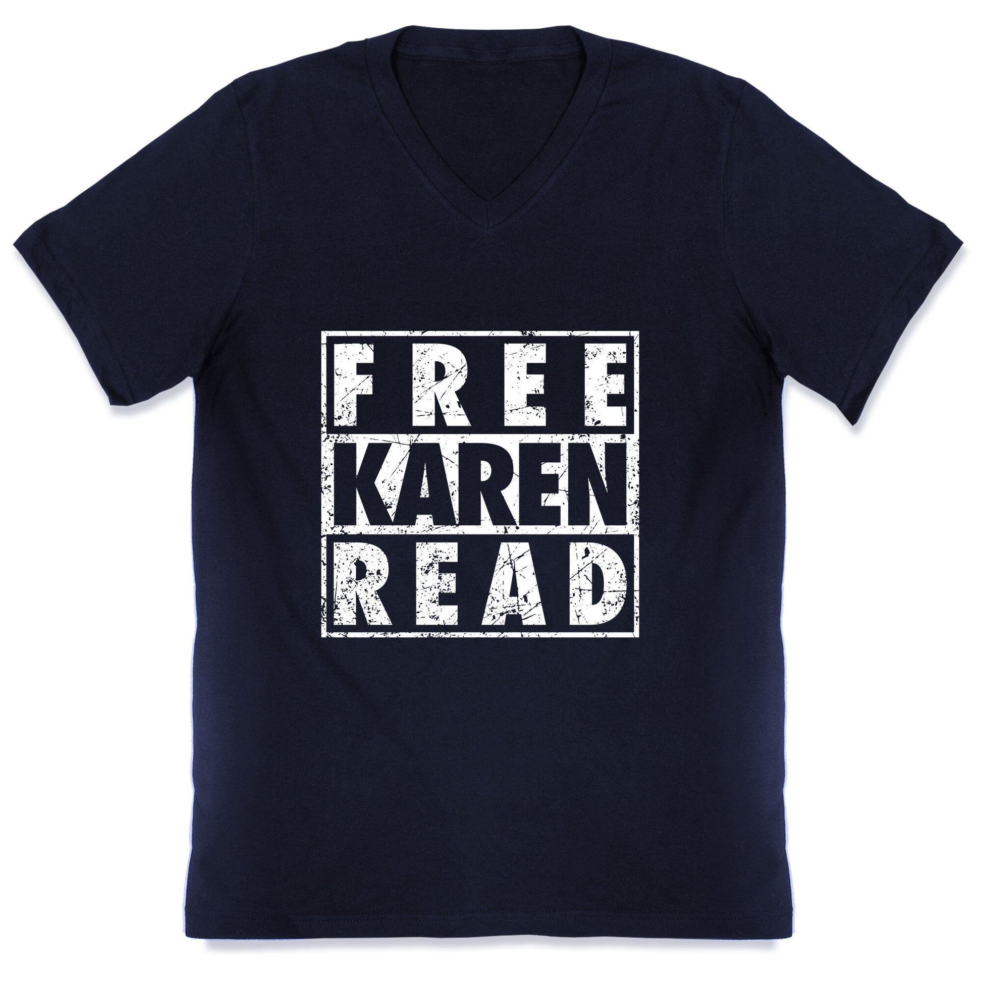 Boldly declare your stance with this eye-catching "Free Karen Read" shirt, designed for those who demand justice and wont be silenced. Wear your voice loud and proudbecause truth deserves to be seen. Our fitted Mens V-Neck tees are made with a soft jersey fabric. They feature a v-neckline, with sleeve and bottom hems for durability. Preshrunk for your convenience! Printed in the USA. Solid colors made with 100% Cotton and otherwise 90% Cotton and 10% Polyester.