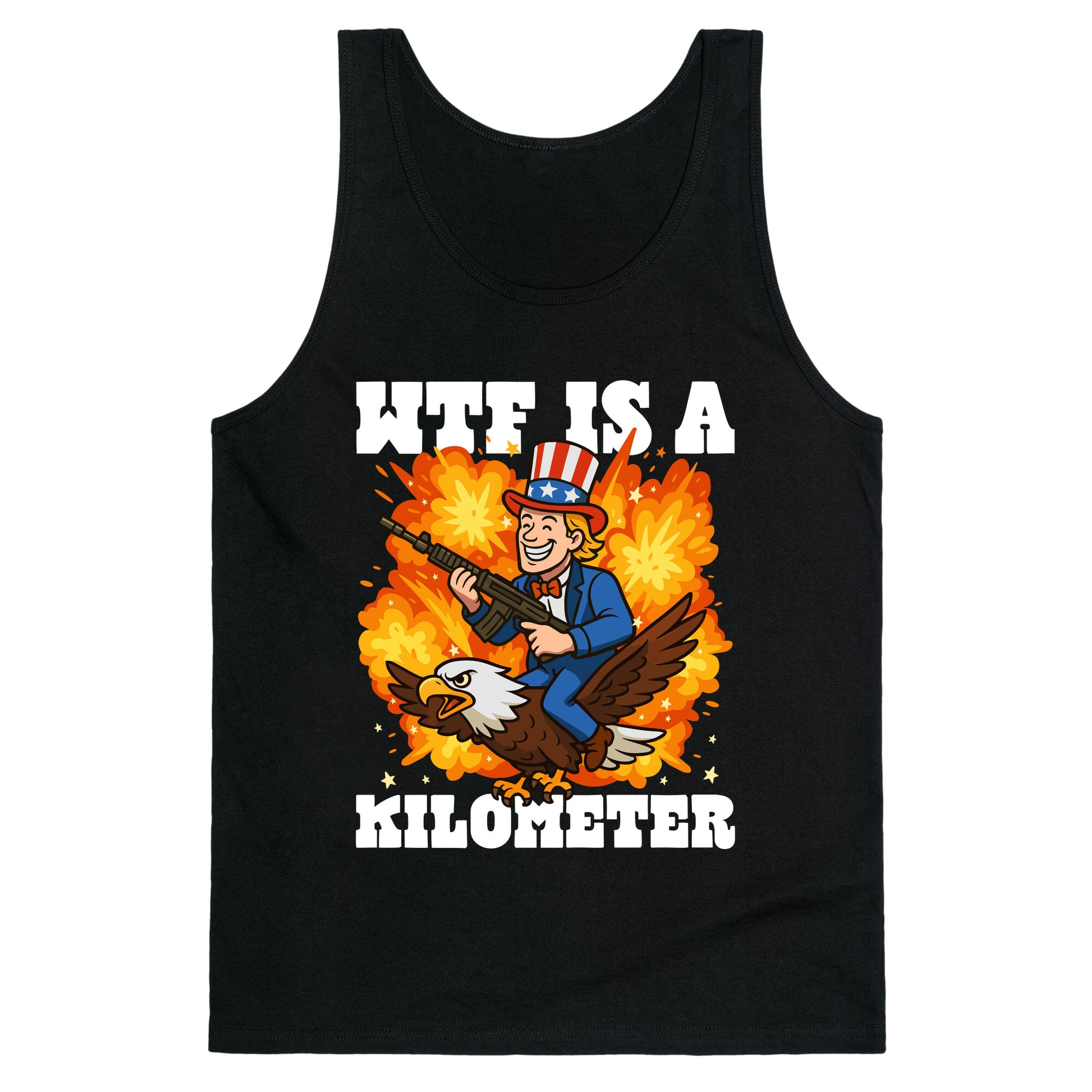Confuse foreigners and flex your freedom with our "WTF Is A Kilometer" shirt perfect for proudly not knowing the metric system since 1776. Its the ideal attire for measuring distance in bald eagles per cheeseburger. Our relaxed Unisex tanks, are made with exceedingly soft 100% ring spun cotton. They feature a rounded and hemmed neckline with wide comfortable straps. Preshrunk for your convenience! Printed in the USA. Made with 100% Ring Spun Cotton. Colors such as pink, grey, and blue are made with 50% poly 25% ring spun cotton and 25% Rayon.