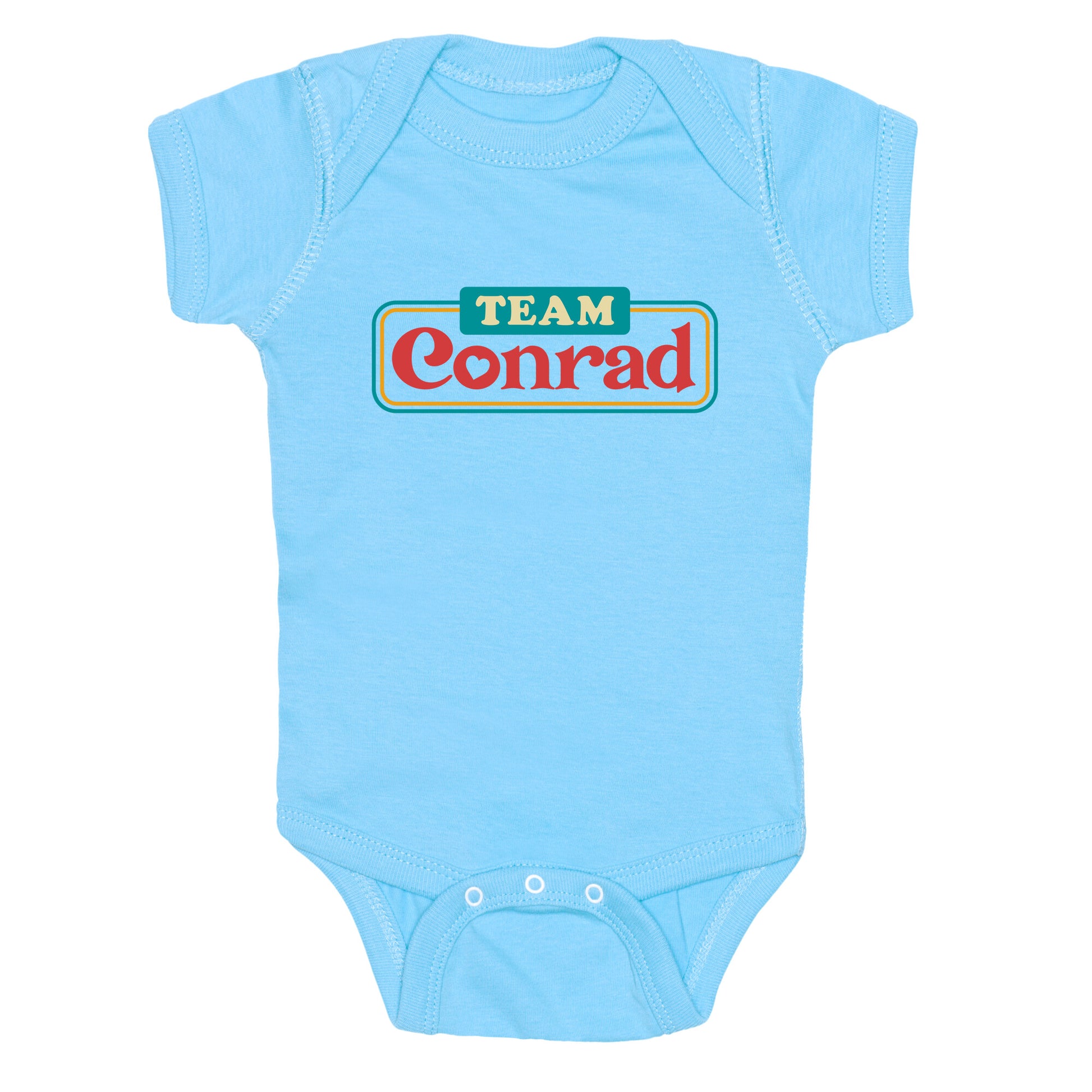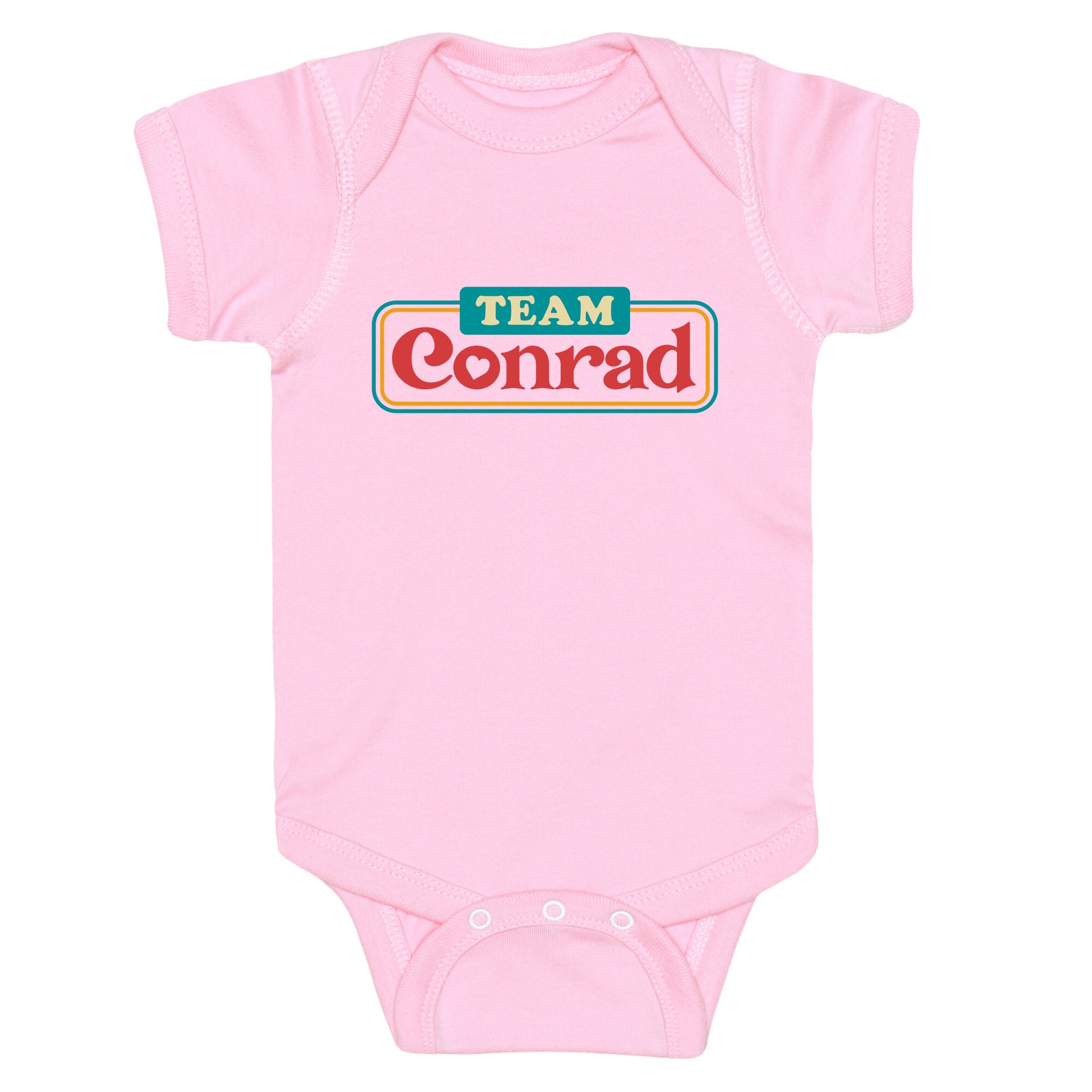 Declare your loyalty with this bold Team Conrad shirt that captures all the angst, charm, and unforgettable summer nights of Cousins Beach. Perfect for fans who believe first love never fades, its a wearable tribute to Bellys most complicated choice. Our Baby One Piece is made from exceedingly soft 100% ring spun cotton. They are featured with hemmed seams and a reinforced 3 snap bottom closure for easy diaper changes. Preshrunk for your convenience! Printed in the USA. Made with 100% Ring Spun Cotton.
