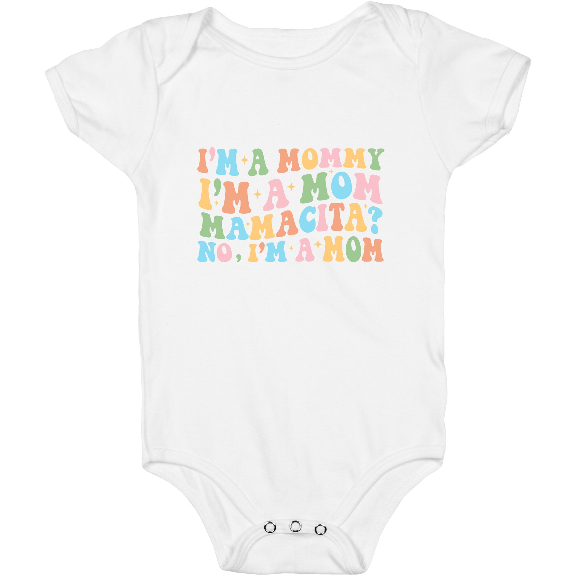 Turn heads in the villa with this cheeky "Im a Mommy" tee perfect for causing drama and stealing hearts. Whether youre coupling up or cracking on, this flirty statement makes sure everyone knows whos bringing the spice. Our Baby One Piece is made from exceedingly soft 100% ring spun cotton. They are featured with hemmed seams and a reinforced 3 snap bottom closure for easy diaper changes. Preshrunk for your convenience! Printed in the USA. Made with 100% Ring Spun Cotton.