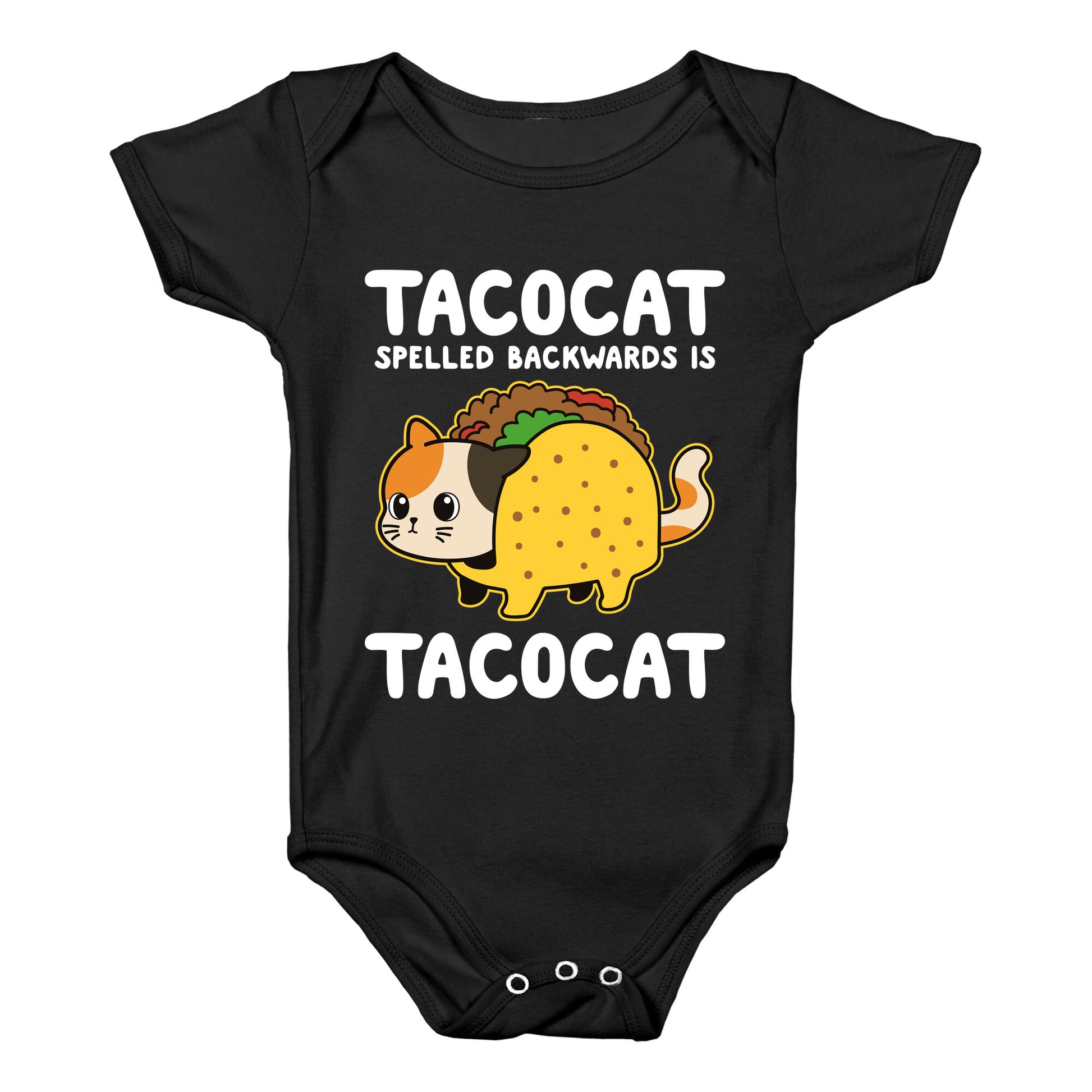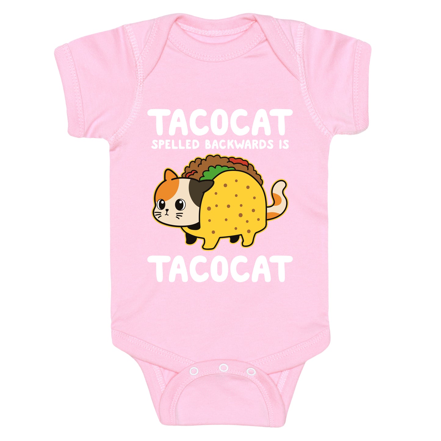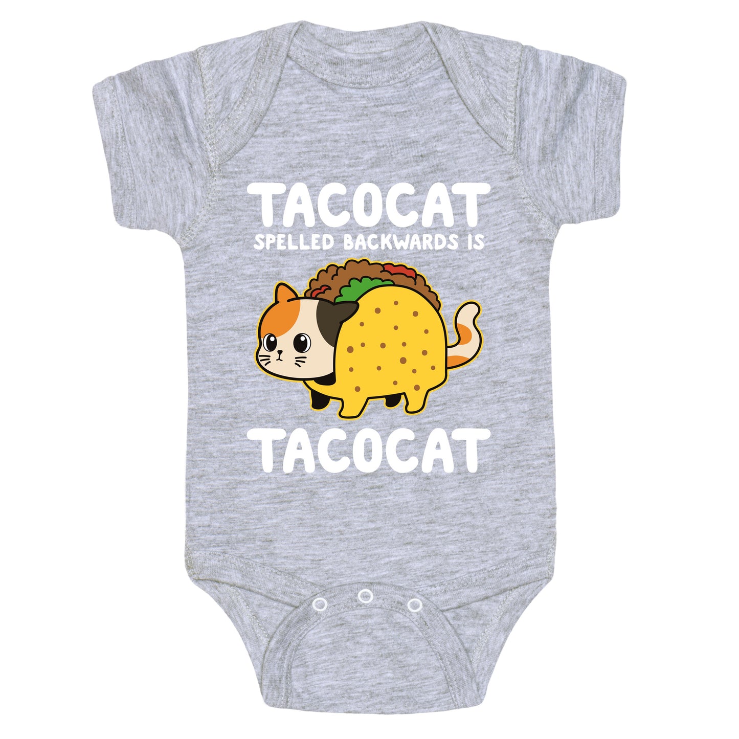 Flip the script with this mind-bending tee that proudly declares Tacocat spelled backwards is Tacocat. Perfect for pun lovers and palindrome chasers, its a conversation starter with a whiskered twist. Our Baby One Piece is made from exceedingly soft 100% ring spun cotton. They are featured with hemmed seams and a reinforced 3 snap bottom closure for easy diaper changes. Preshrunk for your convenience! Printed in the USA. Made with 100% Ring Spun Cotton.