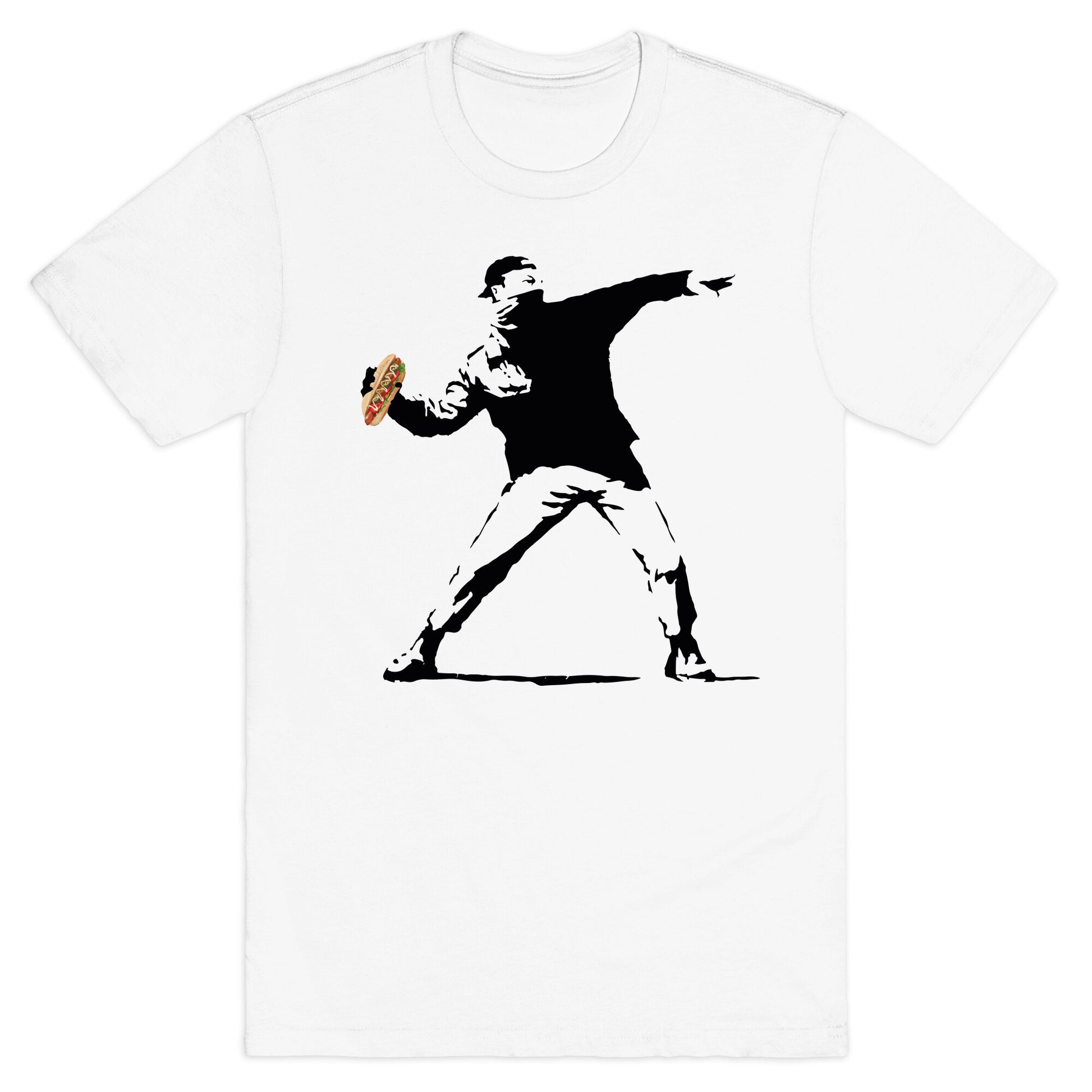 Make a statement with this bold protest tee featuring the iconic sandwich toss that went viral in DC. A perfect blend of humor and resistance, it captures the spirit of standing up and speaking out. Our fitted Unisex Cotton tee is made from an exceedingly soft 100% ring spun cotton. It features a crew neckline with hemmed sleeves and bottom for durability. Preshrunk for your convenience! Printed in the USA. Made with 100% Ring Spun Cotton. Athletic Gray is made up of 90% cotton and 10% polyester. Other heathered colors are made of 52% cotton and 48% polyester.