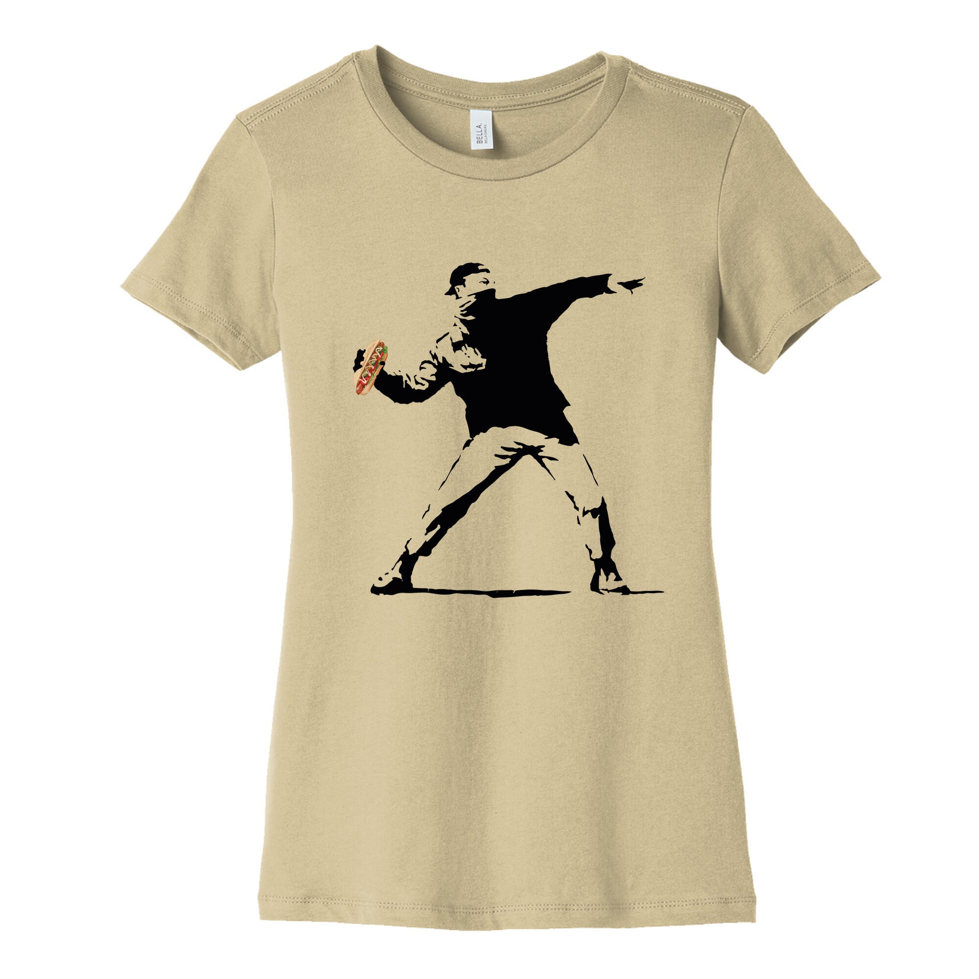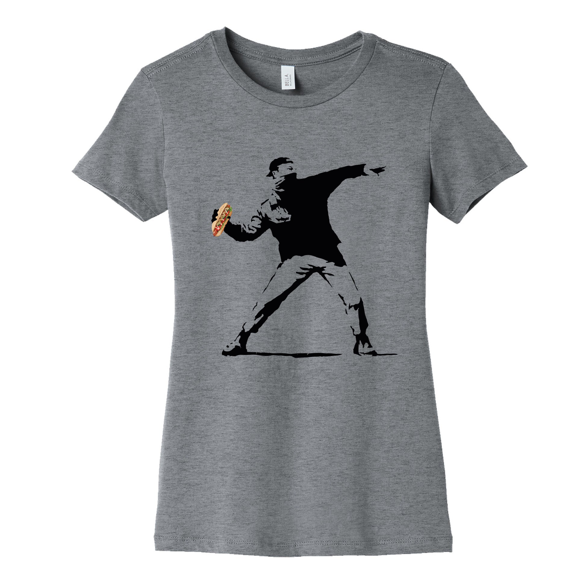 Make a statement with this bold protest tee featuring the iconic sandwich toss that went viral in DC. A perfect blend of humor and resistance, it captures the spirit of standing up and speaking out. Our slim fit Womens Cotton Tees, are made with exceedingly soft 100% cotton. They feature a relaxed neckline, and the sleeves and bottom, are hemmed for durability. Preshrunk for your convenience! Printed in the USA. Made with 100% Cotton. Colors such as gray, is made up of 90% cotton and 10% polyester, and deep pink is made up of 50% cotton and 50% polyester.