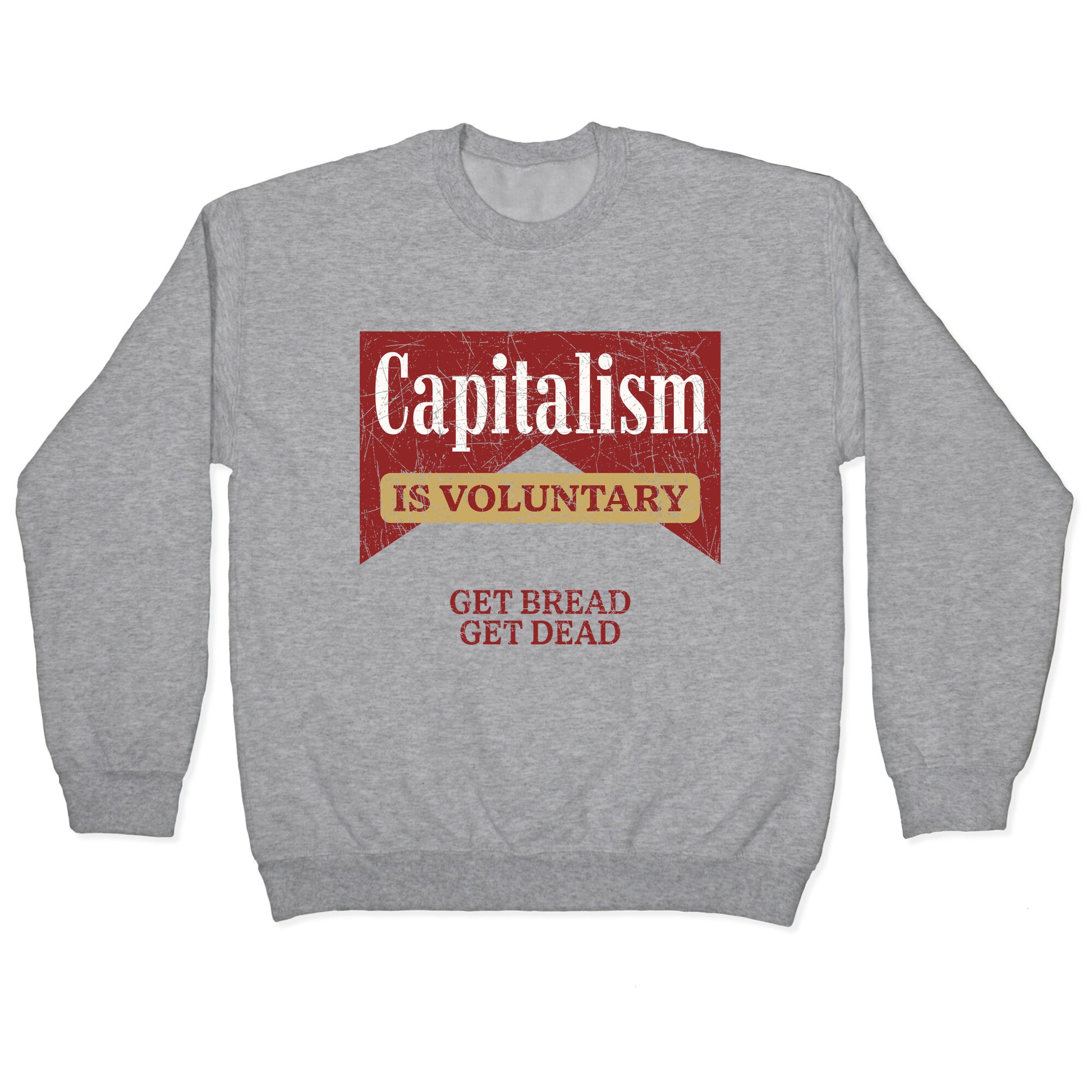 Wear your disillusionment loud a middle finger to the myth of the "free market." "Capitalism is Voluntary \(Get Bread Get Dead\)" isnt a slogan, its a eulogy with style. Our Unisex Crewneck Sweatshirt is made from a soft 8-ounce fabric, and they feature a crew neck, with sleeve and bottom hems for durability. Great for layering. Preshrunk for your convenience! Printed in the USA. Made with 50% Cotton and 50% Polyester.