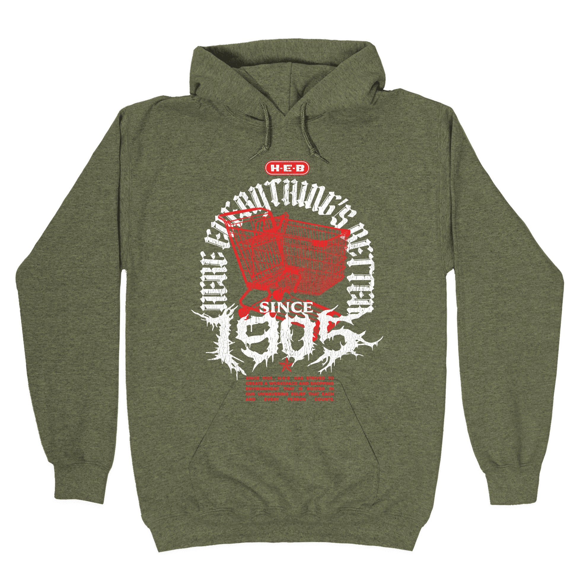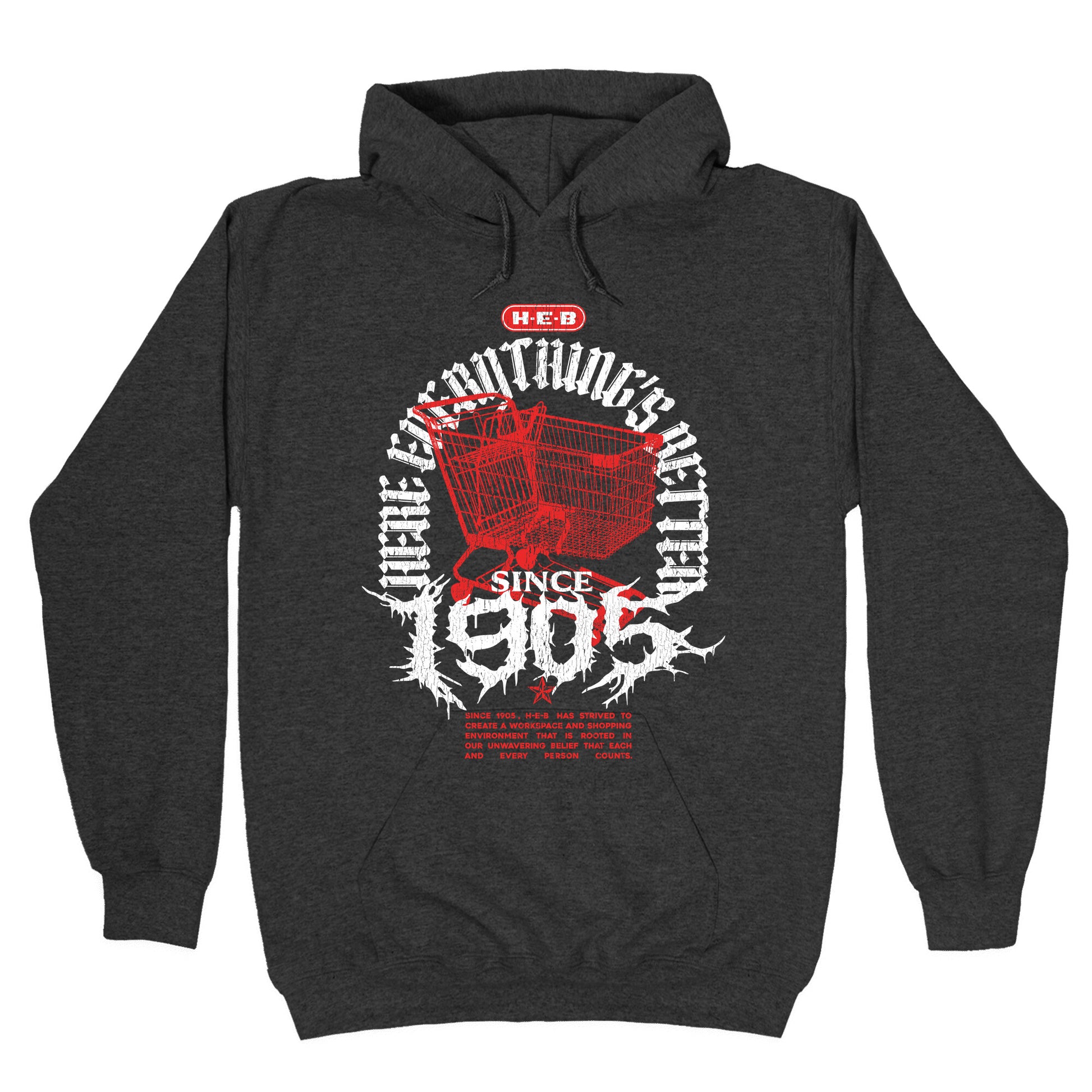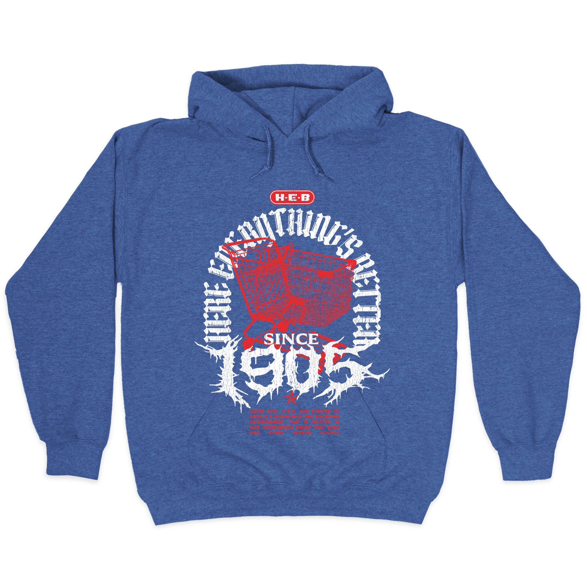 Show your Texas pride with this bold H-E-B Metal shirt, inspired by classic heavy metal band designs. Perfect for fans who want to rock their grocery game with attitude and hometown spirit. Our Unisex Pullover Hoodie is made from a soft 8-ounce fabric They feature a drawstring hood and front kangaroo pocket. Great for layering! Preshrunk for your convenience! Printed in the USA. Made with 50% Cotton and 50% Polyester.