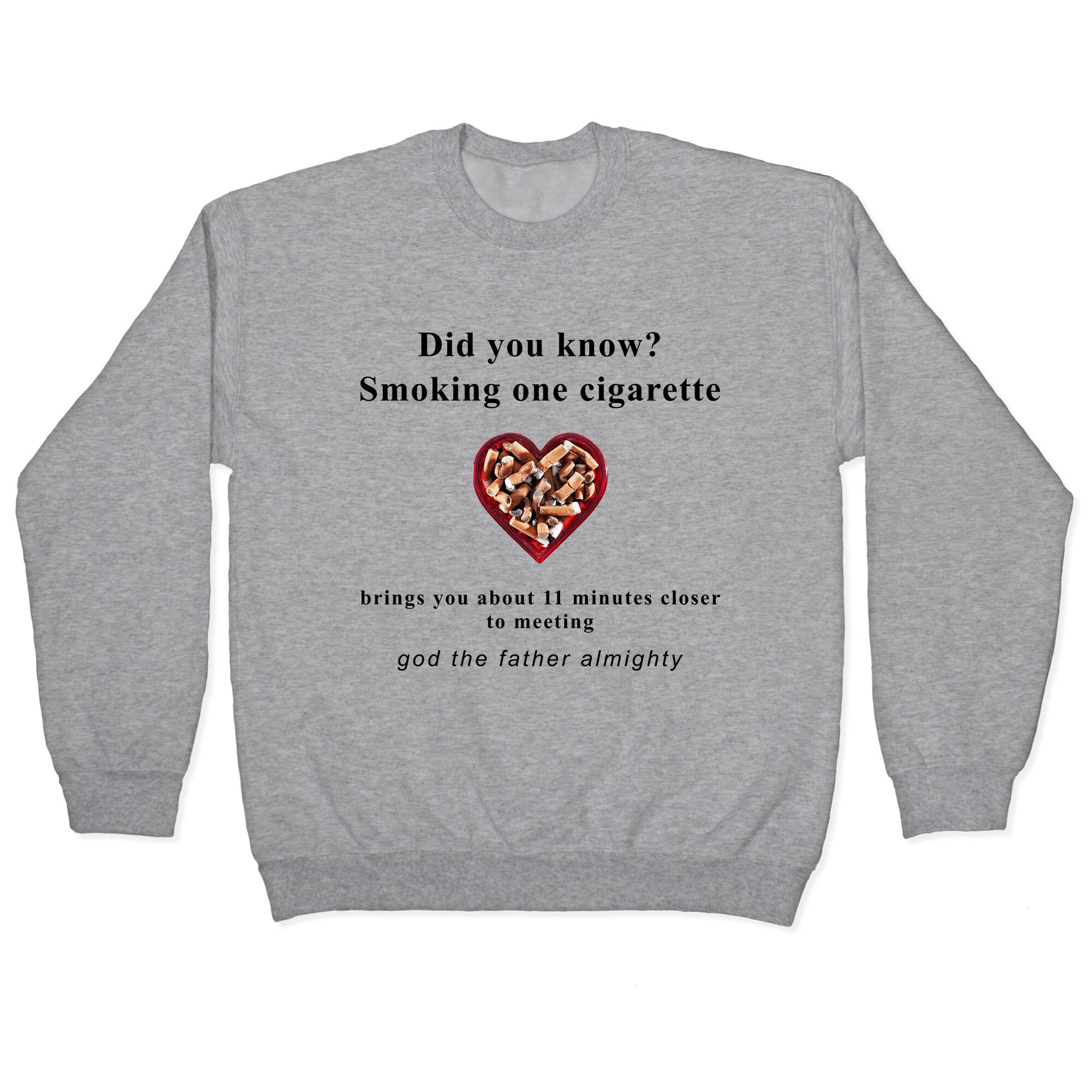 Light up and get one puff closer to meeting your maker its the original fast-track loyalty program. Perfect for anyone who likes their spiritual journeys short and smoky Our Unisex Crewneck Sweatshirt is made from a soft 8-ounce fabric, and they feature a crew neck, with sleeve and bottom hems for durability. Great for layering. Preshrunk for your convenience! Printed in the USA. Made with 50% Cotton and 50% Polyester.