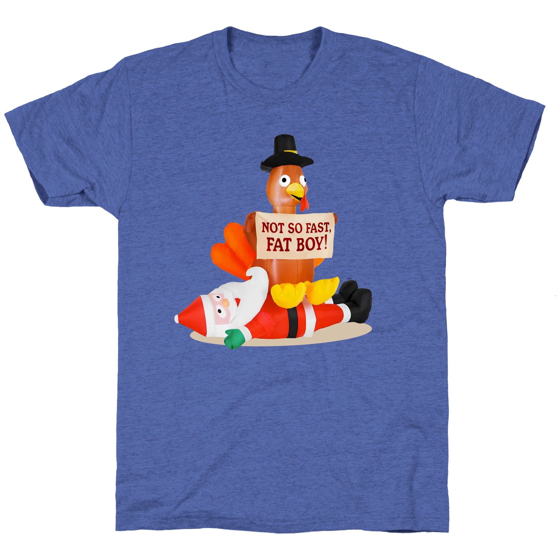 Watch Turkey and Santa battle for holiday supremacystuffing vs. stockings, gravy vs. gifts! Perfect for anyone who knows Thanksgiving isnt over until the turkey defeats Christmas in overtime! Our fitted Unisex Tri-Blend Tees are made with a soft tri-blend fabric. Featuring a crew neckline with sleeve and bottom hems for durability, these Tees look and feel great. Preshrunk for your convenience! Printed in the USA. Made with 50% Polyester, 25% Ring Spun Cotton, and 25% Rayon.