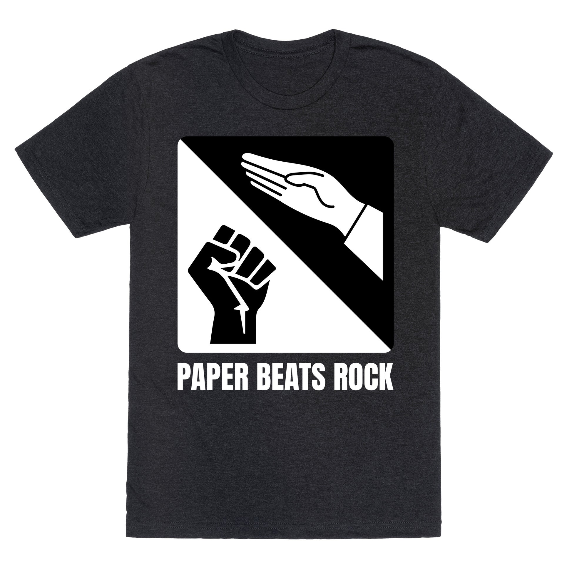 Defy the old rules with a bold twist on the classic game where ideas and rebellion always win. Paper Beats Rock isnt just a phrase, its a reminder that thought shatters power every time. Our fitted Unisex Tri-Blend Tees are made with a soft tri-blend fabric. Featuring a crew neckline with sleeve and bottom hems for durability, these Tees look and feel great. Preshrunk for your convenience! Printed in the USA. Made with 50% Polyester, 25% Ring Spun Cotton, and 25% Rayon.