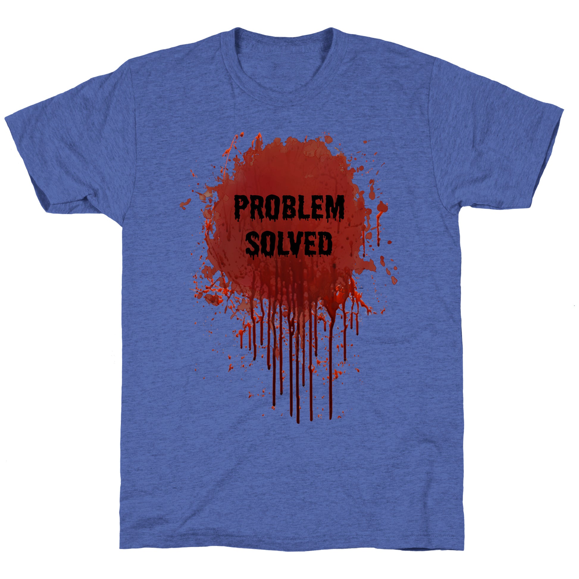 Make a bold statement with the "Problem Solved" shirt a darkly funny twist that turns chaos into confidence. Perfect for anyone who handles lifes messes with a grin and a touch of menace. Our fitted Unisex Tri-Blend Tees are made with a soft tri-blend fabric. Featuring a crew neckline with sleeve and bottom hems for durability, these Tees look and feel great. Preshrunk for your convenience! Printed in the USA. Made with 50% Polyester, 25% Ring Spun Cotton, and 25% Rayon.
