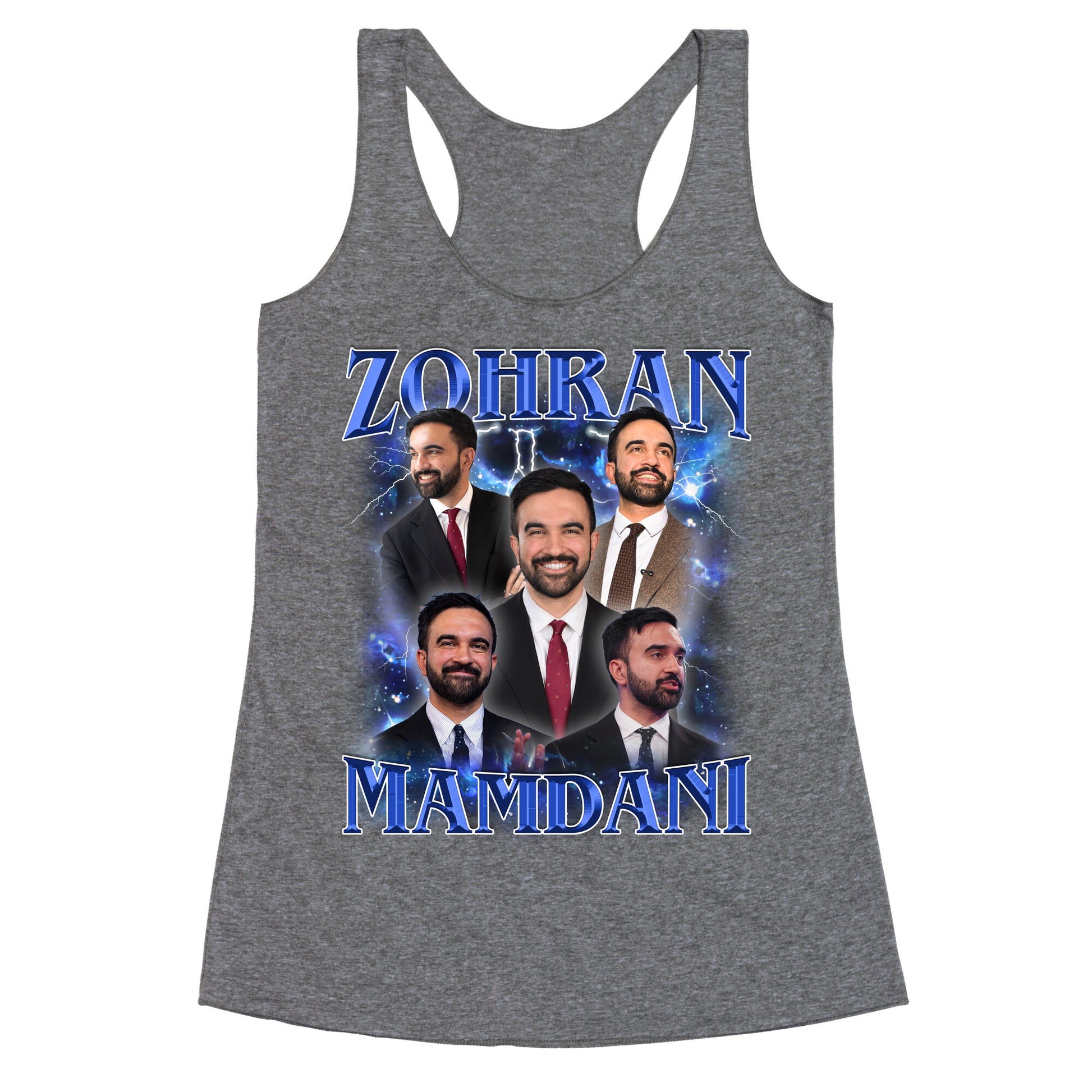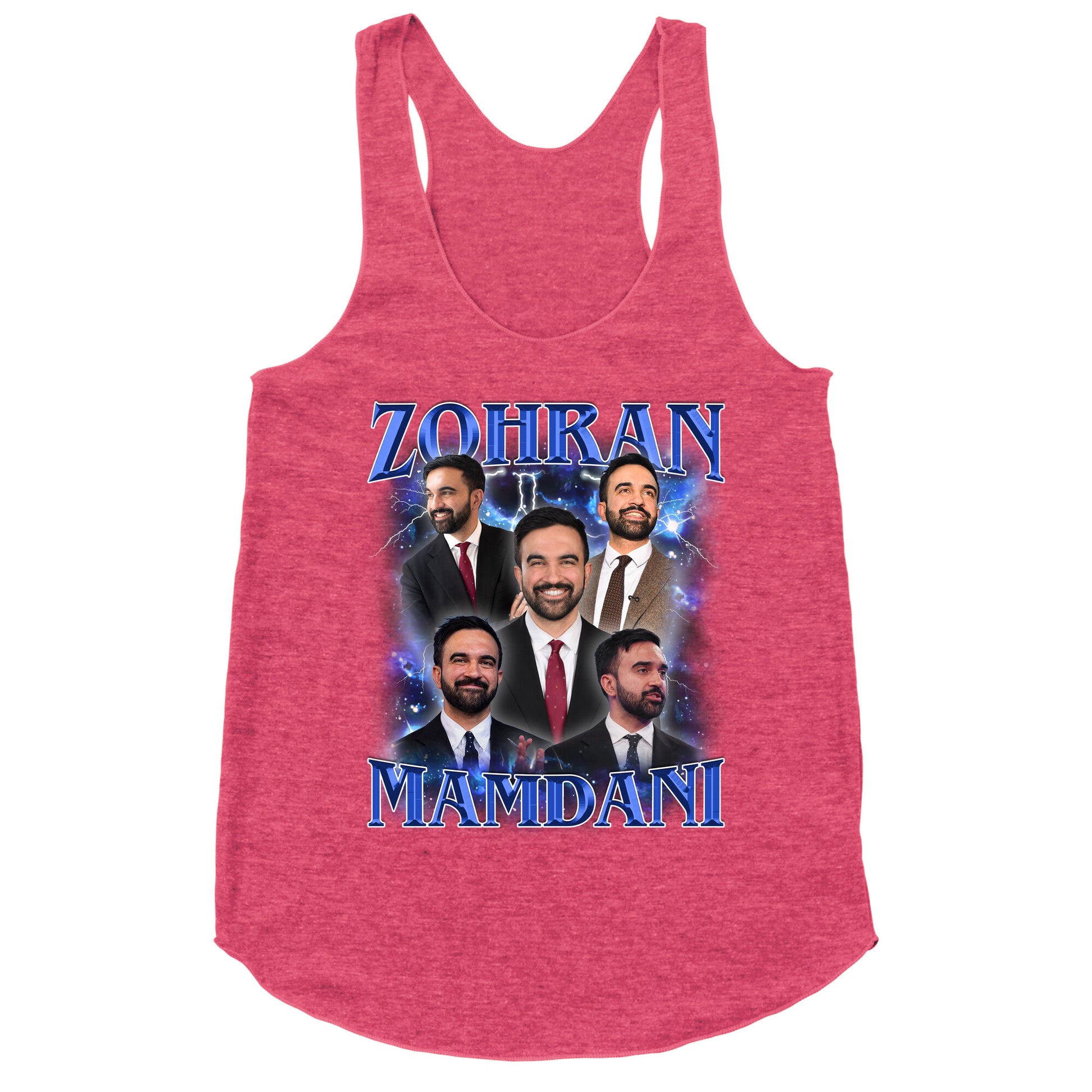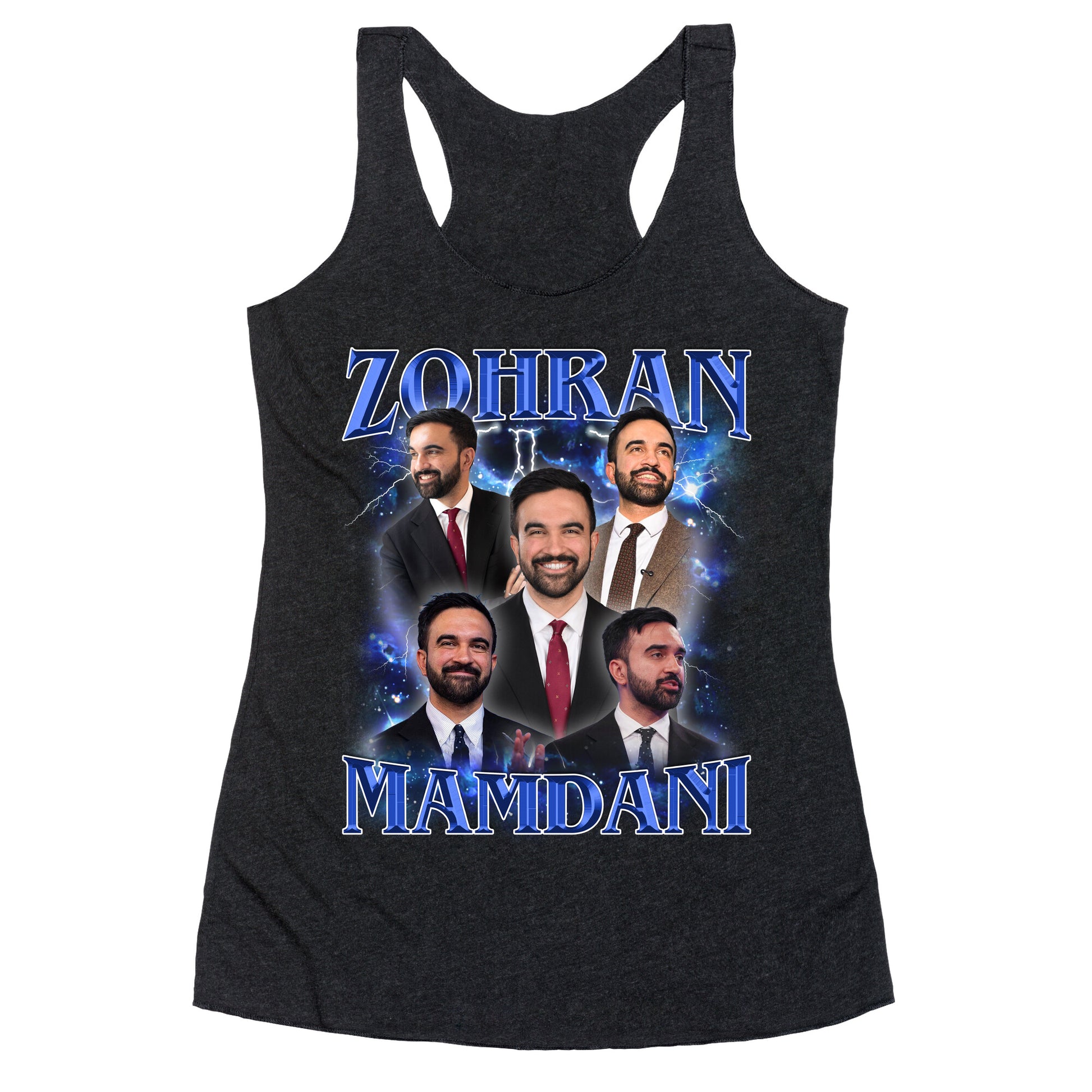 Show your love for Astorias finest with this offbeat tribute to Zohran Mamdani part local legend, part revolutionary icon. A bold, bootleg-style nod to grassroots power and Queens pride, straight from the peoples playlist. Our super comfortable Womens Raw Edge Racerback features a soft tri-blend, unhemmed fabric, with a fashionable bell-like shape for the bottom. Preshrunk for your convenience! Printed in the USA. Made with 50% Polyester 25% Ring Spun Cotton, and 25% Rayon.