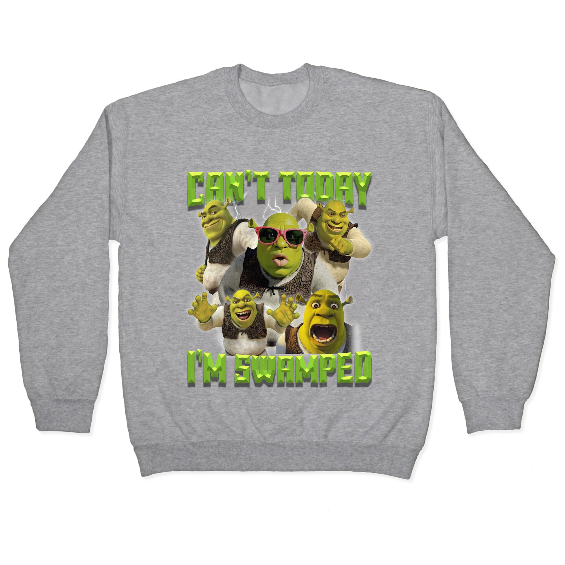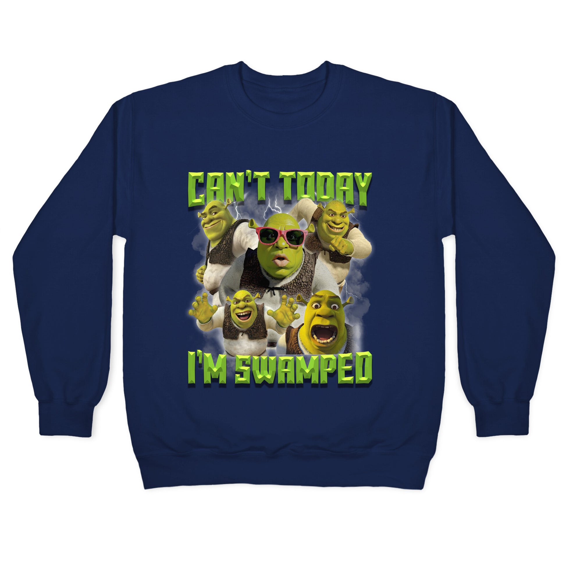 Tell the world youre booked and busyby swamp standards. This \"Cant Today, Im Swamped\" Shrek shirt lets everyone know youre living your best ogre life, one mud bath at a time. Our Unisex Crewneck Sweatshirt is made from a soft 8-ounce fabric, and they feature a crew neck, with sleeve and bottom hems for durability. Great for layering. Preshrunk for your convenience! Printed in the USA. Made with 50% Cotton and 50% Polyester.