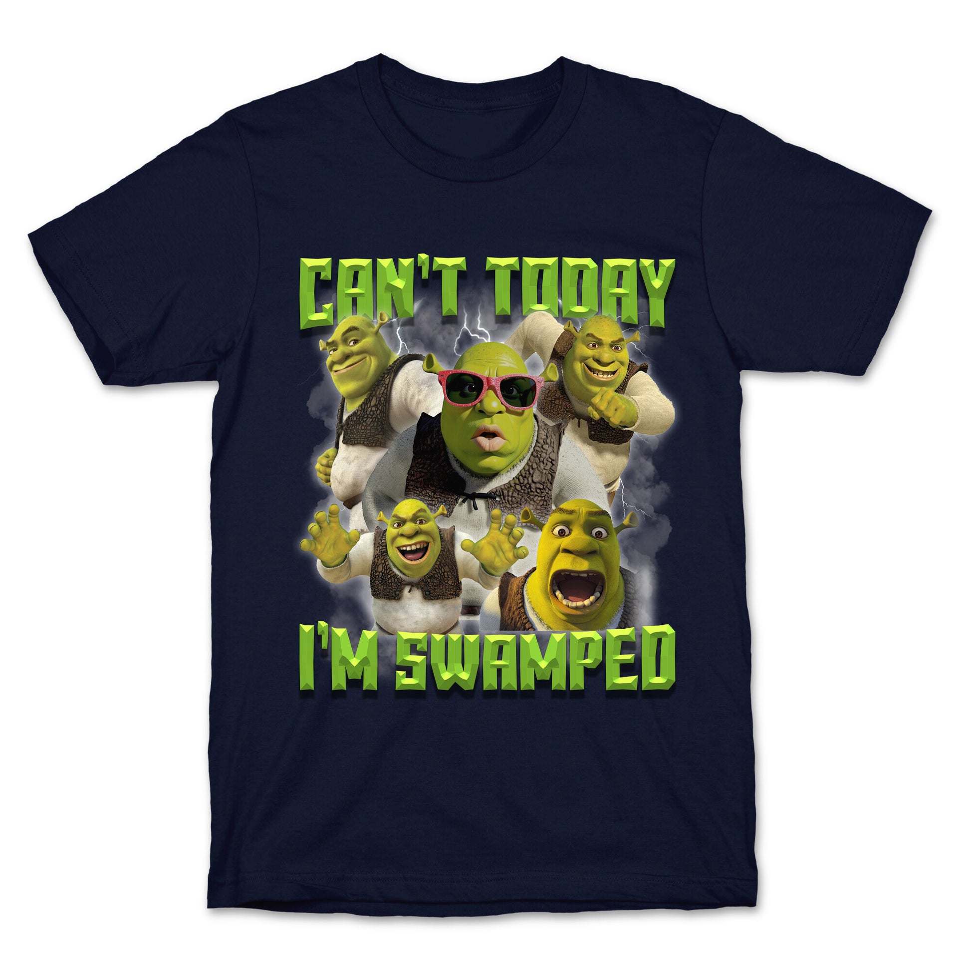 Tell the world youre booked and busyby swamp standards. This \"Cant Today, Im Swamped\" Shrek shirt lets everyone know youre living your best ogre life, one mud bath at a time. Our fitted Unisex Cotton tee is made from an exceedingly soft 100% ring spun cotton. It features a crew neckline with hemmed sleeves and bottom for durability. Preshrunk for your convenience! Printed in the USA. Made with 100% Ring Spun Cotton. Athletic Gray is made up of 90% cotton and 10% polyester. Other heathered colors are made of 52% cotton and 48% polyester.