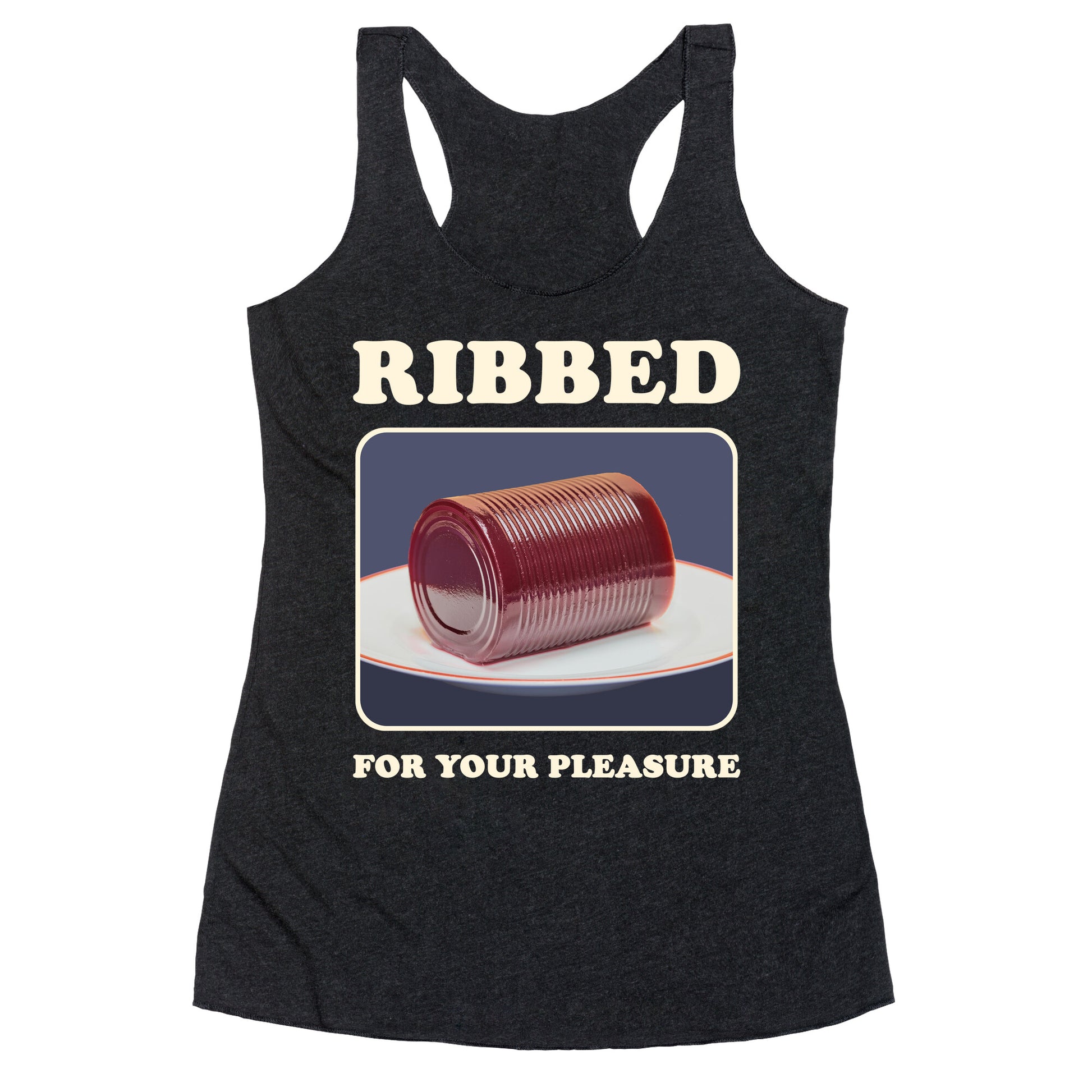 Spread the holiday cheer with a winkour Ribbed for Your Pleasure cranberry sauce shirt turns heads at every Thanksgiving table. Perfect for anyone who loves a little saucy humor with their stuffing! Our super comfortable Womens Raw Edge Racerback features a soft tri-blend, unhemmed fabric, with a fashionable bell-like shape for the bottom. Preshrunk for your convenience! Printed in the USA. Made with 50% Polyester 25% Ring Spun Cotton, and 25% Rayon.