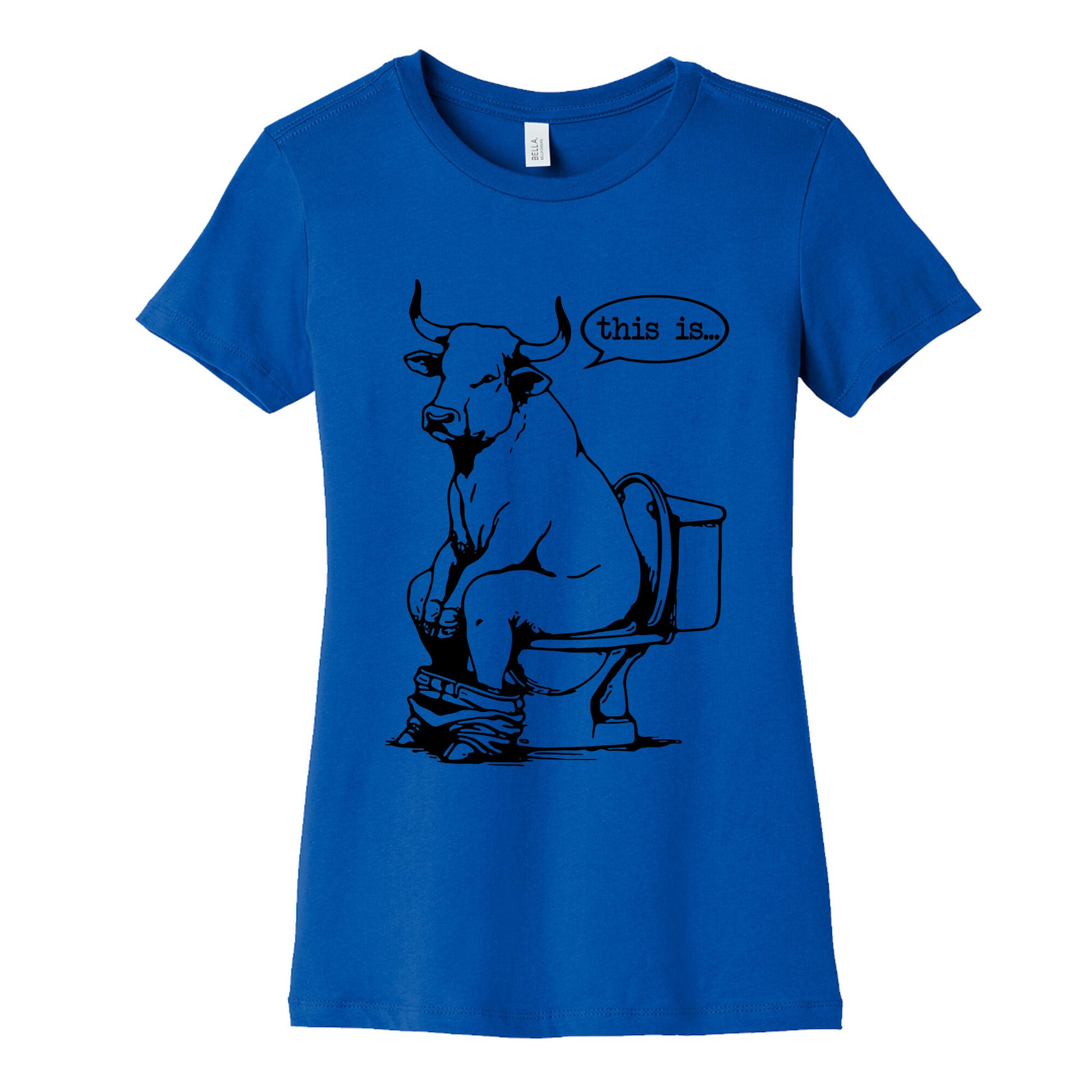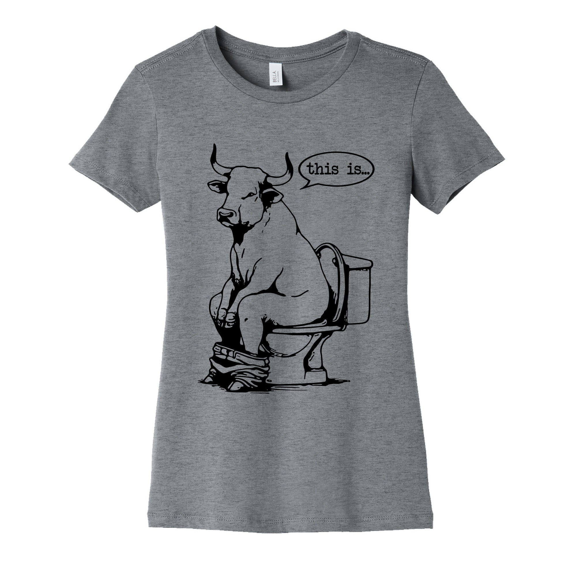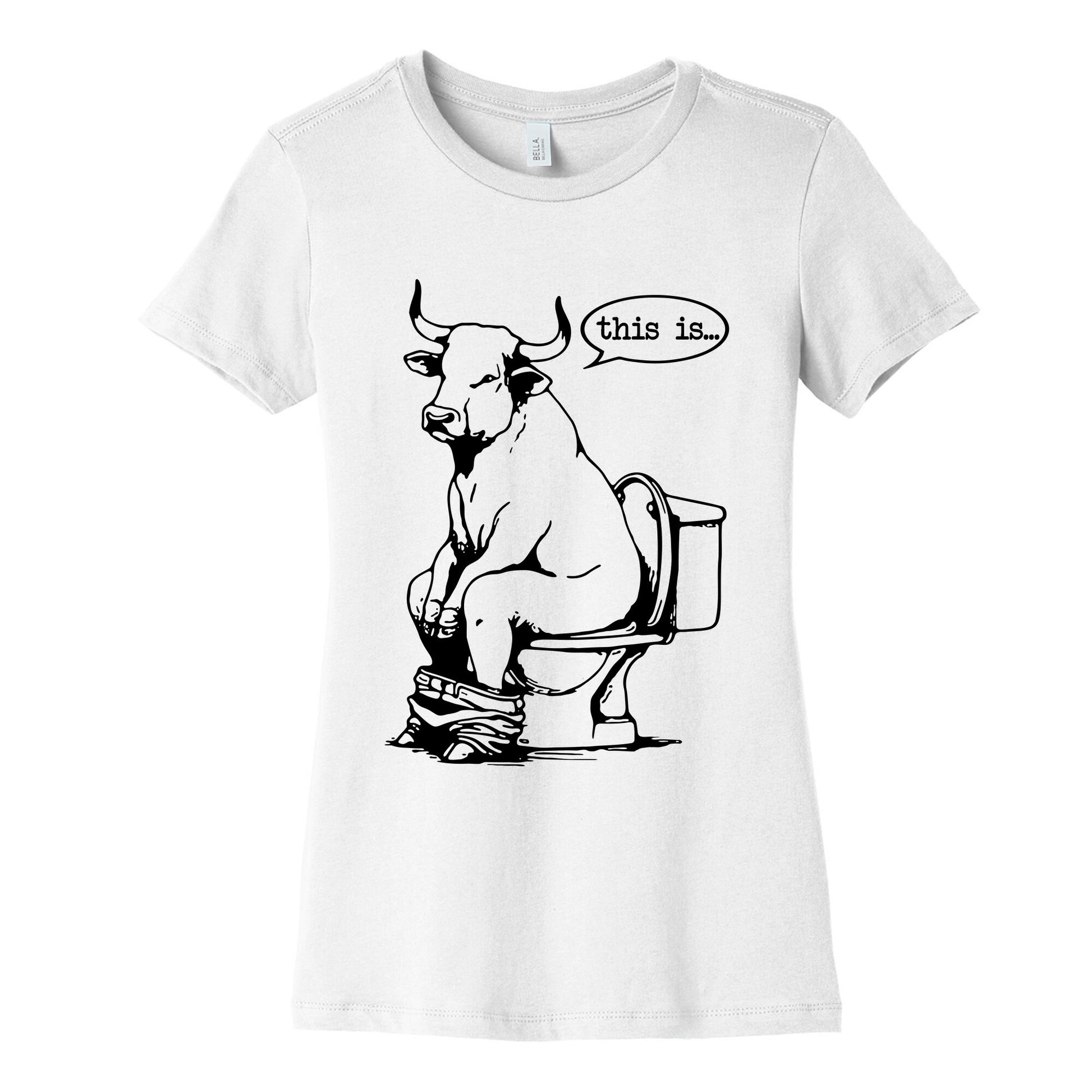 Unleash your sense of humor with this cheeky design thats equal parts bold and ridiculous. Perfect for anyone who loves a laugh and isnt afraid to show it, this shirt says it all: This is Bull Shit. Our slim fit Womens Cotton Tees, are made with exceedingly soft 100% cotton. They feature a relaxed neckline, and the sleeves and bottom, are hemmed for durability. Preshrunk for your convenience! Printed in the USA. Made with 100% Cotton. Colors such as gray, is made up of 90% cotton and 10% polyester, and deep pink is made up of 50% cotton and 50% polyester.