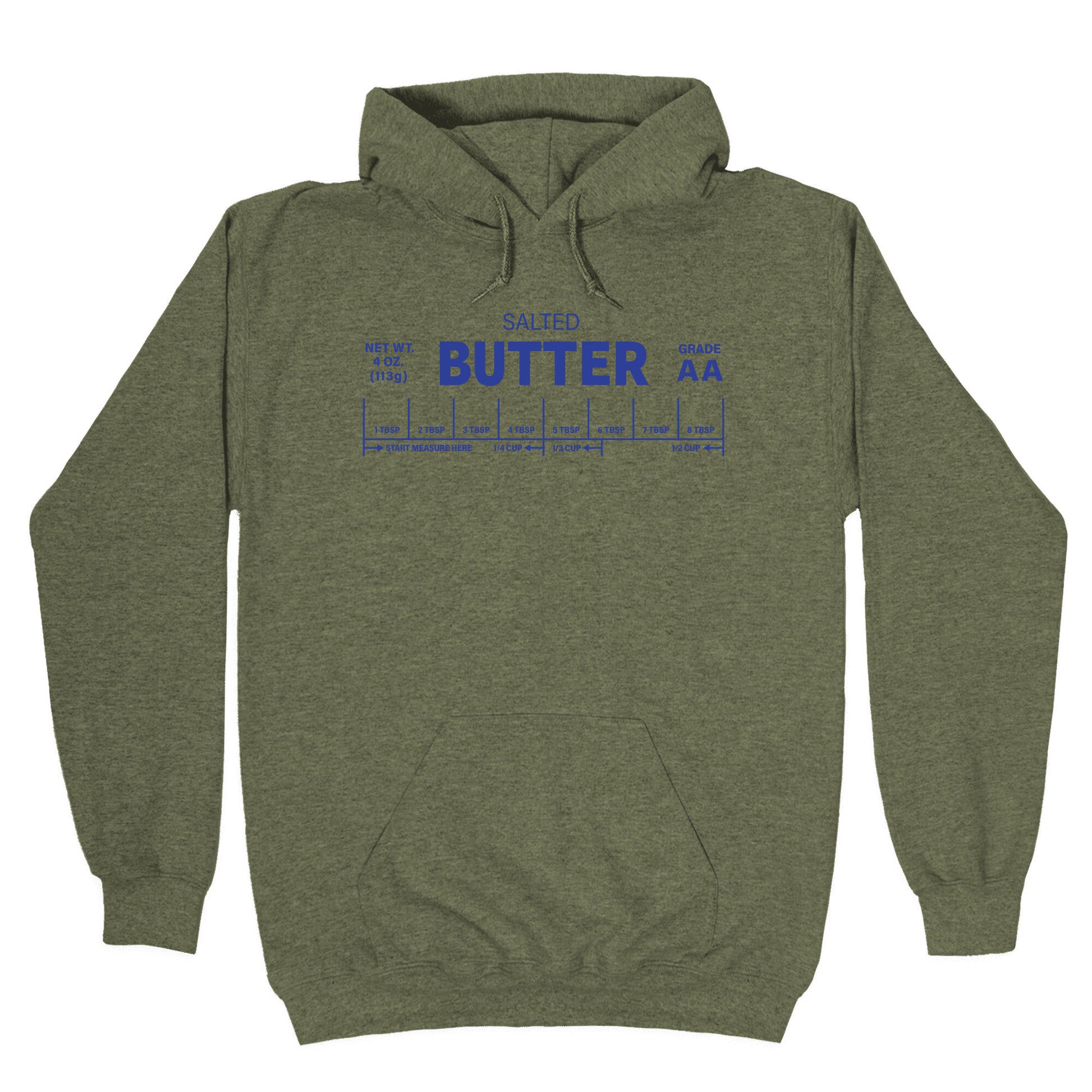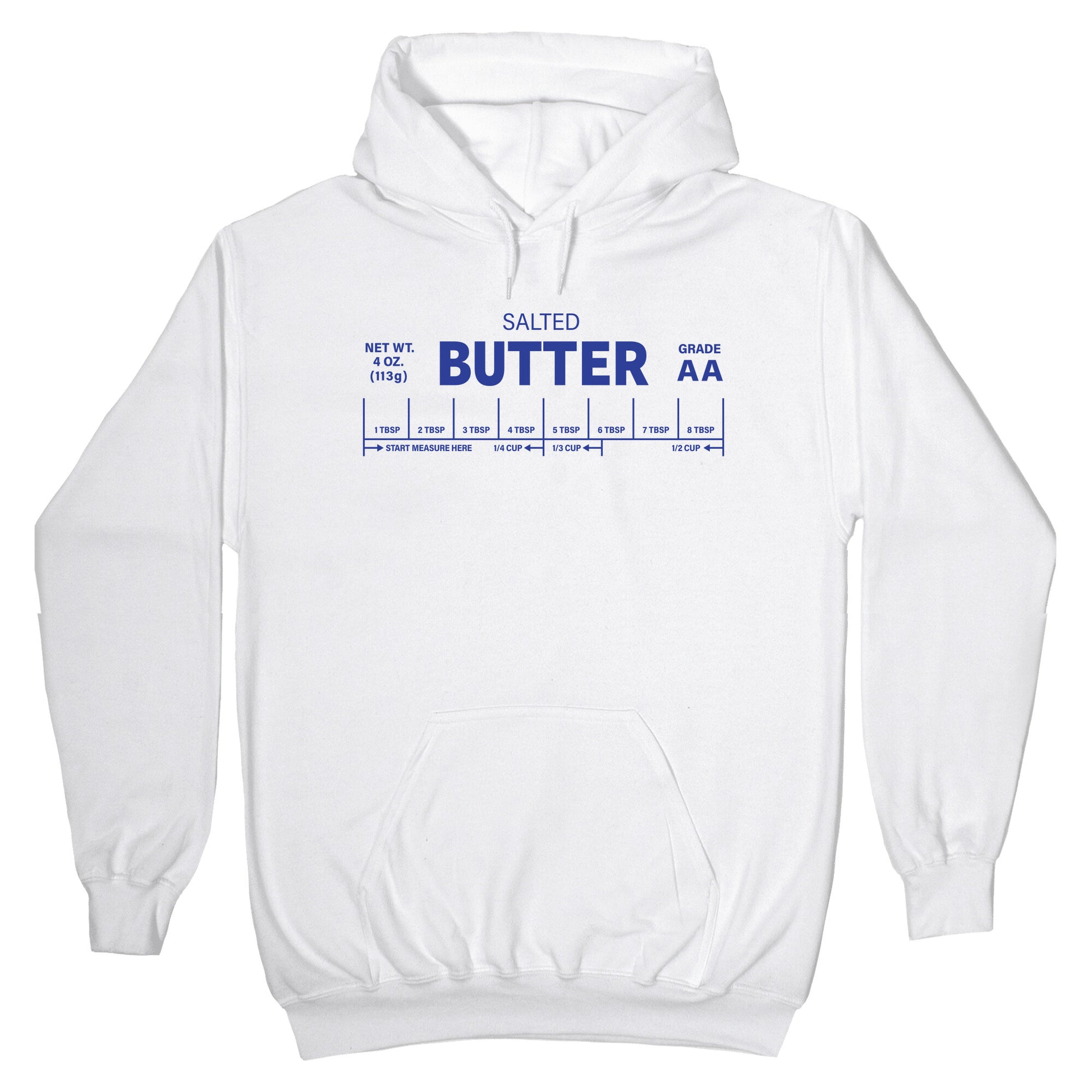 Channel your inner culinary hero with this playful shirt featuring a whimsical cosplay of a salted butter pack. Its the perfect way to add a dash of humor and flavor-inspired charm to your everyday style. Our Unisex Pullover Hoodie is made from a soft 8-ounce fabric They feature a drawstring hood and front kangaroo pocket. Great for layering! Preshrunk for your convenience! Printed in the USA. Made with 50% Cotton and 50% Polyester.