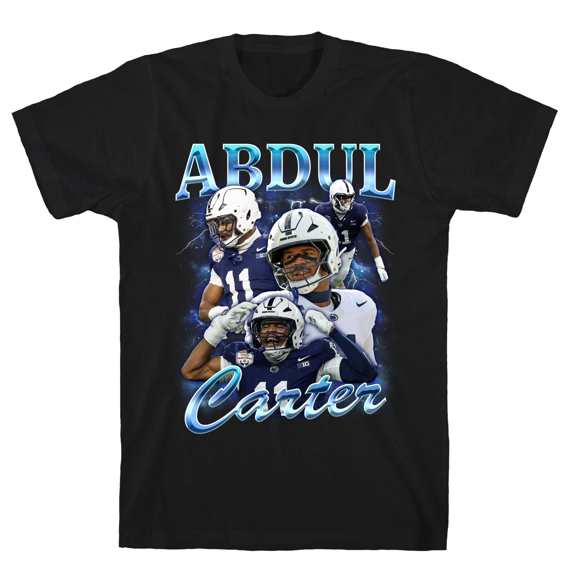 Show your fandom with this officially licensed Abdul Carter football shirt, celebrating one of the games most electrifying defensive playmakers. Bold player detailing lets you rep your favorite linebacker with pride on game day or any day. Our fitted Unisex Cotton tee is made from an exceedingly soft 100% ring spun cotton. It features a crew neckline with hemmed sleeves and bottom for durability. Preshrunk for your convenience! Printed in the USA. Made with 100% Ring Spun Cotton. Athletic Gray is made up of 90% cotton and 10% polyester. Other heathered colors are made of 52% cotton and 48% polyester.