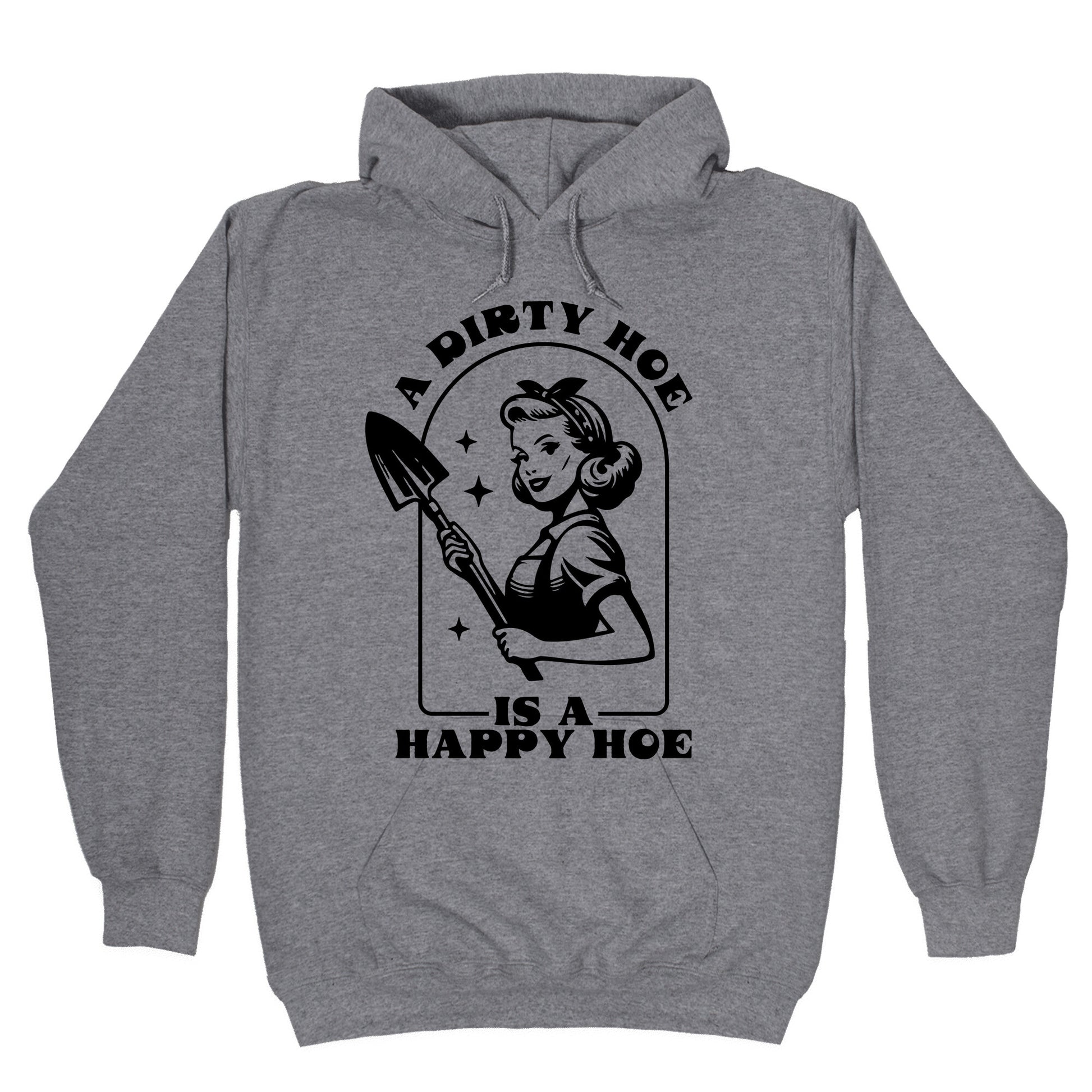 This shirt proudly celebrates gardenings filthiest truth: a dirty hoe is a happy hoe. Wear it and let everyone know youre not afraid to get down and dirty in the garden, obviously. Our Unisex Pullover Hoodie is made from a soft 8-ounce fabric They feature a drawstring hood and front kangaroo pocket. Great for layering! Preshrunk for your convenience! Printed in the USA. Made with 50% Cotton and 50% Polyester.