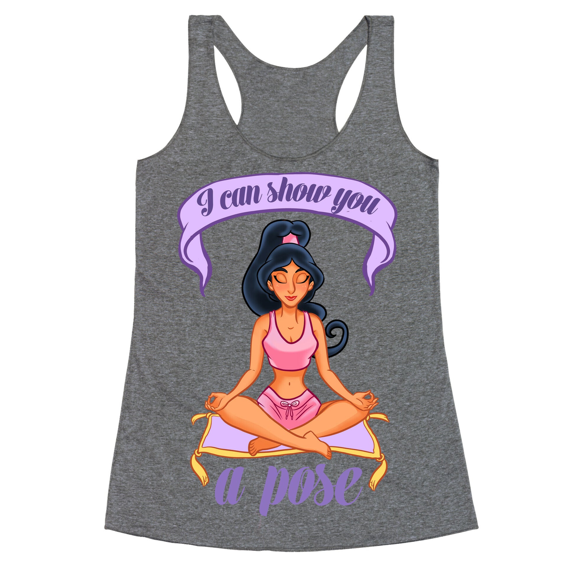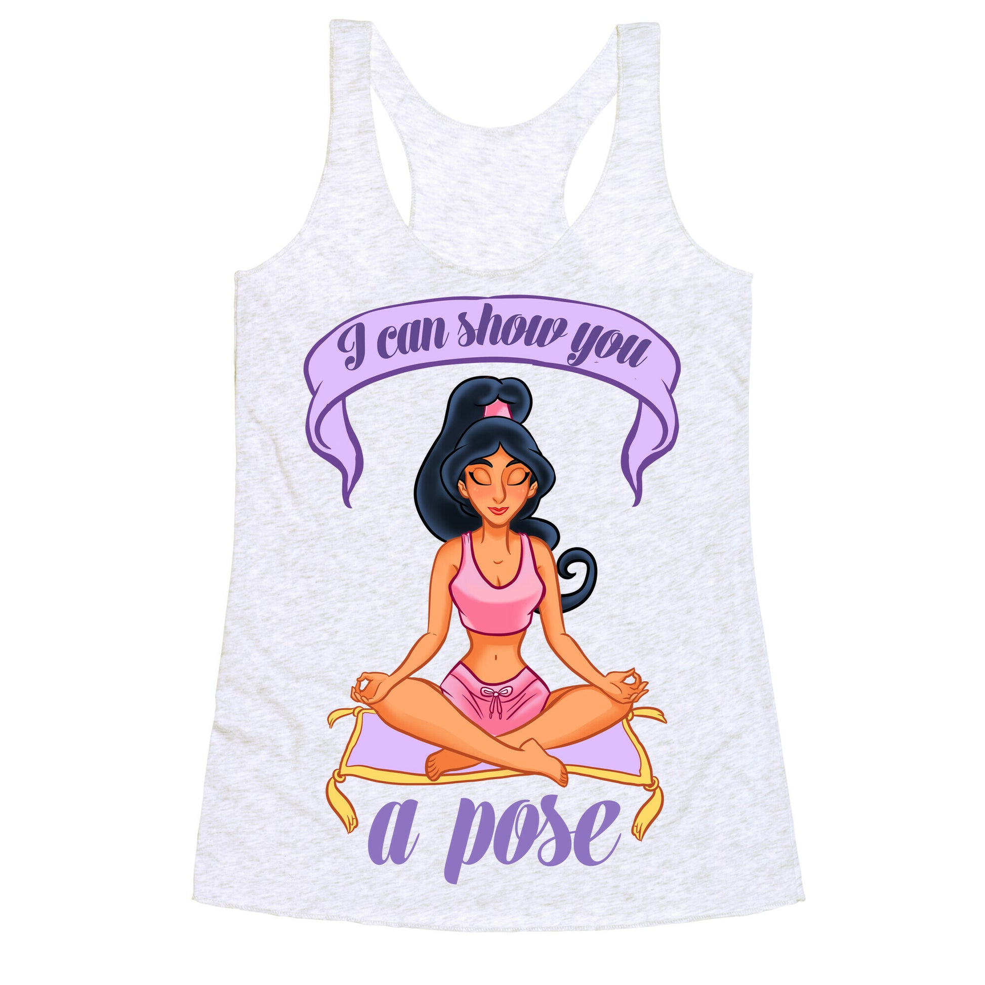 This princess is ready to soothe body and mind through the transformative power of yoga. With a magic carpet as her yoga mat, and a whole new world of meditation to practice, she can definitely show you a pose or two.Our super comfortable Women’s Raw Edge Racerback features a soft tri-blend, unhemmed fabric, with a fashionable bell-like shape for the bottom. Preshrunk for your convenience! Printed in the USA. Made with 50% Polyester 25% Ring Spun Cotton, and 25% Rayon.